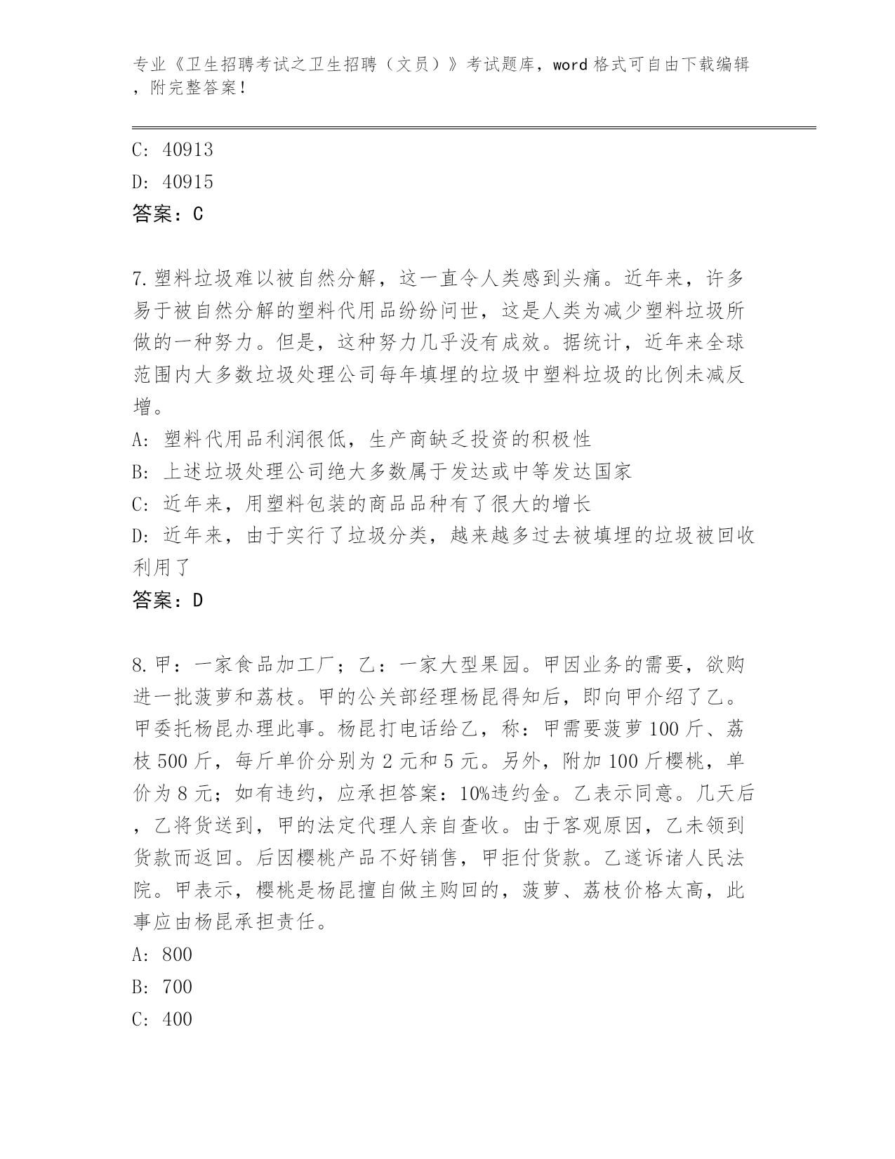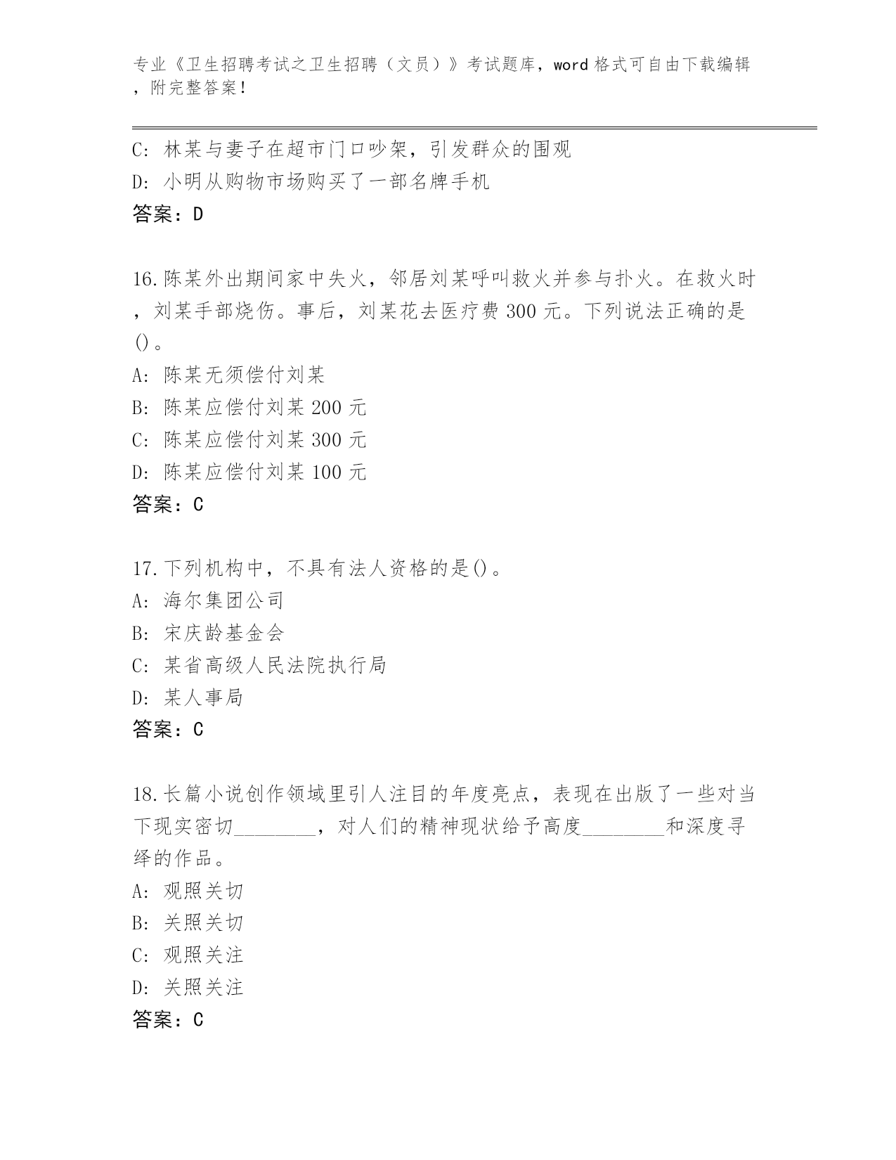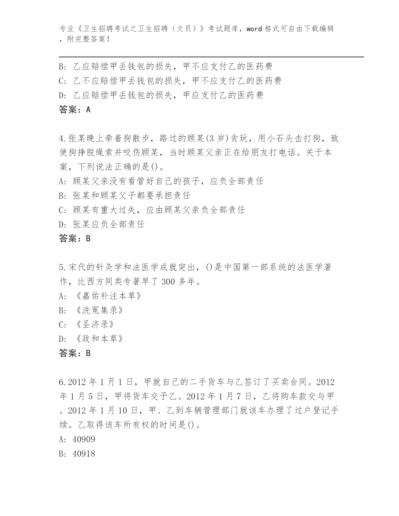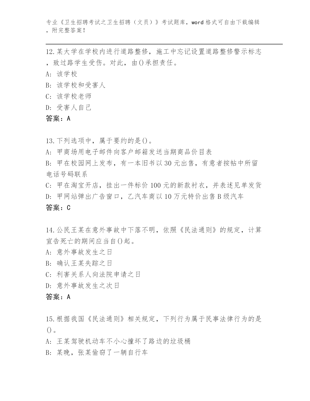 整理安徽省《卫生招聘考试之卫生招聘(文员)》考试通关秘籍题库及参考答案(最新)