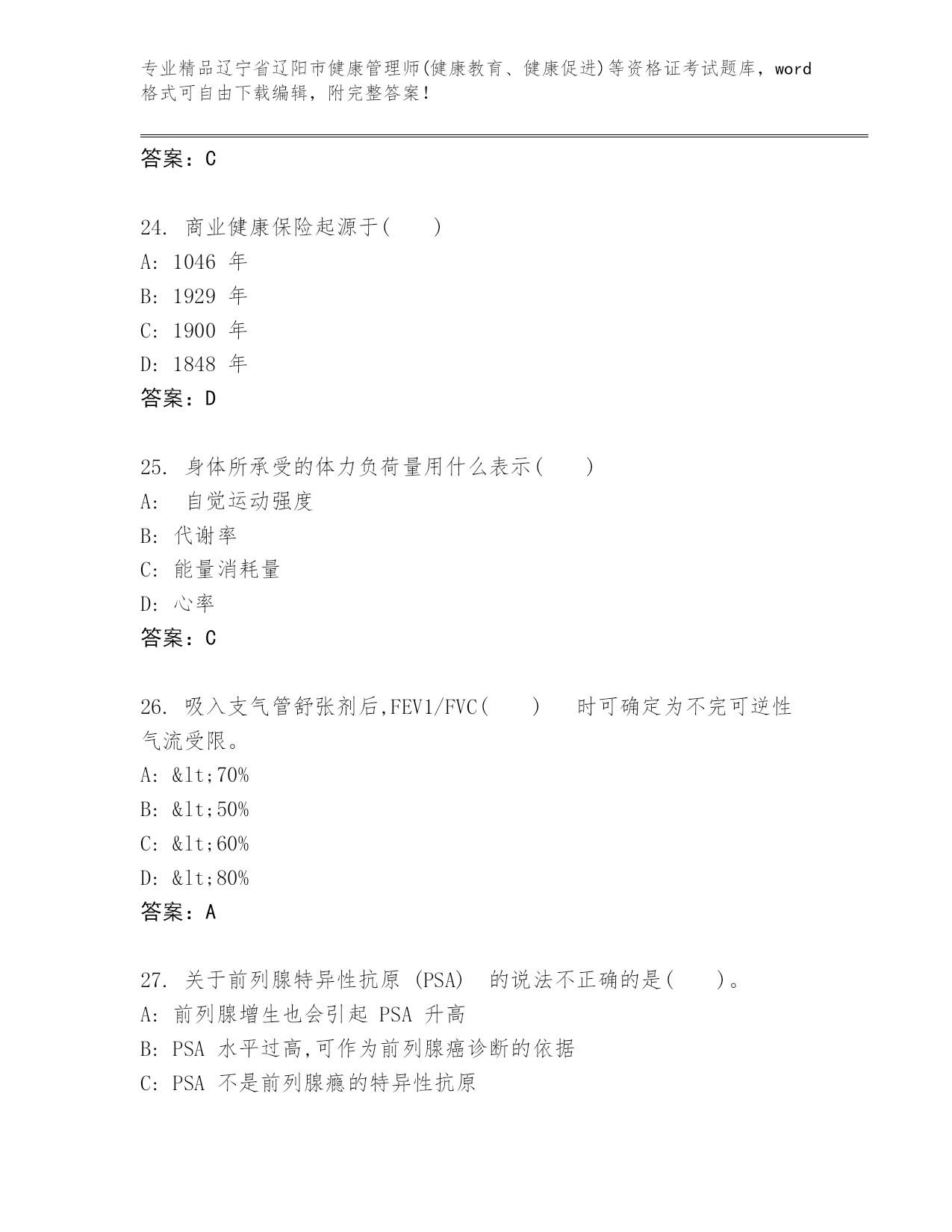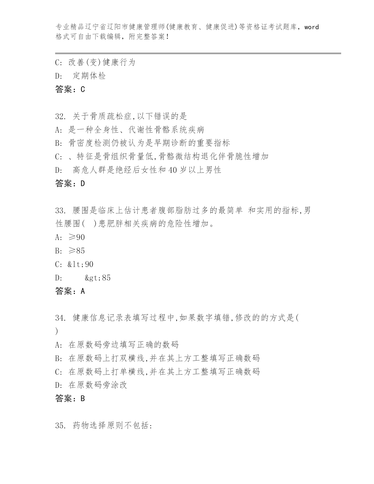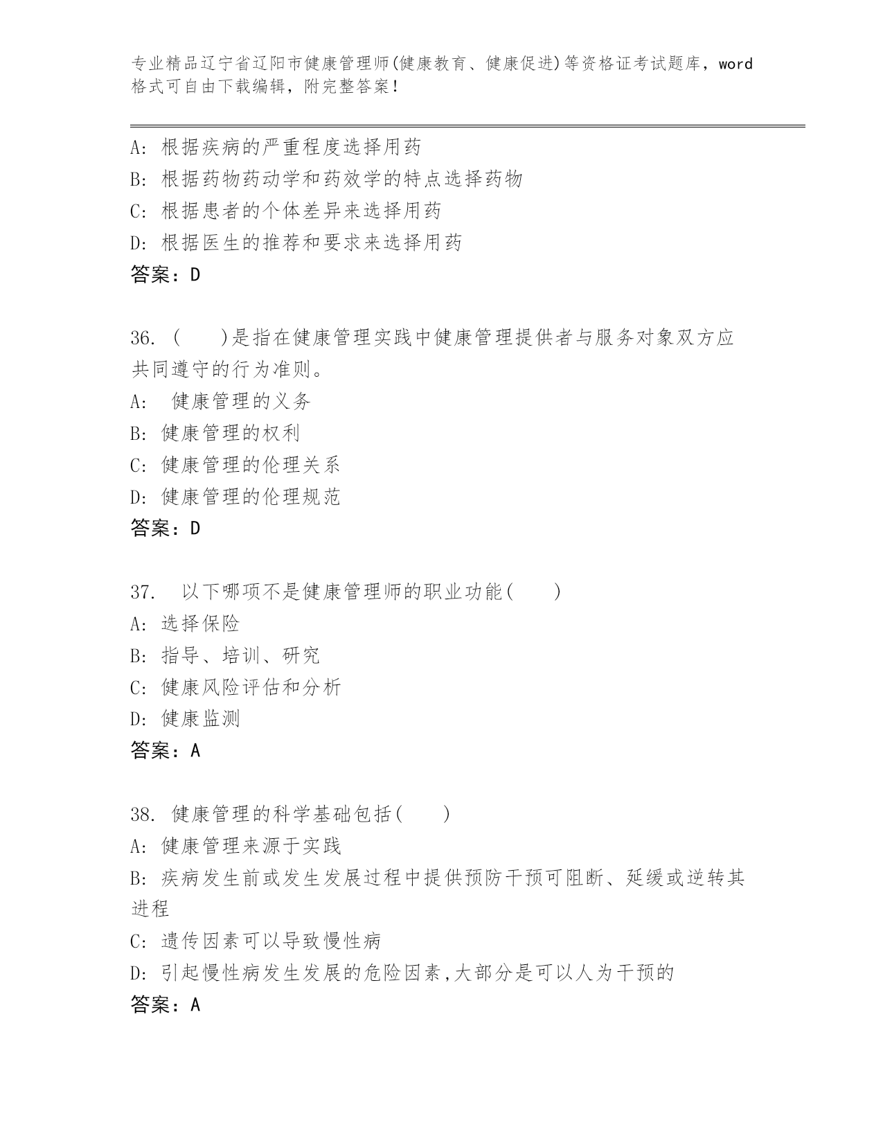 历年辽宁省辽阳市健康管理师(健康教育、健康促进)等资格证考试通用题库(典优).docx