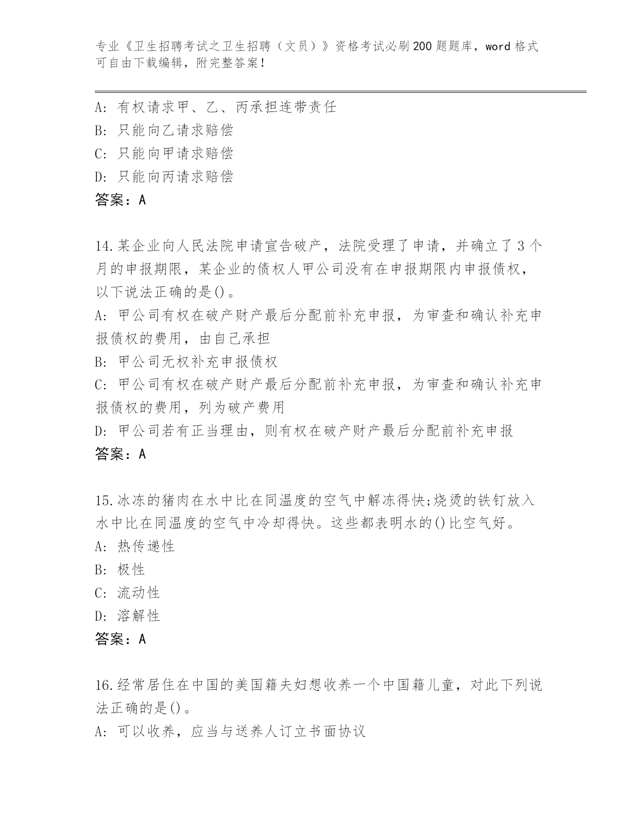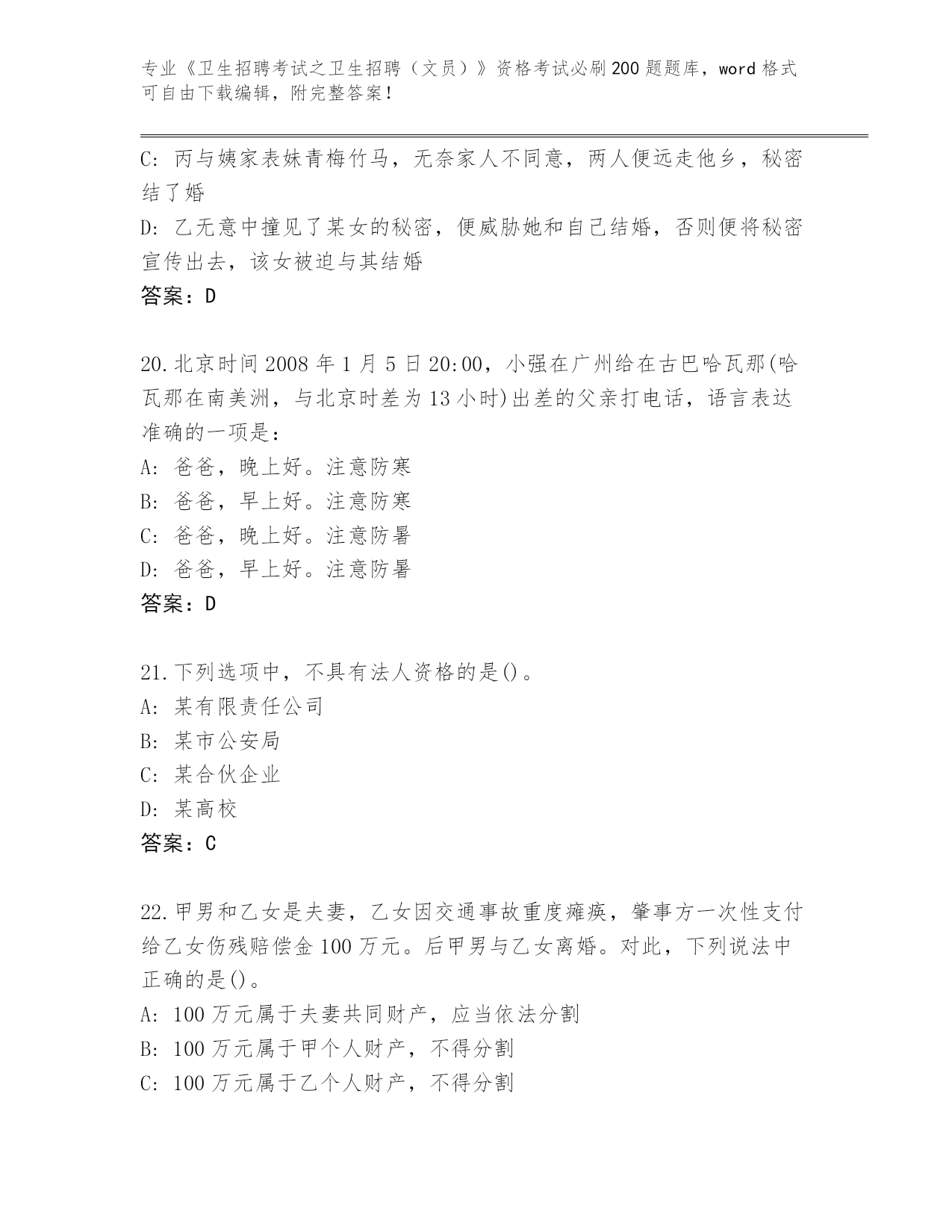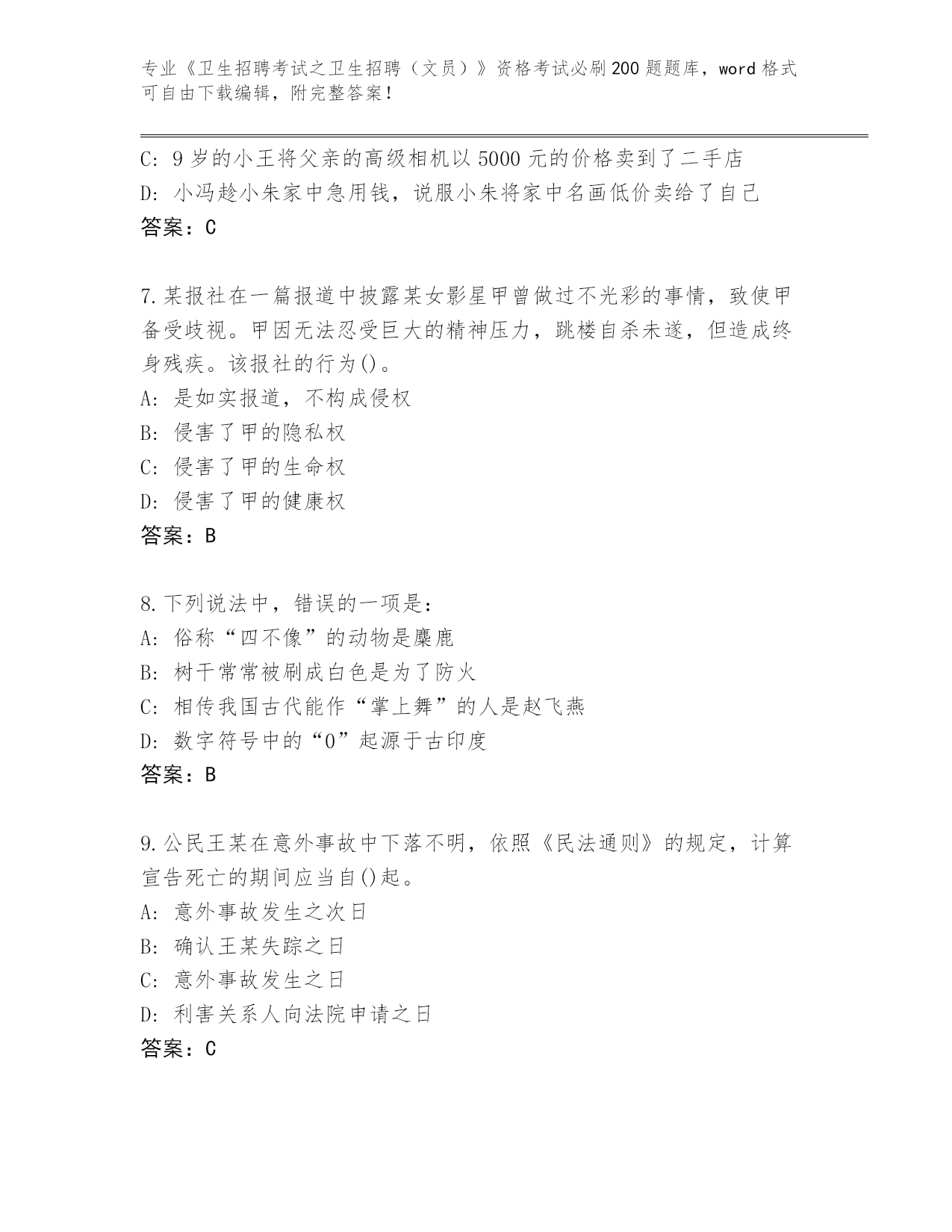 山东省《卫生招聘考试之卫生招聘(文员)》资格考试必刷200题真题【考点梳理】
