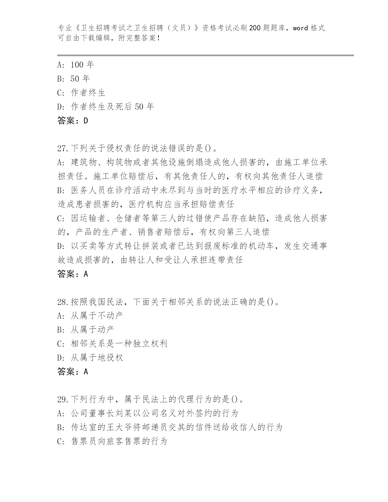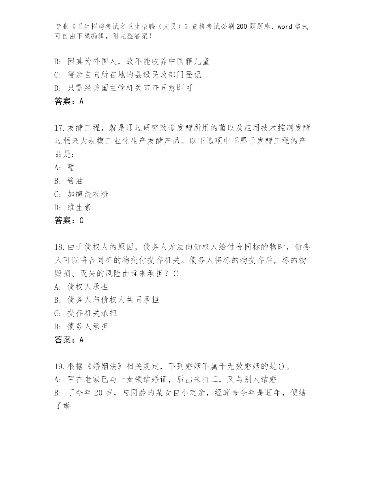江西省整理《卫生招聘考试之卫生招聘(文员)》资格考试必刷200题真题题库【培优】