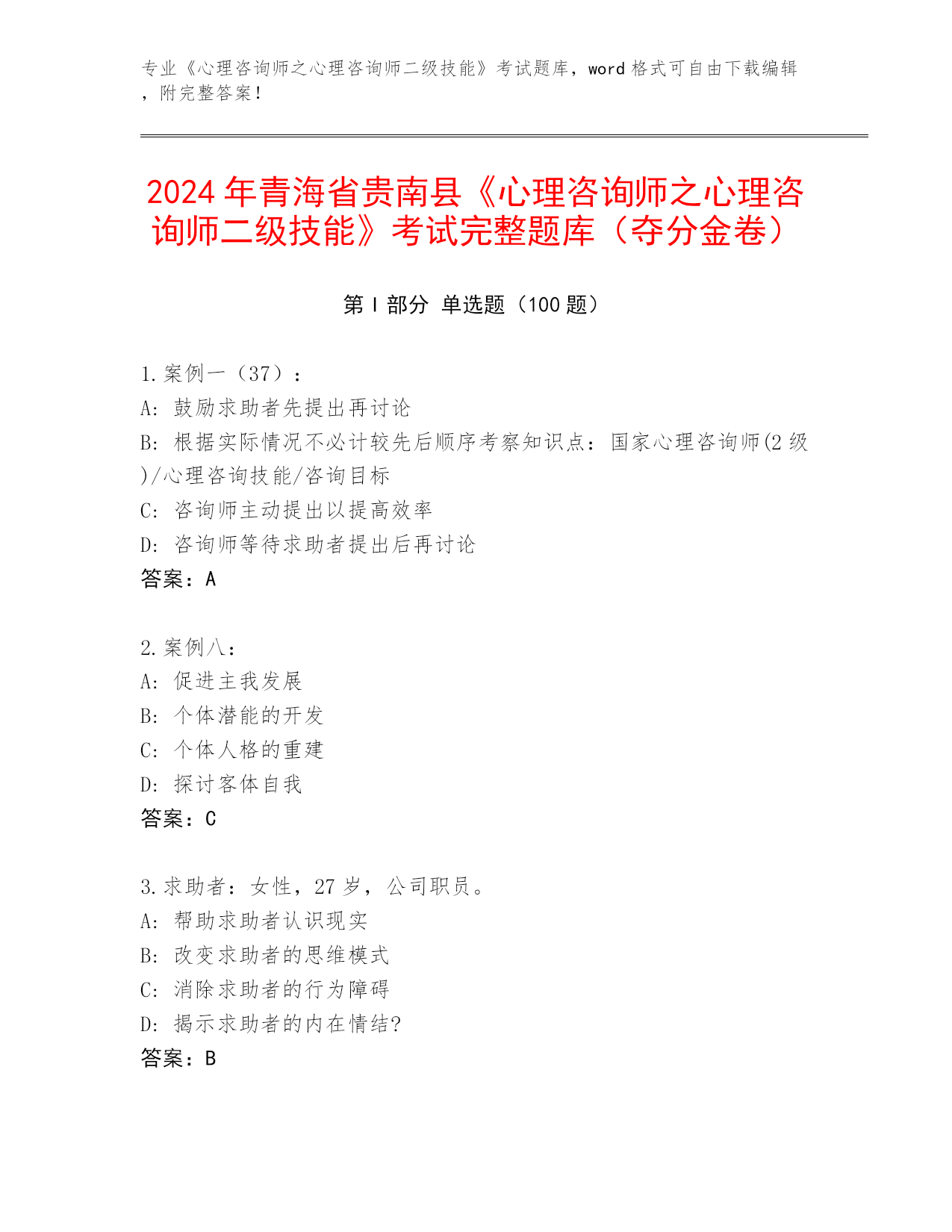 2024年青海省贵南县《心理咨询师之心理咨询师二级技能》考试完整题库(夺分金卷)
