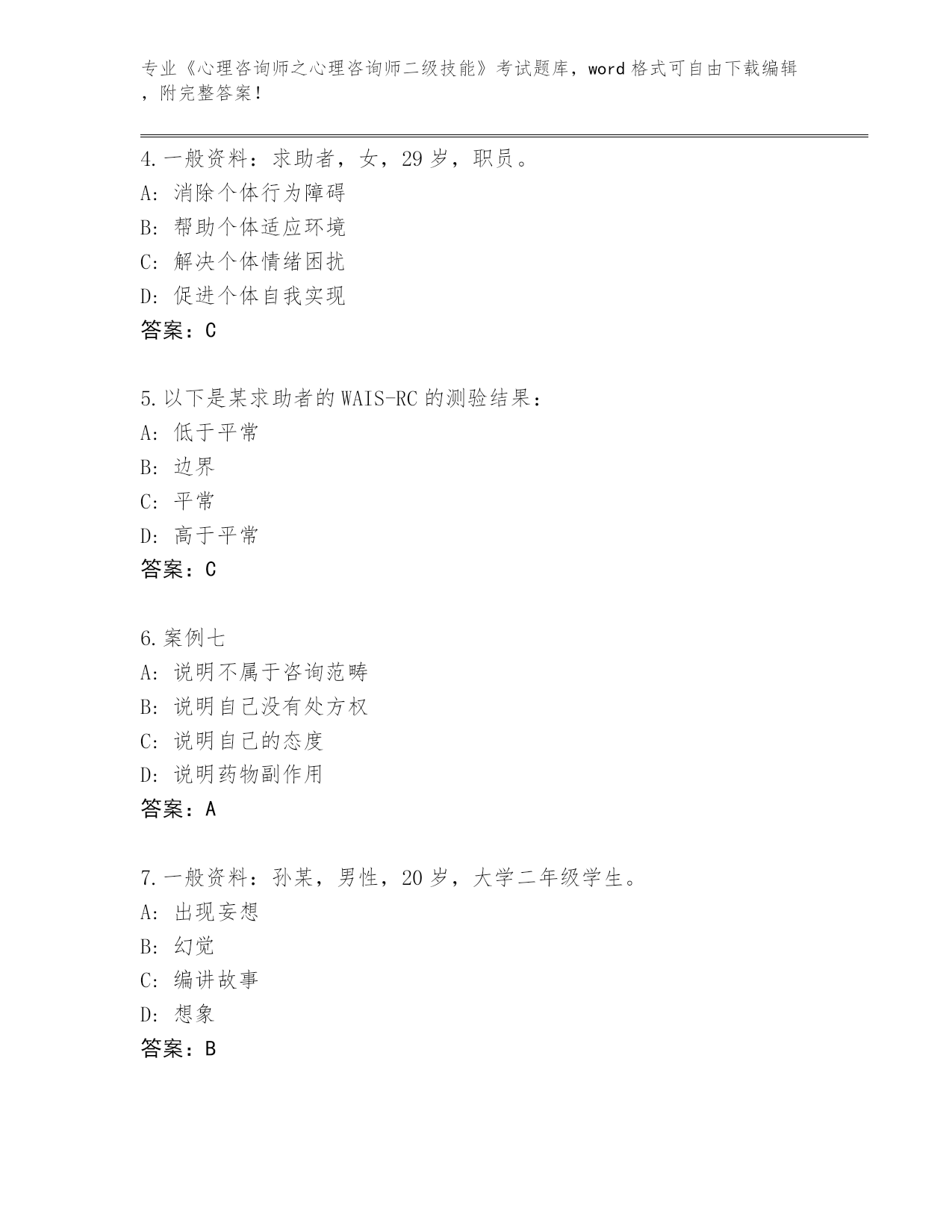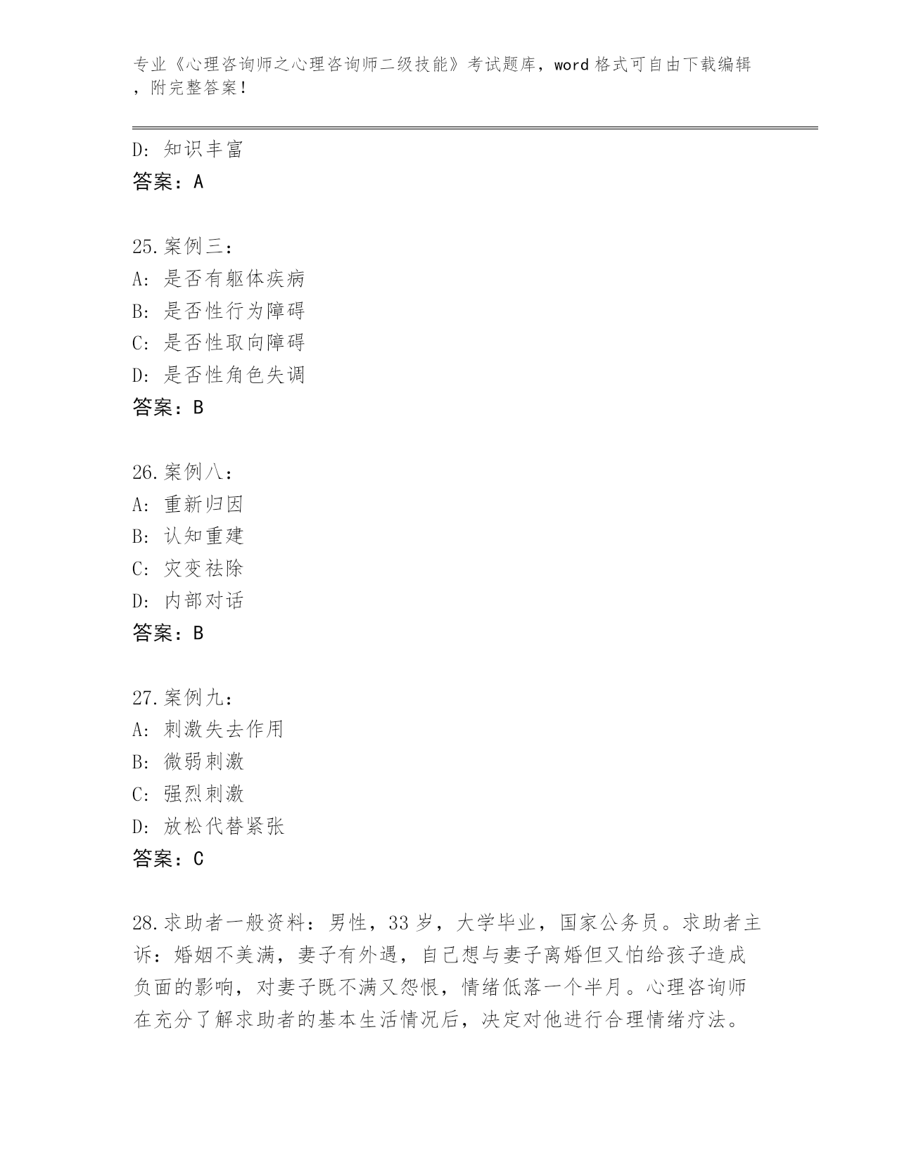 内部使用河北省《心理咨询师之心理咨询师二级技能》考试完整版(夺分金卷)
