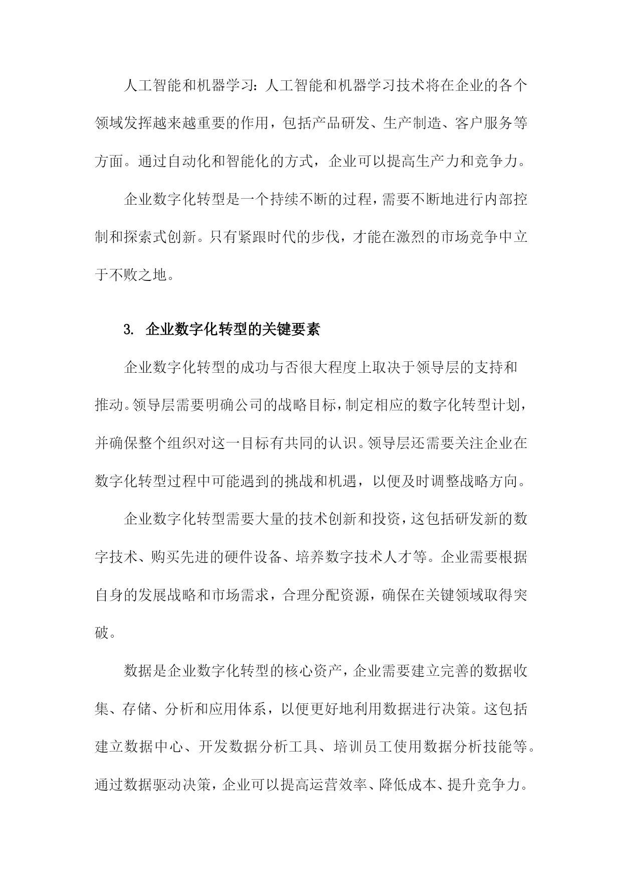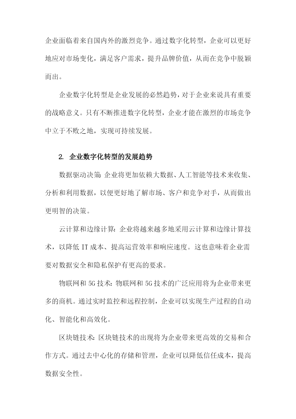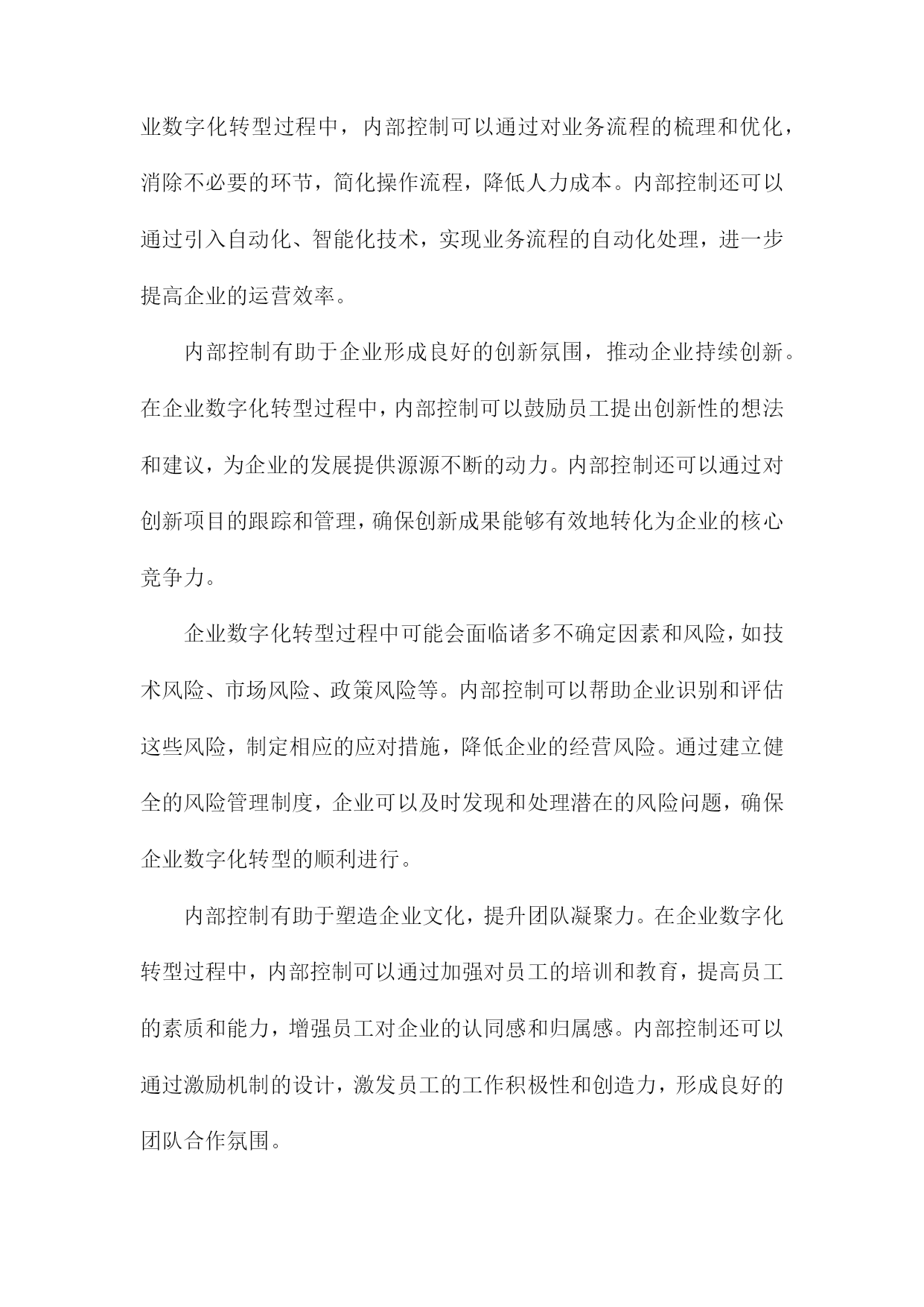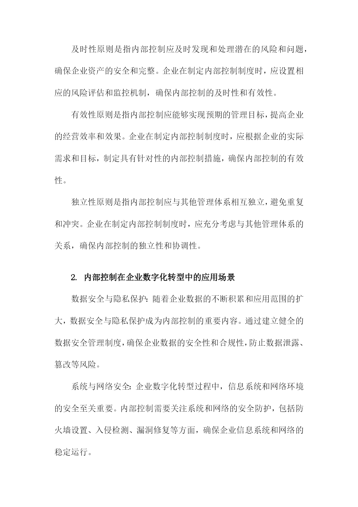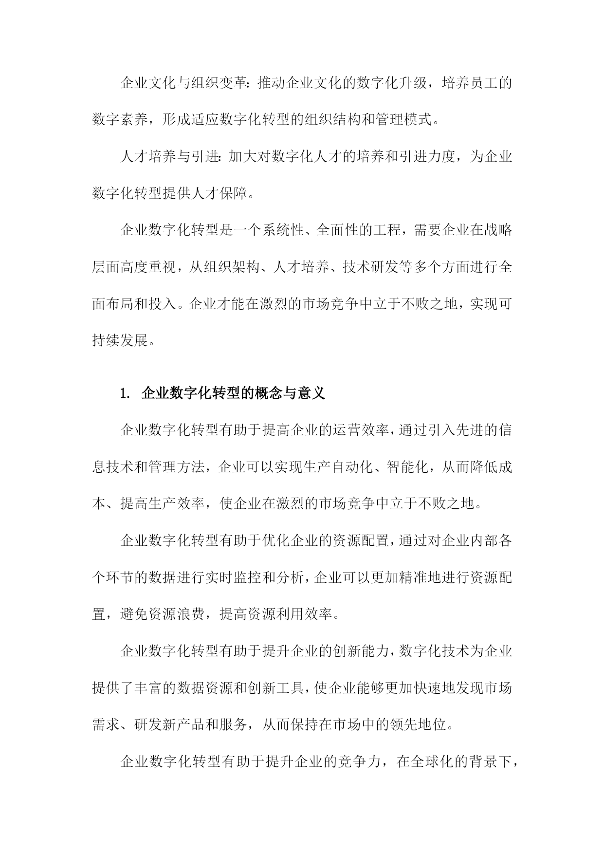 企业数字化转型、内部控制与探索式创新目录一、企业数字化转型概述.....................................21.企业数字化转型的概念与意义............................32.企业数字化转型的发展趋势..............................43.企业数字化转型的关键要素..............................54.企业数字化转型的成功案例分析..........................6二、内部控制在企业数字化转型中的作用.......................71.内部控制的基本概念与原则..............................92.内部控制在企业数字化转型中的应用场景.................103.内部控制在企业数字化转型中的挑战与对策...............124.内部控制在企业数字化转型中的实践案例分析.............12三、探索式创新在企业数字化转型中的价值....................141.探索式创新的概念与特点...............................152.探索式创新在企业数字化转型中的应用场景...............163.探索式创新在企业数字化转型中的挑战与对策.............174.探索式创新在企业数字化转型中的实践案例分析...........19四、企业数字化转型、内部控制与探索式创新的关系.............201.企业数字化转型对内部控制的影响.......................222.内部控制对探索式创新的支持作用.......................233.探索式创新对企业数字化转型的推动作用.................244.企业数字化转型、内部控制与探索式创新的协同发展策略....26五、结论与展望............................................271.企业数字化转型、内部控制与探索式创新的重要性总结......282.未来企业数字化转型、内部控制与探索式创新的发展趋势预测303.针对当前问题提出改进和完善的建议和措施...............31一、企业数字化转型概述随着科技的飞速发展和全球经济一体化的推进,企业面临着日益激烈的市场竞争。在这种背景下,企业数字化转型成为了许多企业提高竞争力、实现可持续发展的关键所在。企业数字化转型是指通过运用数字技术,对企业的生产、经营、管理等方面进行全面改革和创新,以提高企业的运营效率、降低成本、提升客户满意度和市场竞争力。业务流程再造:通过对企业现有业务流程进行梳理和优化,消除冗余环节,提高业务处理效率,实现业务流程的自动化和智能化。数据驱动决策:通过建立数据中心,实现对企业内外部数据的实时采集、整合和分析,为企业决策提供有力支持。产品与服务创新:运用数字技术,对产品和服务进行个性化、定制化改造,满足消费者多样化的需求。跨界融合与合作:借助互联网技术,实现企业与其他行业、领域的深度融合与合作,拓展新的业务领域和市场空间。企业文化与组织变革:推动企业文化的数字化升级,培养员工的数字素养,形成适应数字化转型的组织结构和管理模式。人才培养与引进:加大对数字化人才的培养和引进力度,为企业数字化转型提供人才保障。企业数字化转型是一个系统性、全面性的工程,需要企业在战略层面高度重视,从组织架构、人才培养、技术研发等多个方面进行全面布局和投入。企业才能在激烈的市场竞争中立于不败之地,实现可持续发展。1.企业数字化转型的概念与意义企业数字化转型有助于提高企业的运营效率,通过引入先进的信息技术和管理方法,企业可以实现生产自动化、智能化,从而降低成本、提高生产效率,使企业在激烈的市场竞争中立于不败之地。企业数字化转型有助于优化企业的资源配置,通过对企业内部各个环节的数据进行实时监控和分析,企业可以更加精准地进行资源配置,避免资源浪费,提高资源利用效率。企业数字化转型有助于提升企业的创新能力,数字化技术为企业提供了丰富的数据资源和创新工具,使企业能够更加快速地发现市场需求、研发新产品和服务,从而保持在市场中的领先地位。企业数字化转型有助于提升企业的竞争力,在全球化的背景下,企业面临着来自国内外的激烈竞争。通过数字化转型,企业可以更好地应对市场变化,满足客户需求,提升品牌价值,从而在竞争中脱颖而出。企业数字化转型是企业发展的必然趋势,对于企业来说具有重要的战略意义。只有不断推进数字化转型,企业才能在激烈的市场竞争中立于不败之