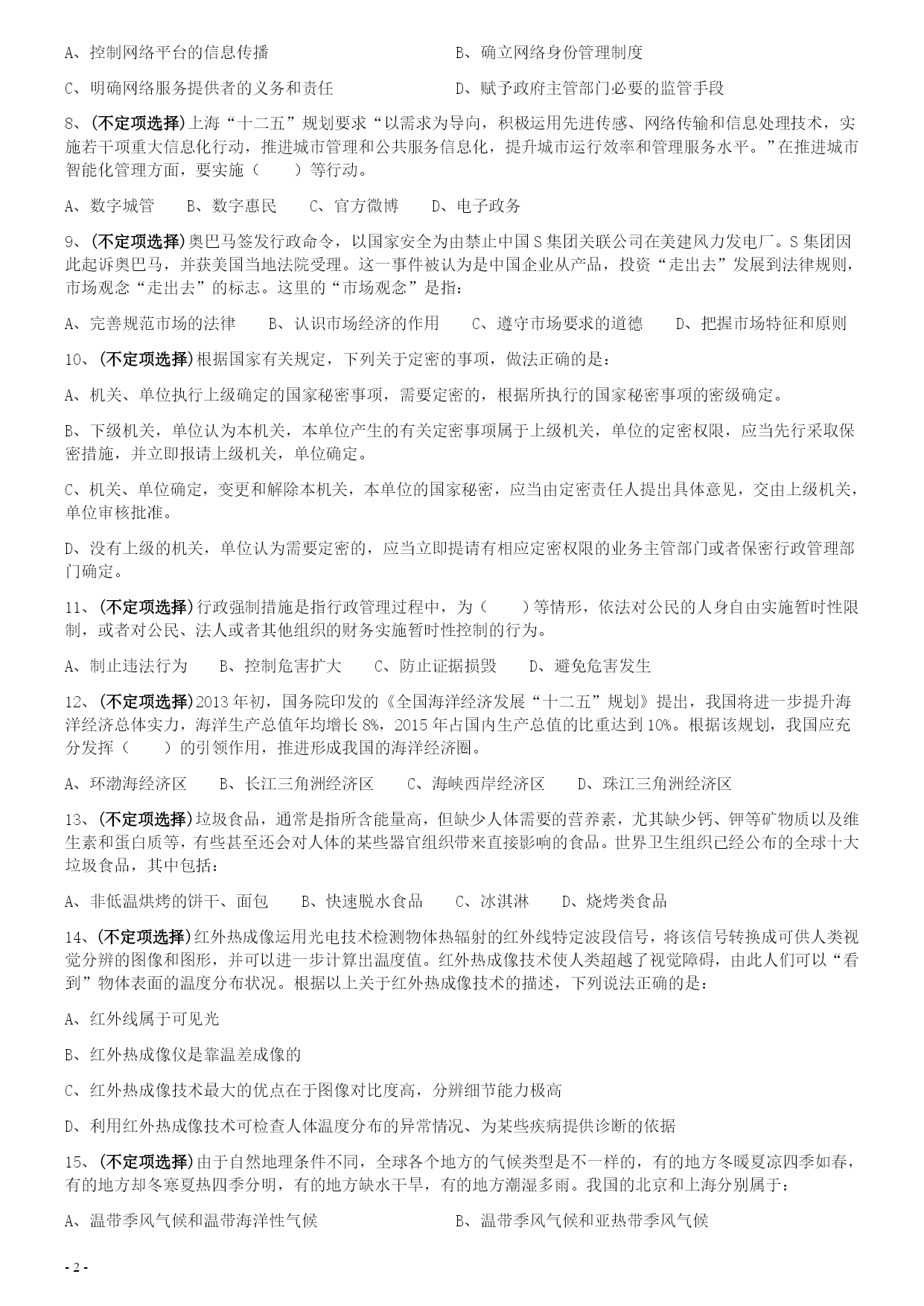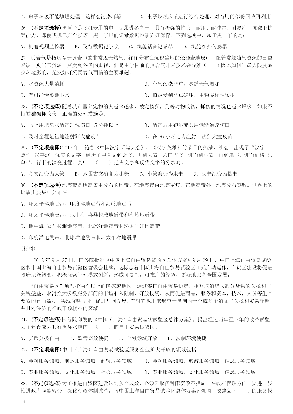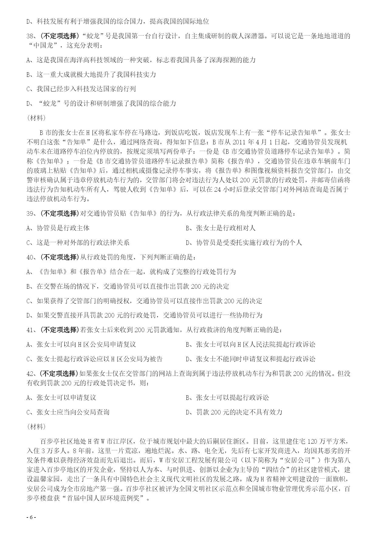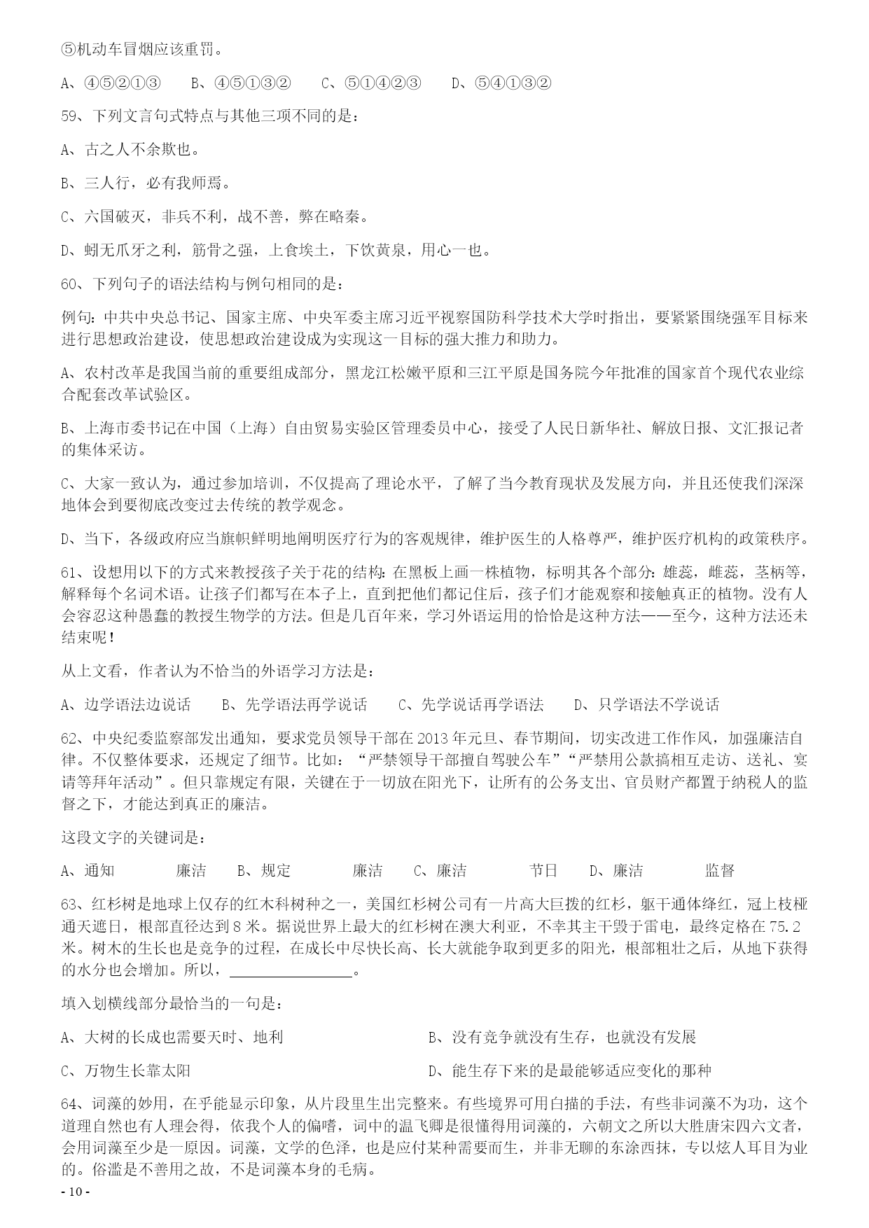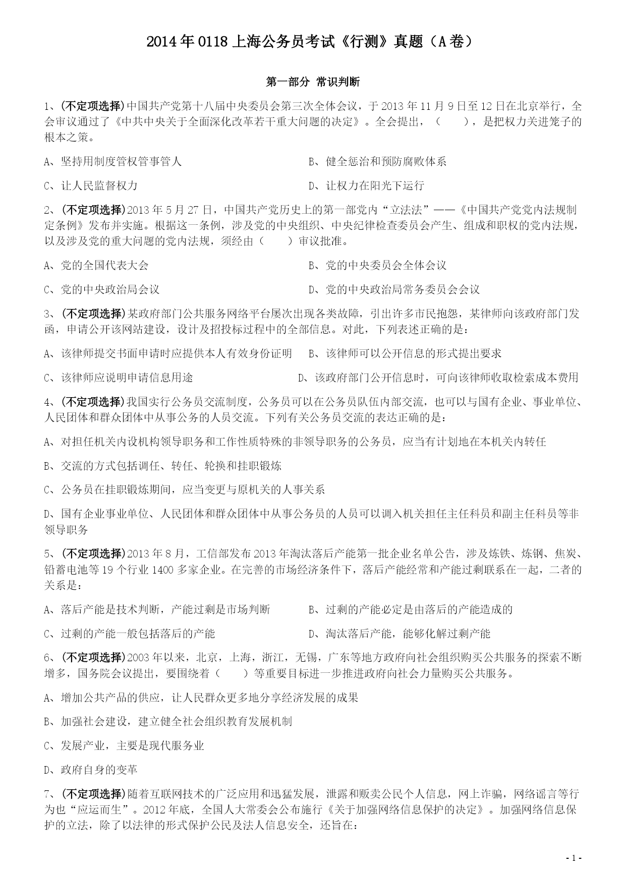 2014年0118上海公务员考试《行测》真题(A卷)