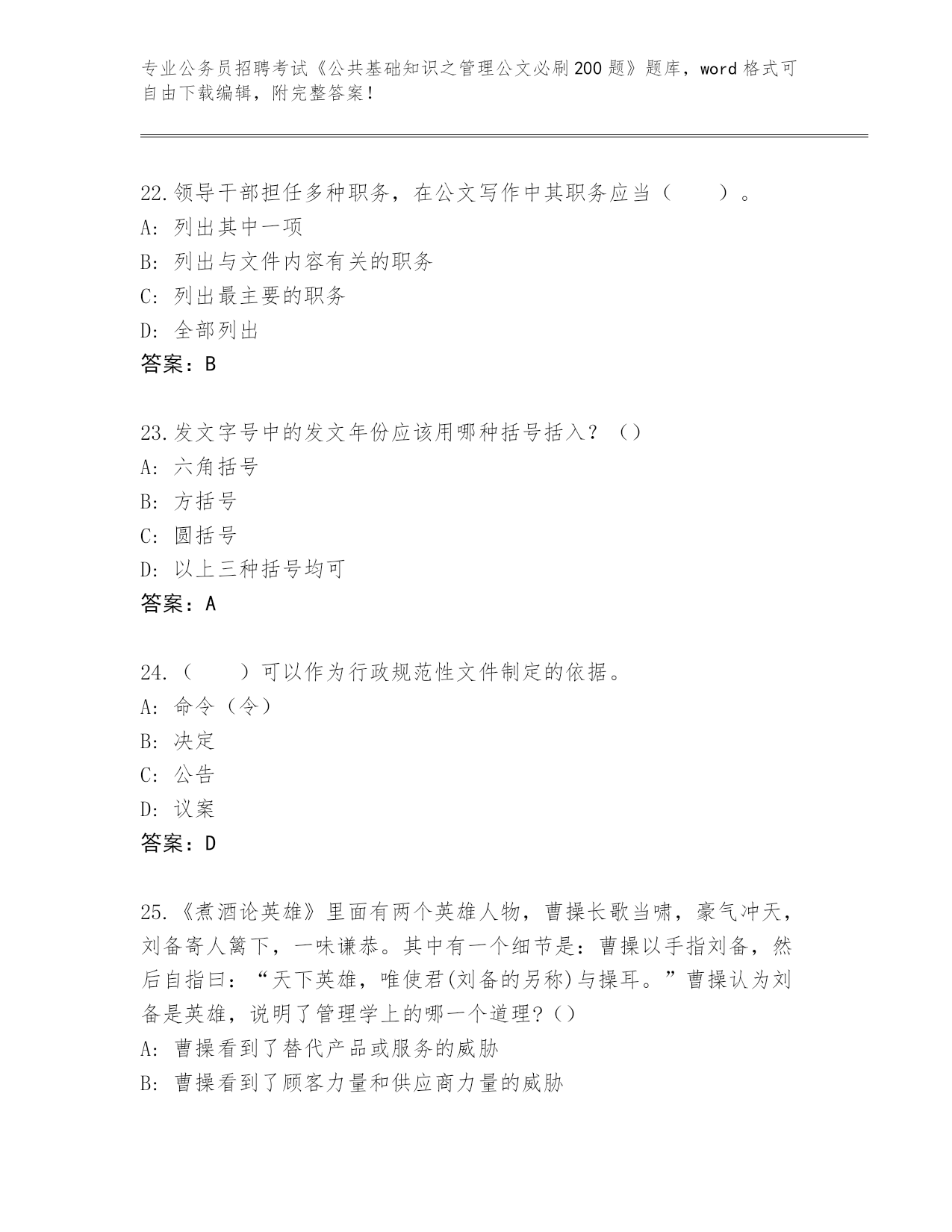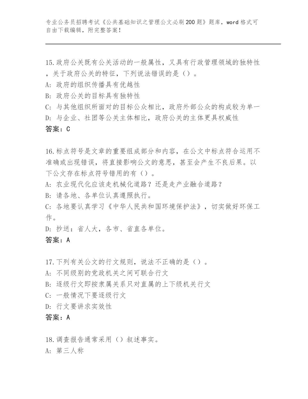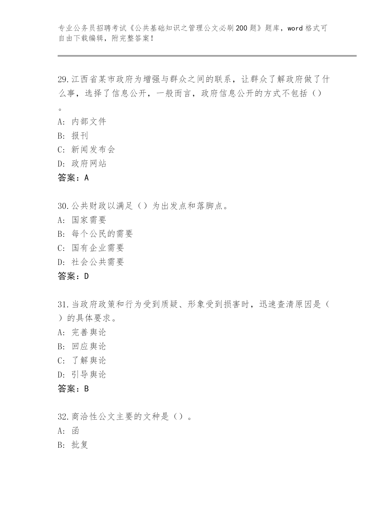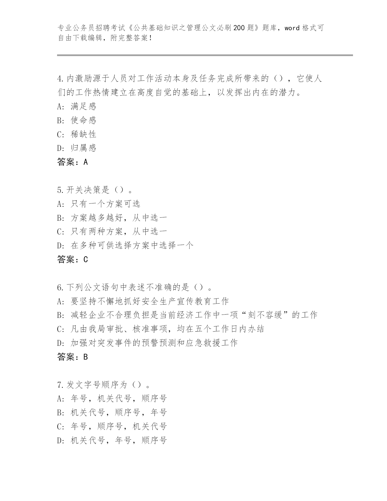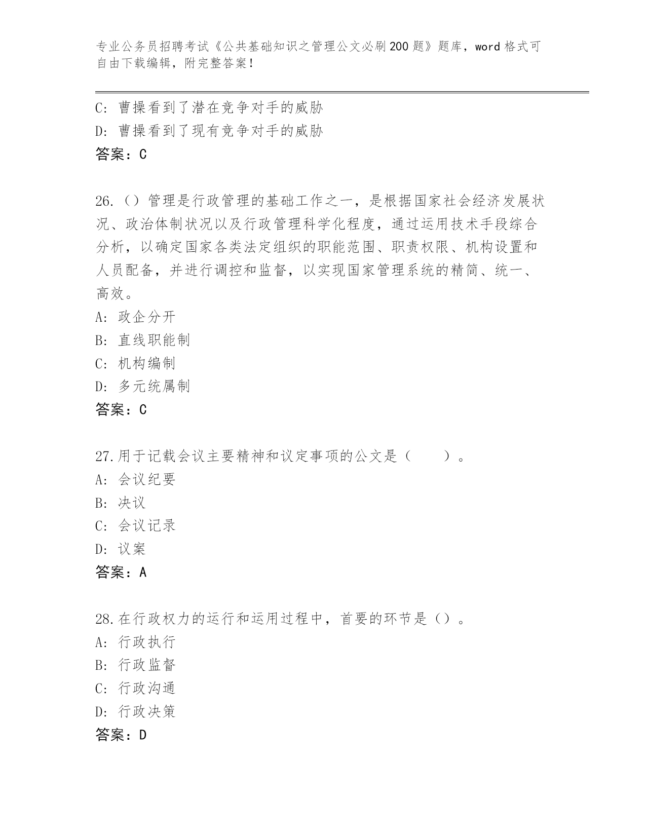 广东省遂溪县整理公务员招聘考试《公共基础知识之管理公文必刷200题》题库大全【含答案】.docx
