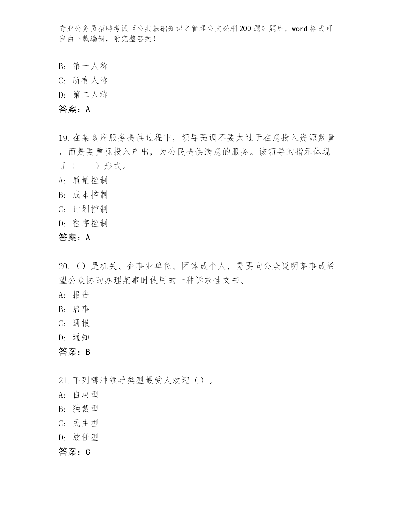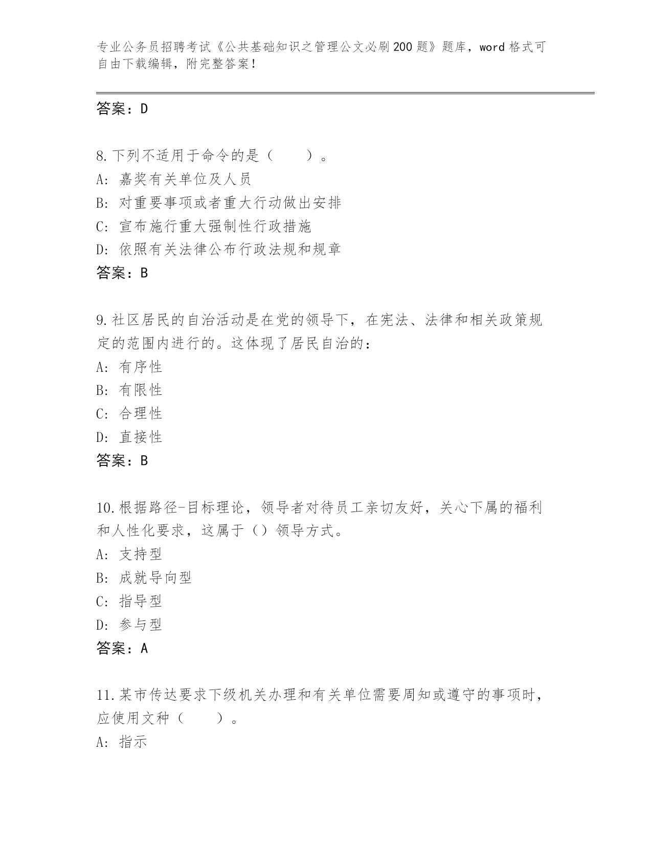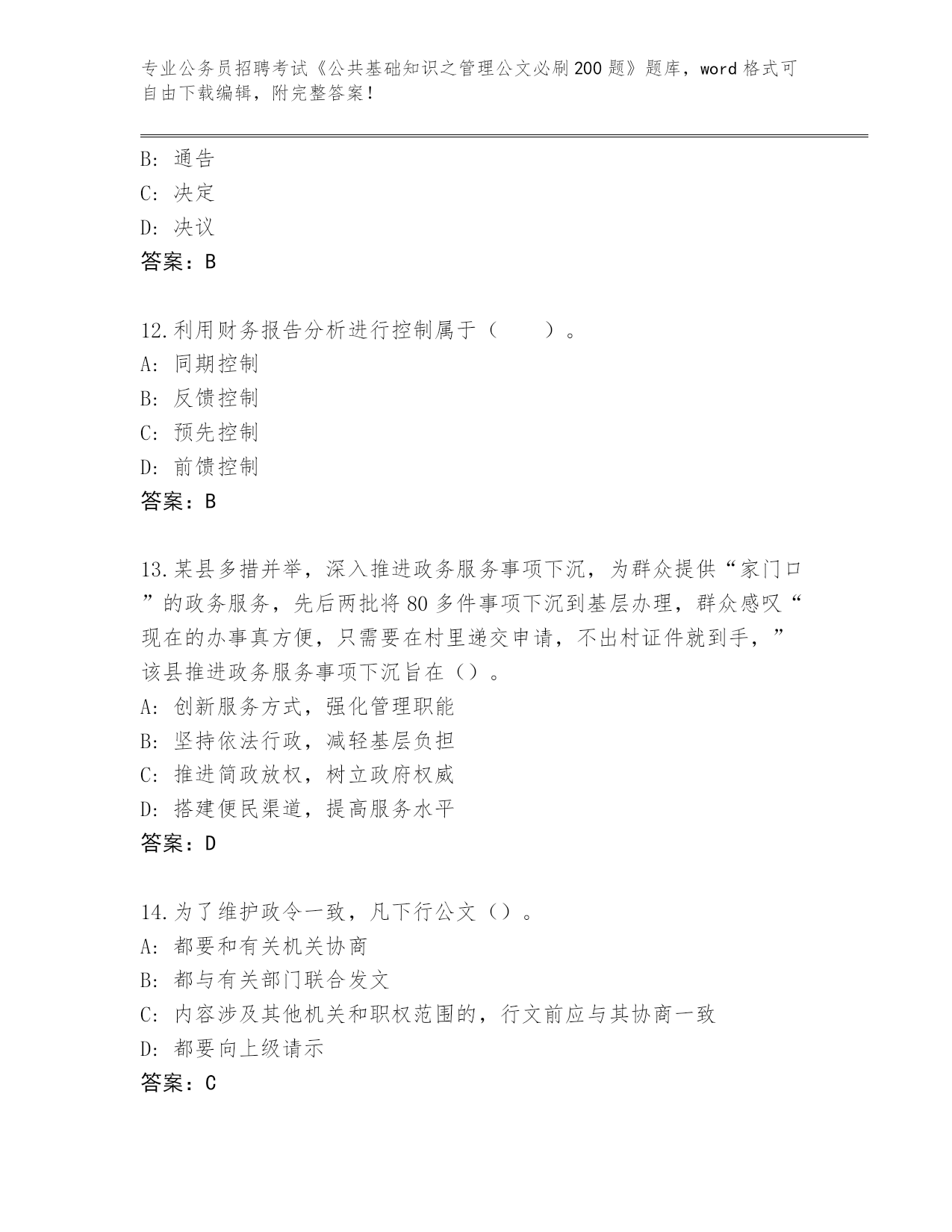 广东省遂溪县整理公务员招聘考试《公共基础知识之管理公文必刷200题》题库大全【含答案】