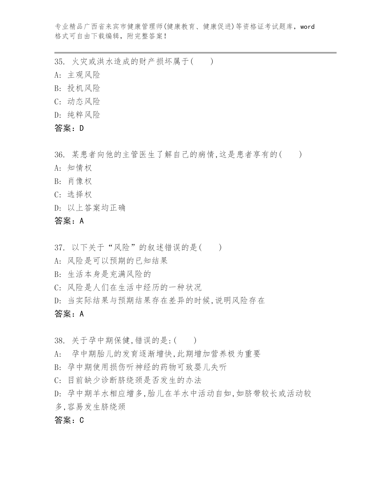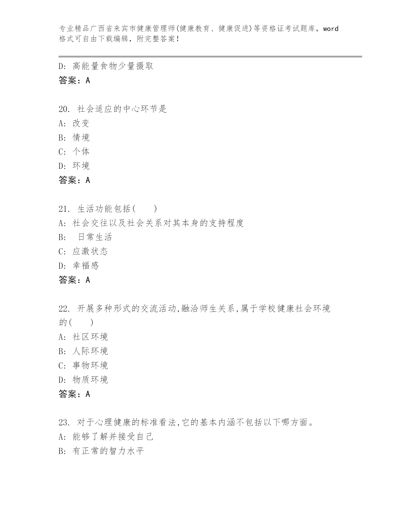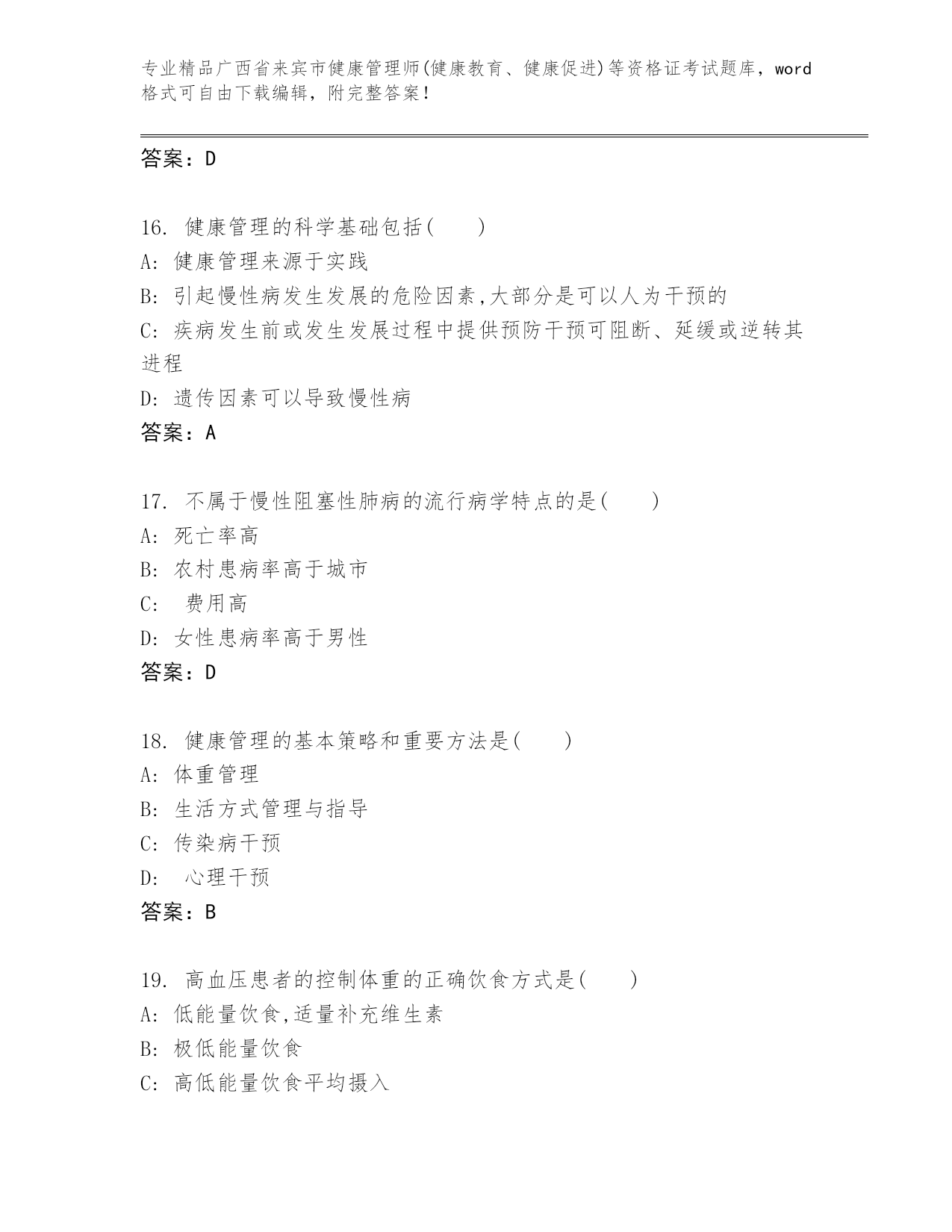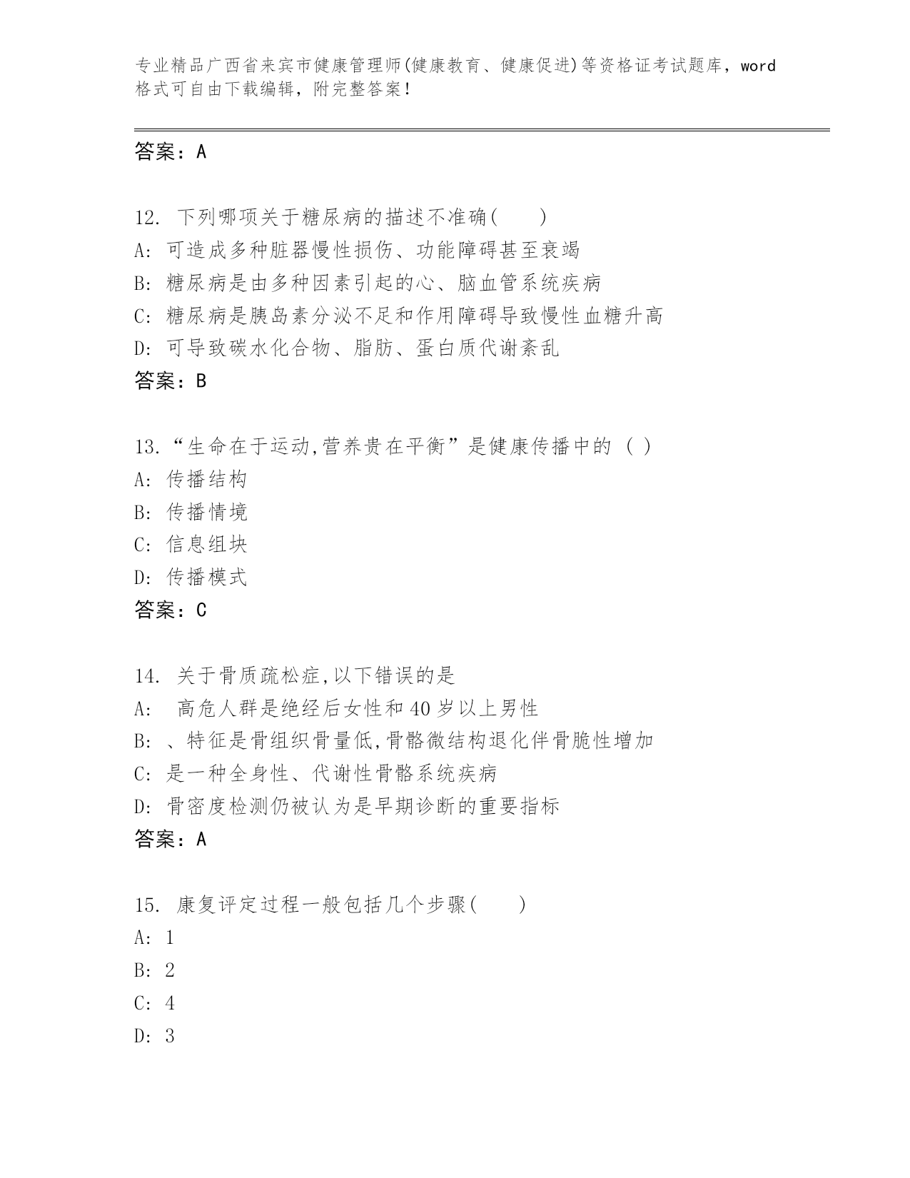 广西省来宾市健康管理师(健康教育、健康促进)等资格证考试通用题库加解析答案.docx