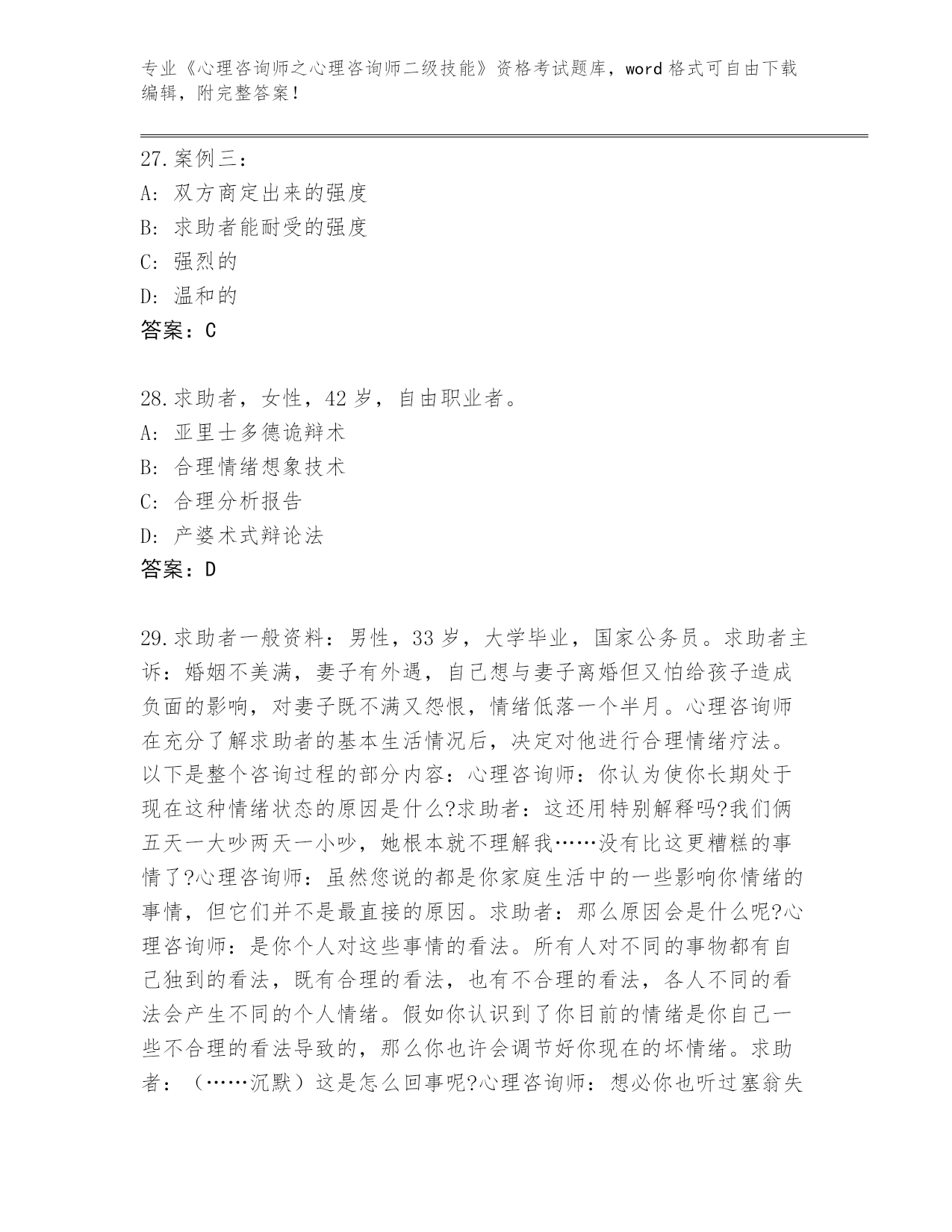 浙江省《心理咨询师之心理咨询师二级技能》资格考试大全含答案