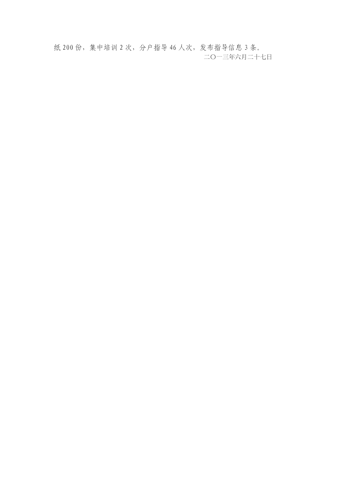 三夏技术指导工作总结利辛县农广校李明文章摘要:“三夏”工作,重点是做好夏收、夏种和夏季在田作物的田管工作,作为技术指导员,应按照示范县建设项目的要求制定可行的技术方案,开展技术指导和服务。主题词:三夏技术指导2013年5月21日利辛县农委为切实抓好示范县建设,在“三夏”工作即将打响之际,组织全县160名技术指导员,召开“三夏”技术指导工作会议,聘请专家传授夏种玉米、大豆的栽培技术,对“三夏”技术指导工作进行了部署,要求160名技术指导员,在“三夏”农忙的关键时期,一定要深入生产一线,迅速掀起“三夏”科技服务高潮,坚决大好“三夏”工作攻坚战,让我县的夏收、夏种、和夏管工作在技术服务上都有明显进步。培训结束后,我就制订了工作计划和技术指导方案,深入示范户的田间地头和家中开展技术指导。现将前一阶段“三夏”技术指导工作总结如下:制定工作计划1、抓好小麦的抢收工作。6月初是我县小麦收获的时节,但气象部门预报5月底、6月初我县有两次较强的降雨过程,严重影响小麦的灌浆和收获。因此,作为一名技术指导员,抓好午收小麦的抢收工作,是“三夏”工作开展的首要任务。因此,培训结束,我就做好宣传,指导示范户联系小麦收割机,帮助示范村制定了抢收小麦的计划,确保示范村的小麦在6月6日降雨前全部安全入仓。2、做好夏种技术指导。玉米、大豆是我县目前主要夏种作物,午收结束后,玉米、大豆已进入播种的关键时期,根据技术方案,分户进行夏种玉米和大豆技术指导,确保示范户夏种玉米、大豆在6月15日前适播期内播种结束,是“三夏”技术指导工作的又一重要任务。3、踏实完成夏管工作。夏种作物关键在管理,在夏种作物生长的每个技术环节都要做好技术指导工作,为避免技术指导发生不必要的偏差或失误,我要求自己要根据示范户各家的种植作物、品种、时间分类开展技术指导,踏实完成技术指导工作。二、分类制定技术方案根据示范户种植规模和种植水平,分户制定了玉米、大豆夏种和夏管技术方案,方案包括小麦秸秆还田技术,整地技术,配方施肥和科学追肥技术,选种和种子处理及科学播种技术,苗期田管和中期田管技术,夏季病虫草害的综合防治技术,农机农艺相结合技术等。取得的成效在夏收期间,我首先向示范户宣传了气象信息,帮助示范户和辐射户积极组织村民开展抢收工作,在示范户的宣传和带动下,我指导的王市和中王两个村于6月2日开始收割小麦,6月4日及收割完毕。6月6日小雨过后,两个村的示范户又按照技术要求开始播种玉米、大豆,到6月9日两个村的玉米、大豆已抢墒播种结束,6月9日夜间我县又普降小雨,保证播种出苗,达到了一播全苗效果,为培育壮苗打下了基础。目前,夏收和夏种工作已经结束,夏管工作已陆续开始,在“三夏”工作阶段,除指导了小麦抢收,还分户指导了整地施肥、科学选种播种及查苗补缺、地下害虫防治、间苗、除草和追肥工作,并发放技术明白纸200份,集中培训2次,分户指导46人次,发布指导信息3条。二〇一三年六月二十七日