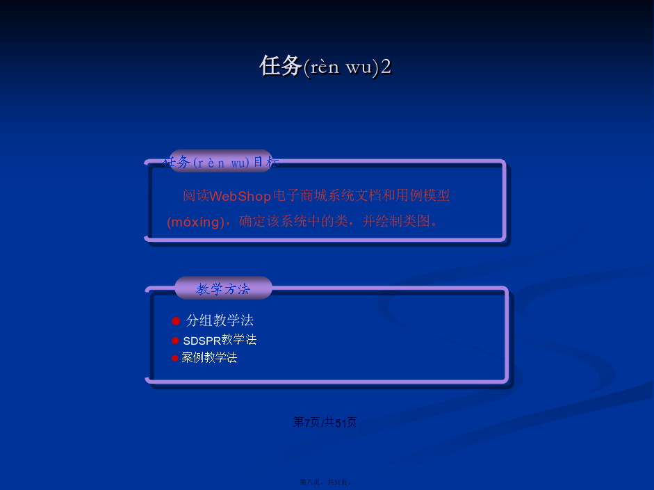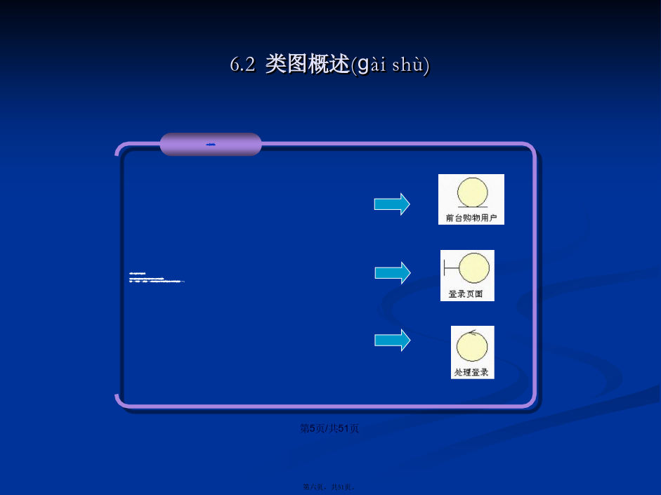 会计学本章(běnzhānɡ)学习要点任务(rènwu)16.1静态(jìngtài)建模概述6.2类图概述(ɡàishù)6.2类图概述(ɡàishù)6.2类图概述(ɡàishù)任务(rènwu)2类的概述(ɡàishù)类的概述(ɡàishù)类的概述(ɡàishù)类的概述(ɡàishù)绘制(huìzhì)带属性的实体类绘制(huìzhì)带属性的实体类【任务2-2】绘制(huìzhì)WebShop商品类图【任务(rènwu)2-2】绘制WebShop商品类图【任务(rènwu)2-2】绘制WebShop商品类图【任务2-2】绘制(huìzhì)WebShop商品类图【任务(rènwu)2-2】绘制WebShop商品类图绘制(huìzhì)带操作的实体类绘制(huìzhì)带操作的实体类绘制(huìzhì)带操作的实体类绘制(huìzhì)带操作的实体类课堂(kètáng)实践1绘制(huìzhì)边界类图绘制(huìzhì)边界类图绘制(huìzhì)控制类图绘制(huìzhì)控制类图中的类与语言(yǔyán)中的类课堂(kètáng)实践2任务(rènwu)3关联(guānlián)关系关联(guānlián)关系关联(guānlián)关系聚合(jùhé)关系聚合(jùhé)关系聚合(jùhé)关系组合(zǔhé)关系组合(zǔhé)关系泛化关系(guānxì)泛化关系(guānxì)实现(shíxiàn)关系依赖(yīlài)关系【任务(rènwu)3-3】【任务(rènwu)3-3】课堂(kètáng)实践3任务(rènwu)4对象(duìxiàng)图概述对象(duìxiàng)图组成对象(duìxiàng)图VS类图课外(kèwài)拓展