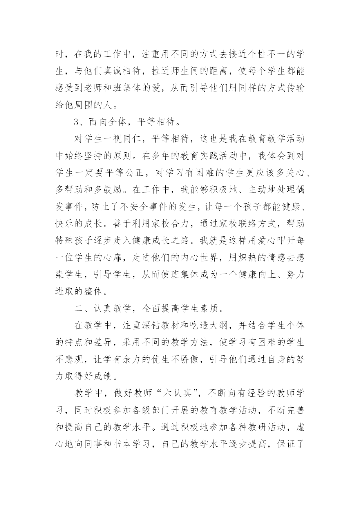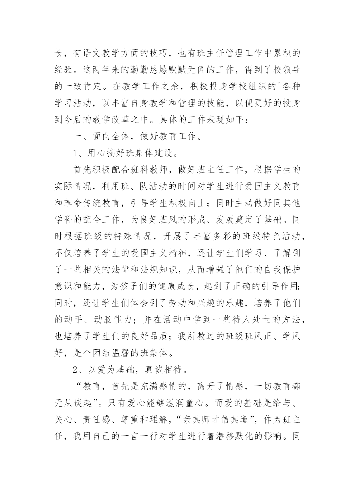 小学教师专业技术工作总结小学教师专业技术工作总结总结是指社会团体、企业单位和个人在自身的某一时期、某一项目或某些工作告一段落或者全部完成后进行回顾检查、分析评价,从而肯定成绩,得到经验,找出差距,得出教训和一些规律性认识的一种书面材料,它是增长才干的一种好办法,不如静下心来好好写写总结吧。那么你真的懂得怎么写总结吗?下面是小编为大家收集的小学教师专业技术工作总结,供大家参考借鉴,希望可以帮助到有需要的朋友。我是东胜区第三小学的一名普通教师,热爱教育事业,工作中,做到了勤勤恳恳,无私奉献,遵纪守法,具有良好的师德,同时,关爱学生,为人师表,教书育人,使学生在德、智、体、美、劳等各方面得到全面发展,赢得了学生的热爱、家长的信任。同时,能按照教师职业道德规范要求自己,努力做好本职工作,并结合现代教育教学的需要,加强业务学习和文化素质的提高,与同事们团结协作,相互学习,取长补短,不断完善和优化课堂教学,取得了优异的成绩,并得到了同事、家长们的好评。两年来本人一直从事小学教学工作,并任班主任工作。虽然在教学工作中,由于经验不足,也曾出现过一些问题,但总的来说,正是在克服这些问题的过程中使自己得到了成长,有语文教学方面的技巧,也有班主任管理工作中累积的经验。这两年来的勤勤恳恳默默无闻的工作,得到了校领导的一致肯定。在教学工作之余,积极投身学校组织的'各种学习活动,以丰富自身教学和管理的技能,以便更好的投身到今后的教学改革之中。具体的工作表现如下:一、面向全体,做好教育工作。1、用心搞好班集体建设。首先积极配合班科教师,做好班主任工作,根据学生的实际情况,利用班、队活动的时间对学生进行爱国主义教育和革命传统教育,引导学生积极向上;同时主动做好同其他学科的配合工作,为良好班风的形成、发展奠定了基础。同时根据班级的特殊情况,开展了丰富多彩的班级特色活动,不仅培养了学生的爱国主义精神,还让学生们学习、了解到了一些相关的法律和法规知识,从而增强了他们的自我保护意识和能力,为孩子们的健康成长,起到了正确的引导作用;同时,还让学生们体会到了劳动和兴趣的乐趣,培养了他们的动手、动脑能力;并在活动中学到一些待人处世的方法,也培养了学生们的良好品质;我所教过的班级班风正、学风好,是个团结温馨的班集体。2、以爱为基础,真诚相待。“教育,首先是充满感情的,离开了情感,一切教育都无从谈起”。只有爱心能够滋润童心。而爱的基础是给与、关心、责任感、尊重和理解,“亲其师才信其道”,作为班主任,我用自己的一言一行对学生进行着潜移默化的影响。同时,在我的工作中,注重用不同的方式去接近个性不一的学生,与他们真诚相待,拉近师生间的距离,使每个学生都能感受到老师和班集体的爱,从而引导他们用同样的方式传输给他周围的人。3、面向全体,平等相待。对学生一视同仁,平等相待,这也是我在教育教学活动中始终坚持的原则。在多年的教育实践活动中,我体会到对学生一定要平等公正,对学习有困难的学生更应该多关心、多帮助和多鼓励。在工作中,我能够积极地、主动地处理偶发事件,防止了不安全事件的发生,让每一个孩子都能健康、快乐的成长。善于利用家校合力,通过家校联络方式,帮助特殊孩子逐步走入健康成长之路。我就是这样用爱心叩开每一位学生的心扉,走进他们的内心世界,用炽热的情感去感染学生,引导学生,从而使班集体成为一个健康向上、努力进取的整体。二、认真教学,全面提高学生素质。在教学中,注重深钻教材和吃透大纲,并结合学生个体的特点和差异,采用不同的教学方法,使学习有困难的学生不悲观,让学有余力的优生不骄傲,引导他们通过自身的努力取得好成绩。教学中,做好教师“六认真”,不断向有经验的教师学习,同时积极参加各级部门开展的教育教学活动,不断完善和提高自己的教学水平。通过积极地参加各种教研活动,虚心地向同事和书本学习,自己的教学水平逐步提高,保证了每堂课40分钟的质量,从而达到了培养、提高学生综合素质的目标。三、提高业务素质,适应现代教学需要。为了更好的搞好教育教学工作,我利用休息时间,阅读了大量的教育教学杂志,并写了多篇论文。还利用各种机会参加各类培训,并多次在校内做工作经验交流,得到了同事们的认同。四、对待上级指定的任务,积极完成,速度快,质量好,不讲条件,不提要求。任劳任怨,体现了一个人民教师良好的工作作风和道德风范。每当接到领导下达的任务,我总是不折不扣地完成,并能虚心听取他人的批评意见,对自己的不足加以改进。路漫漫其修远兮,吾将上下而求索。以上各项工作取得的一定成绩已是过去的昨天,新的起点已经开始。我将在今后的教学工作和其他工作中做出新的努力和贡献。