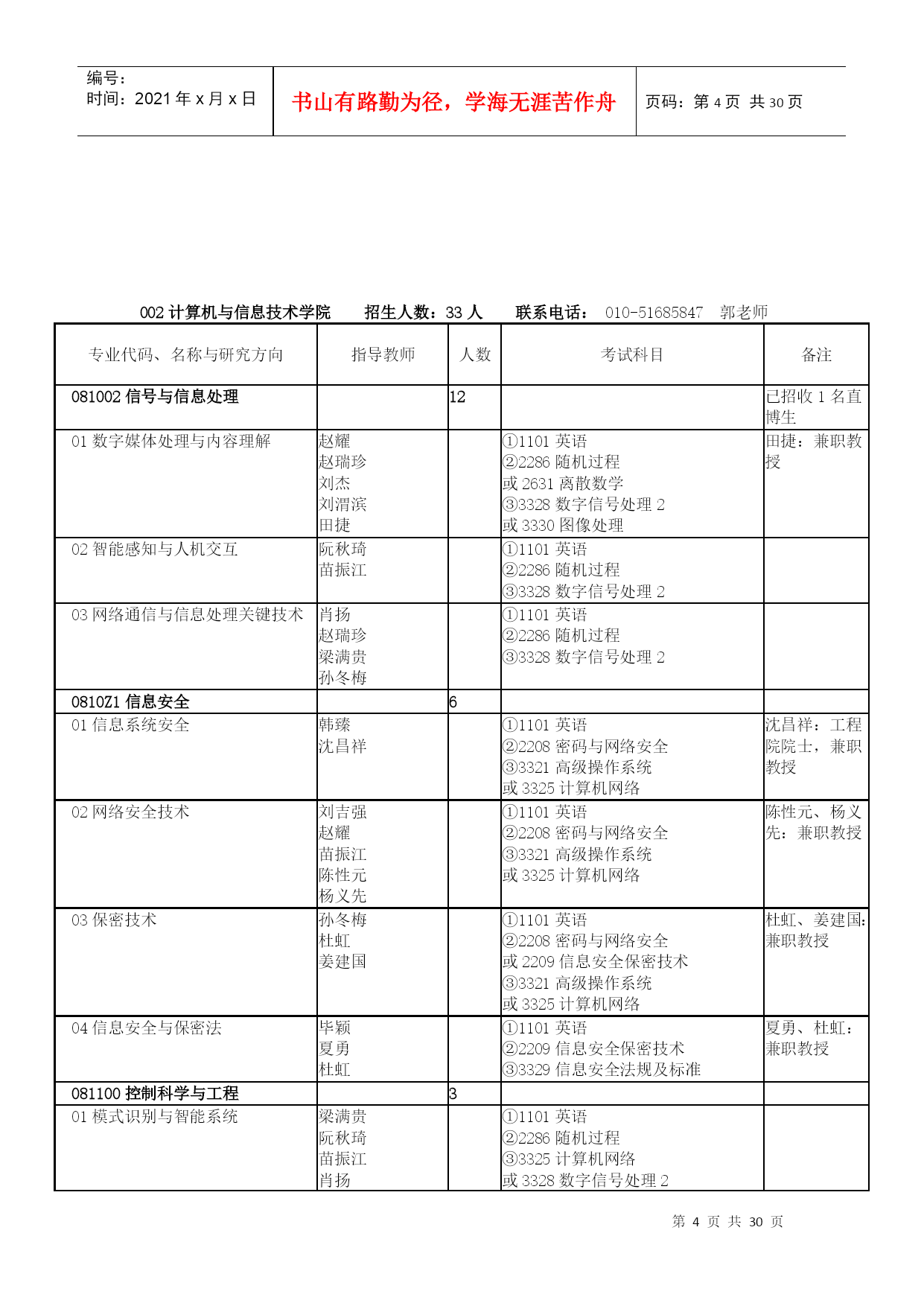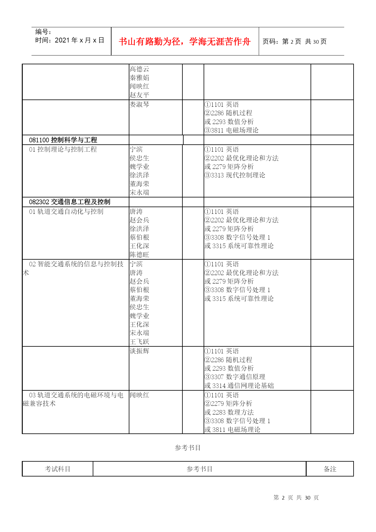 北京交通大学XXXX年博士研究生招生专业目录.docx