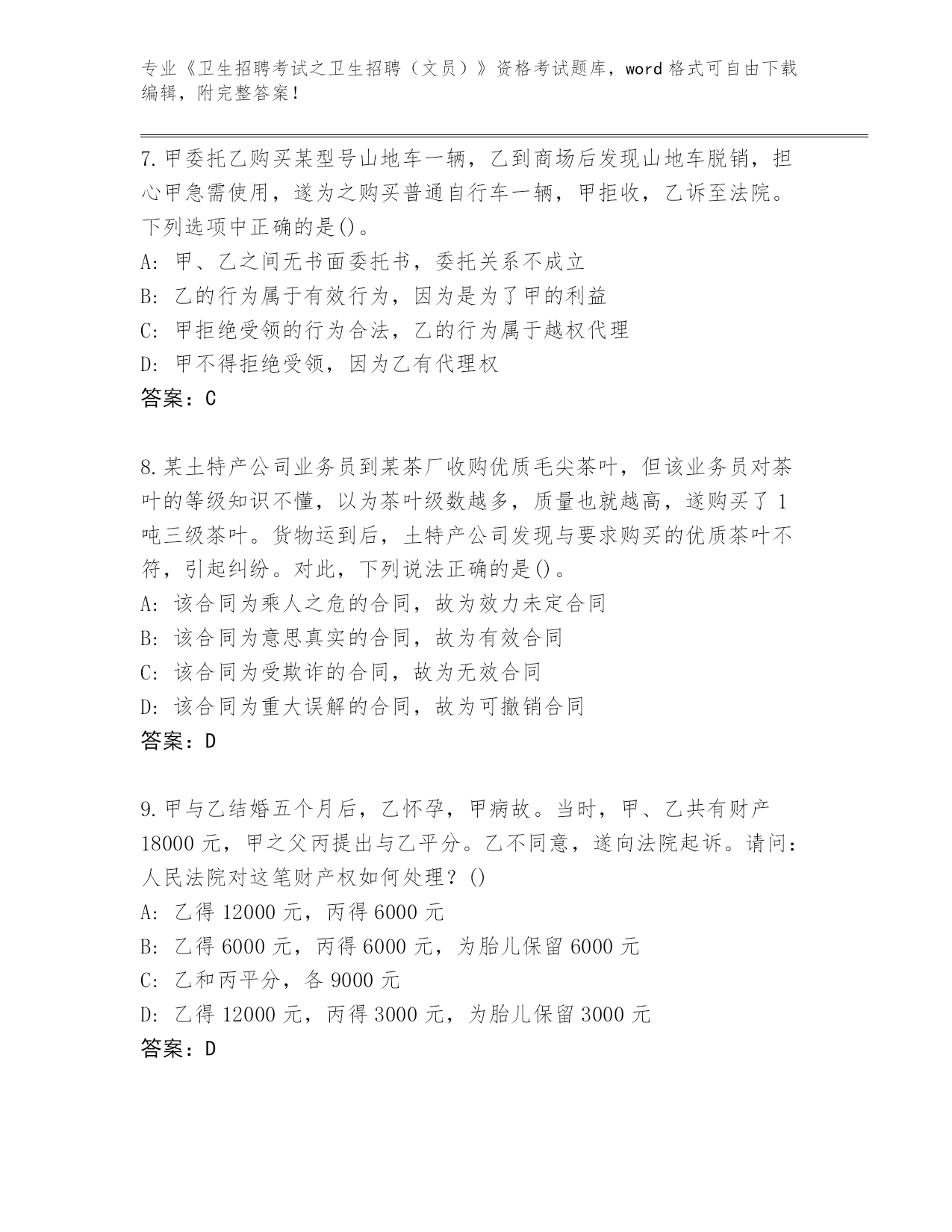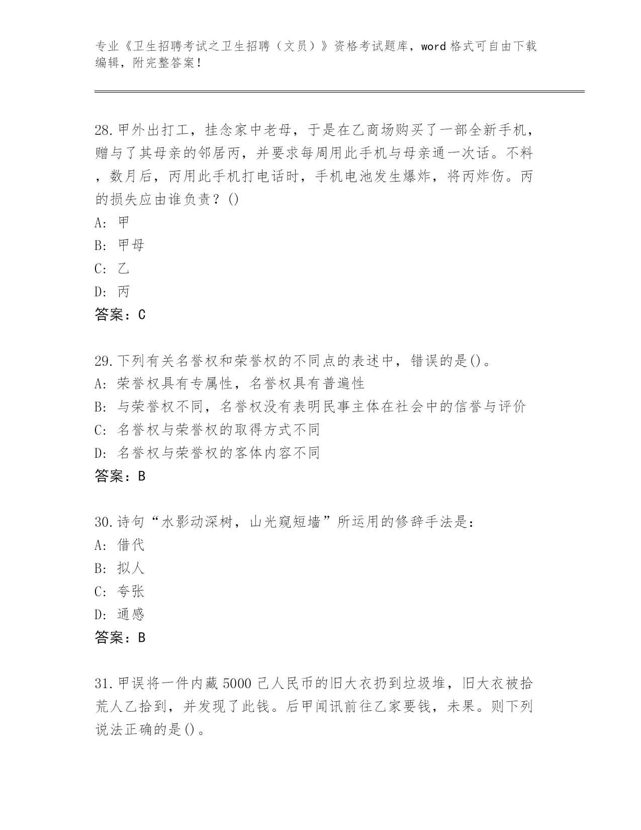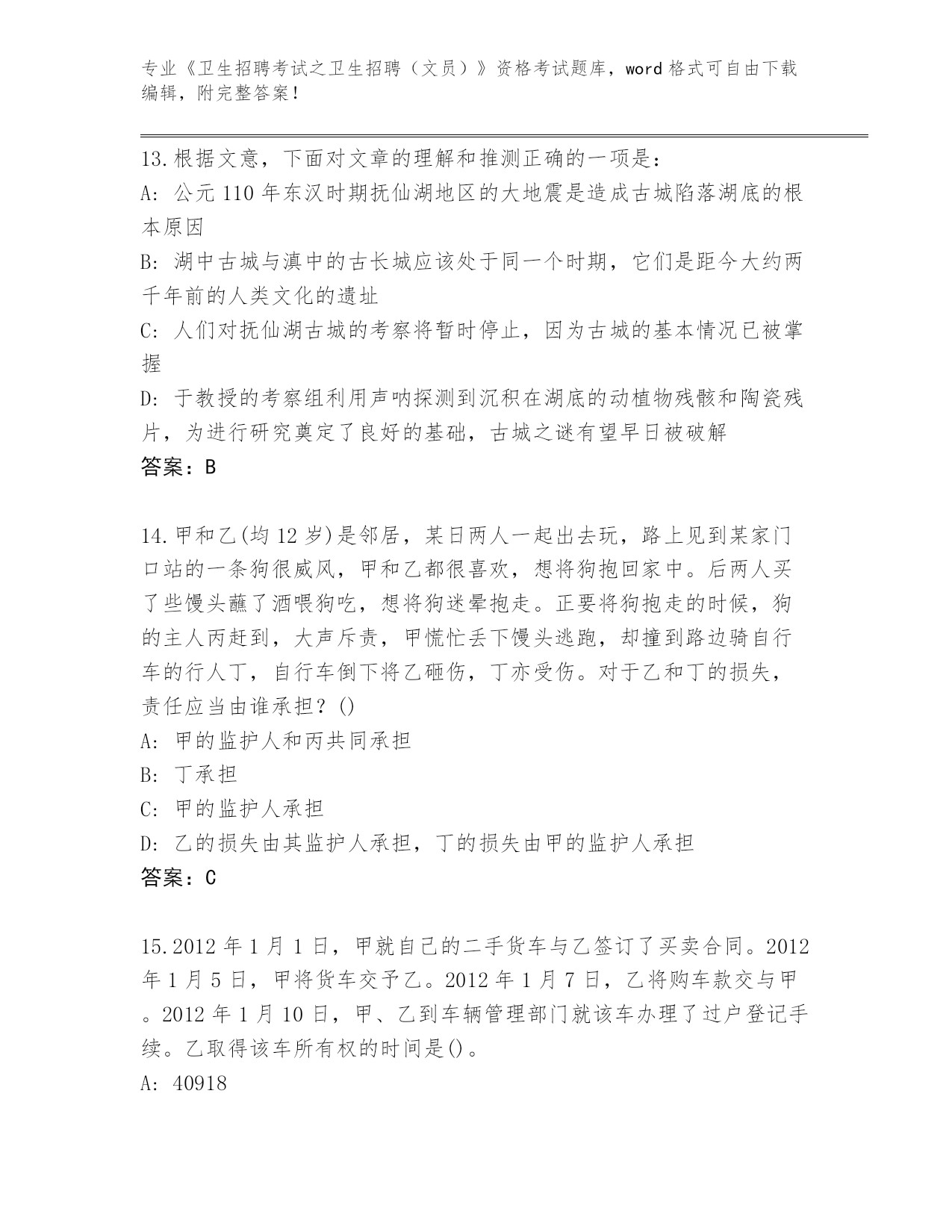 湖北省整理《卫生招聘考试之卫生招聘(文员)》资格考试大全(实用)
