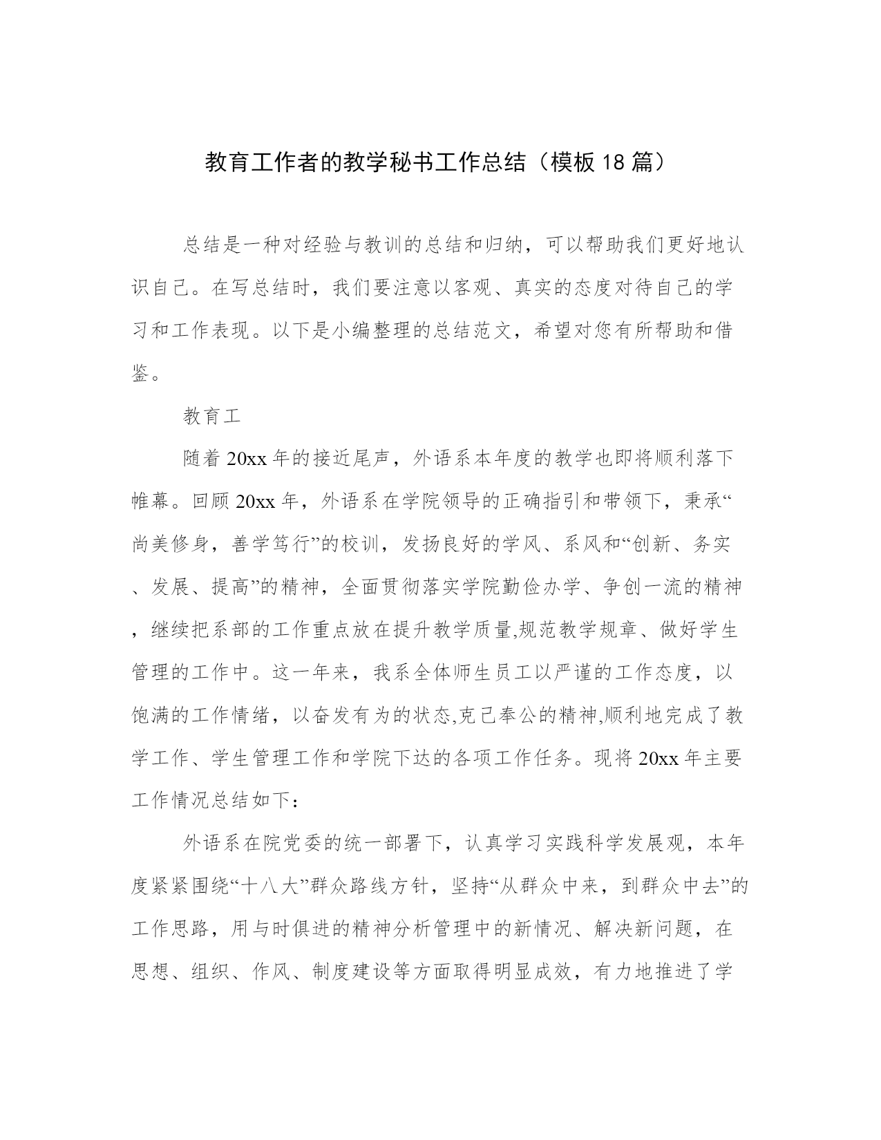 教育工作者的教学秘书工作总结(模板18篇).docx