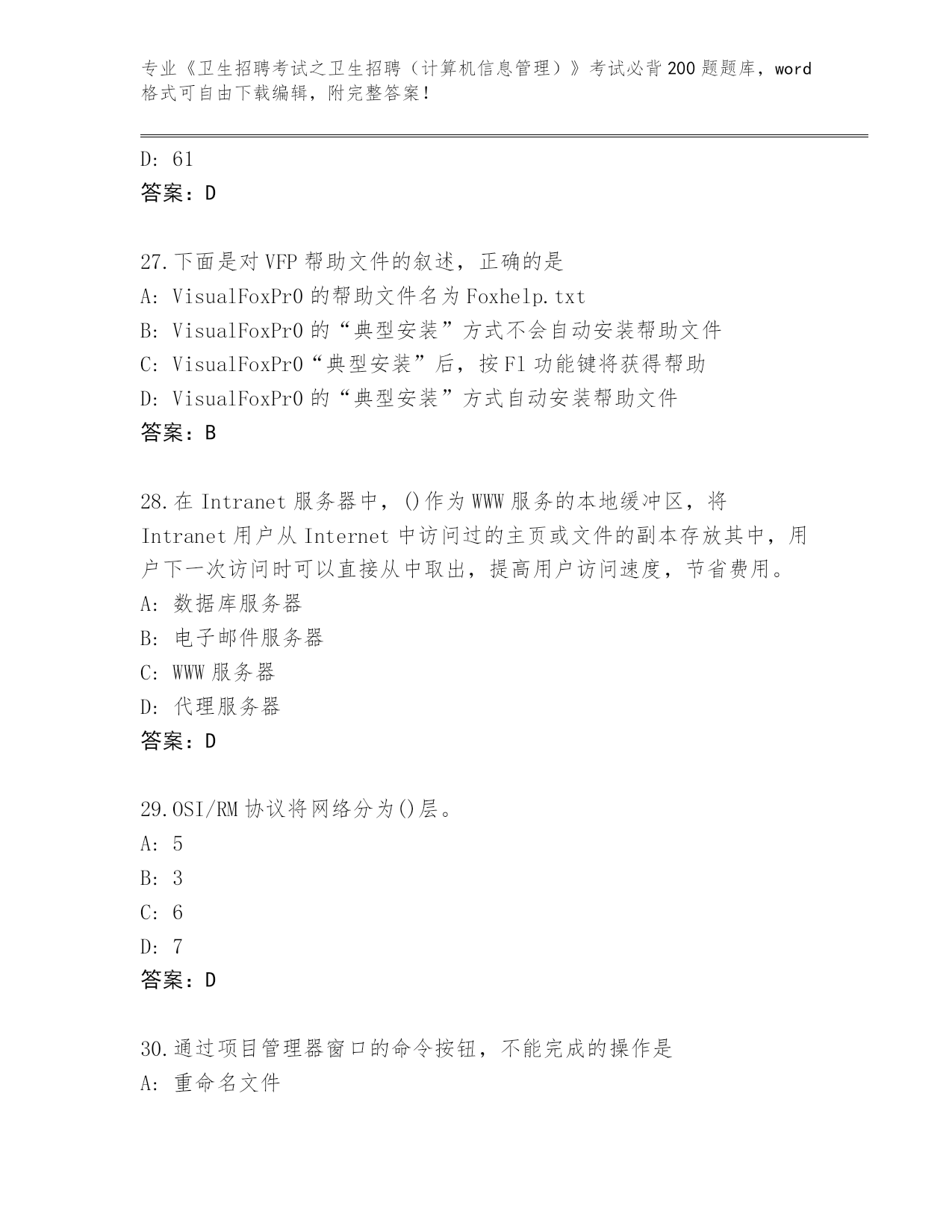 2024年陕西省蓝田县《卫生招聘考试之卫生招聘(计算机信息管理)》考试必背200题内部题库AB卷