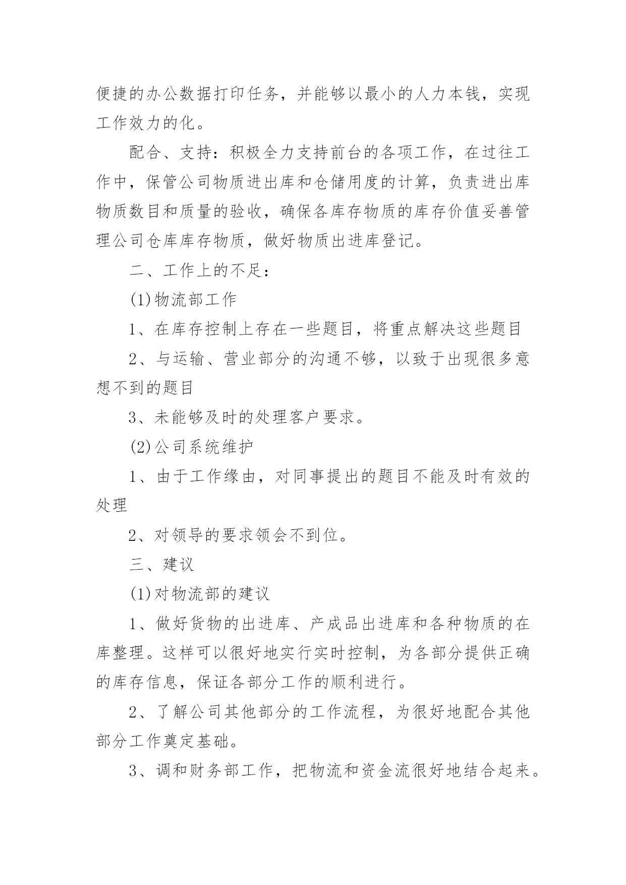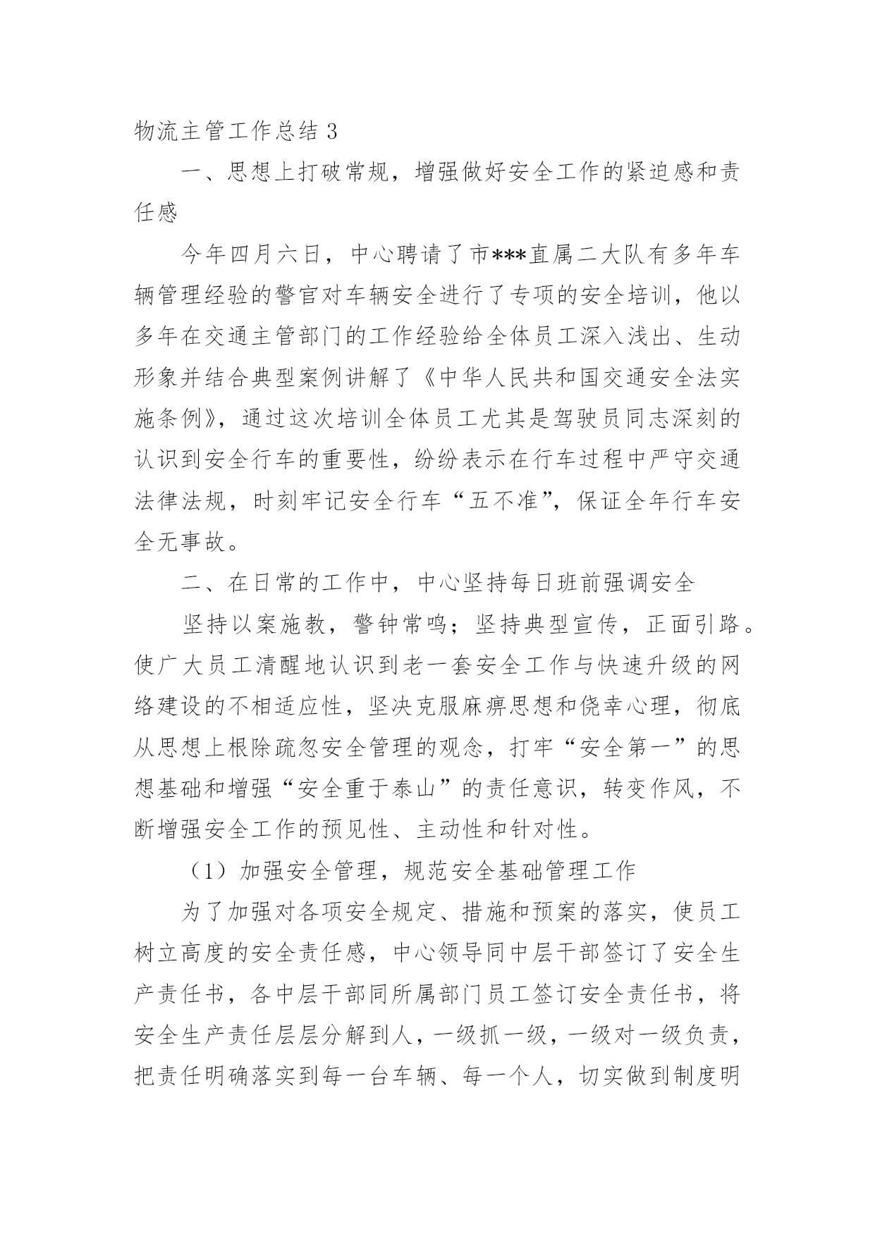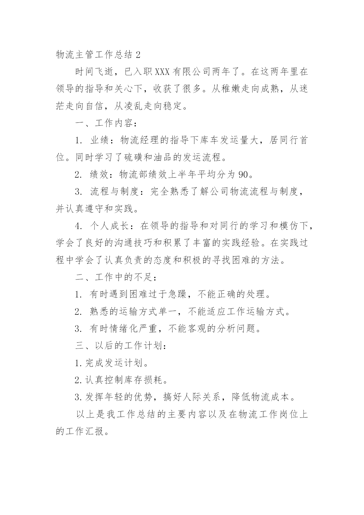 物流主管工作总结总结是指对某一阶段的工作、学习或思想中的经验或情况进行分析研究,做出带有规律性结论的书面材料,它是增长才干的一种好办法,为此我们要做好回顾,写好总结。你所见过的总结应该是什么样的?下面是小编帮大家整理的物流主管工作总结,欢迎大家借鉴与参考,希望对大家有所帮助。物流主管工作总结1时光匆匆,转眼间,我来公司已有一年了,回首过往的一年里,经过又接近一年的物流部分工作,公司的物流工作已进进了稳步发展阶段,同时自己在物流方面的能力也得到了锻炼与进步。一、主要工作内容:负责公司海关系统的操纵,公司办公网络的维护、公司后台服务器的维护,协助软件公司对当前系统改造部分工作宗旨:团结合作、积极配合、支持前台、热忱工作。物流部工作重要性:我部分的工作任重道远,承当着与公司本钱密切相干的几大类业务,物流、仓储,已成为公司本钱管理的重要一部分,办公网络的重要性:提到办公网络对企业来说非常重要,我们经常提到的办公无纸化,办公自动化,办公网络化,都是这个意思,办公网络终究的目的就是为了让企业享受轻松,便捷的办公数据打印任务,并能够以最小的人力本钱,实现工作效力的化。配合、支持:积极全力支持前台的各项工作,在过往工作中,保管公司物质进出库和仓储用度的计算,负责进出库物质数目和质量的验收,确保各库存物质的库存价值妥善管理公司仓库库存物质,做好物质出进库登记。二、工作上的不足:(1)物流部工作1、在库存控制上存在一些题目,将重点解决这些题目2、与运输、营业部分的沟通不够,以致于出现很多意想不到的题目3、未能够及时的处理客户要求。(2)公司系统维护1、由于工作缘由,对同事提出的题目不能及时有效的处理2、对领导的要求领会不到位。三、建议(1)对物流部的建议1、做好货物的出进库、产成品出进库和各种物质的在库整理。这样可以很好地实行实时控制,为各部分提供正确的库存信息,保证各部分工作的顺利进行。2、了解公司其他部分的工作流程,为很好地配合其他部分工作奠定基础。3、调和财务部工作,把物流和资金流很好地结合起来。物流是一个不断寻觅途径下降本钱的部分,而且也是一个不断增值的部分。把物流和资金流很好地结合起来,让企业经营状态透明化,很好地调和财务部分的工作,不断下降物流本钱,和让物流在企业经营中体现增值的作用。(2)对公司的建议:1、明确公司制度:一个好的公司必须有自己一套完全的制度,有了自己的制度就依照制度来,不能领导凭感觉来判定一些突发事件。2、分工明确:公司需给每位员工明确的职务,不能来一件事不论是不是该员工的职责范围,都让他往,公司应采取直线式的管理方式(一个员工只有一个主管)。3、明确责任:公司应当有明确的责任制度,否则一旦出现题目大家相互推辞(运输和物流运输和罐箱)。4、等量齐观:公司应当对每一个员工等量齐观,每一个员工在公司都应当有同等的待遇,这个道理大家都是知道的,否则员工会在心理上产生不同等,严重影响工作。以上是我在公司工作10个多月来的总结,其中说了一下我的工作内容和工作不足,也有对物流部分和公司领导提出的建议,请领导审阅。随着公司的不断发展,物流部范围也得以壮大。加强部分管理建设,不断进步职员素质,强化服务水平、下降运营本钱。全体员工齐心协力、努力奋斗,争取比上年度获得更好的效益。物流主管工作总结2时间飞逝,已入职XXX有限公司两年了。在这两年里在领导的指导和关心下,收获了很多。从稚嫩走向成熟,从迷茫走向自信,从凌乱走向稳定。一、工作内容:1.业绩:物流经理的指导下库车发运量大,居同行首位。同时学习了硫磺和油品的发运流程。2.绩效:物流部绩效上半年平均分为90。3.流程与制度:完全熟悉了解公司物流流程与制度,并认真遵守和实践。4.个人成长:在领导的指导和对同行的学习和模仿下,学会了良好的沟通技巧和积累了丰富的实践经验。在实践过程中学会了认真负责的态度和积极的寻找困难的方法。二、工作中的不足:1.有时遇到困难过于急躁,不能正确的处理。2.熟悉的运输方式单一,不能适应工作运输方式。3.有时情绪化严重,不能客观的分析问题。三、以后的工作计划:1.完成发运计划。2.认真控制库存损耗。3.发挥年轻的优势,搞好人际关系,降低物流成本。以上是我工作总结的主要内容以及在物流工作岗位上的工作汇报。物流主管工作总结3一、思想上打破常规,增强做好安全工作的紧迫感和责任感今年四月六日,中心聘请了市***直属二大队有多年车辆管理经验的警官对车辆安全进行了专项的安全培训,他以多年在交通主管部门的工作经验给全体员工深入浅出、生动形象并结合典型案例讲解了《中华人民共和国交通安全法实施条例》,通过这次培训全体员工尤其是驾驶员同志深刻的认识到安全行车的重要性,纷纷表示在行车过程中严守交通法律法规,时刻牢记安全行车“五不准”,保证全年行车安全无事故。二、在日常的工作中,中