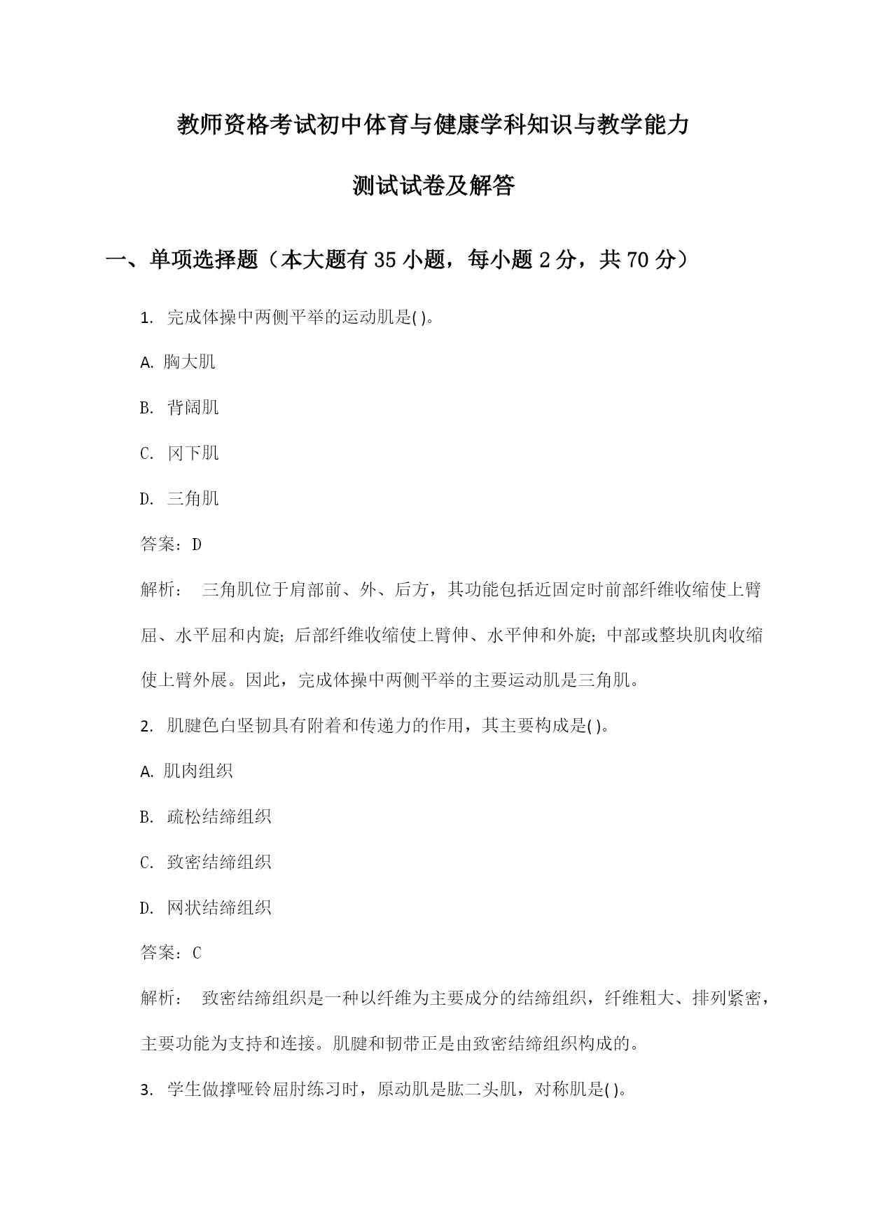 教师资格考试初中体育与健康学科知识与教学能力测试试卷及解答.docx