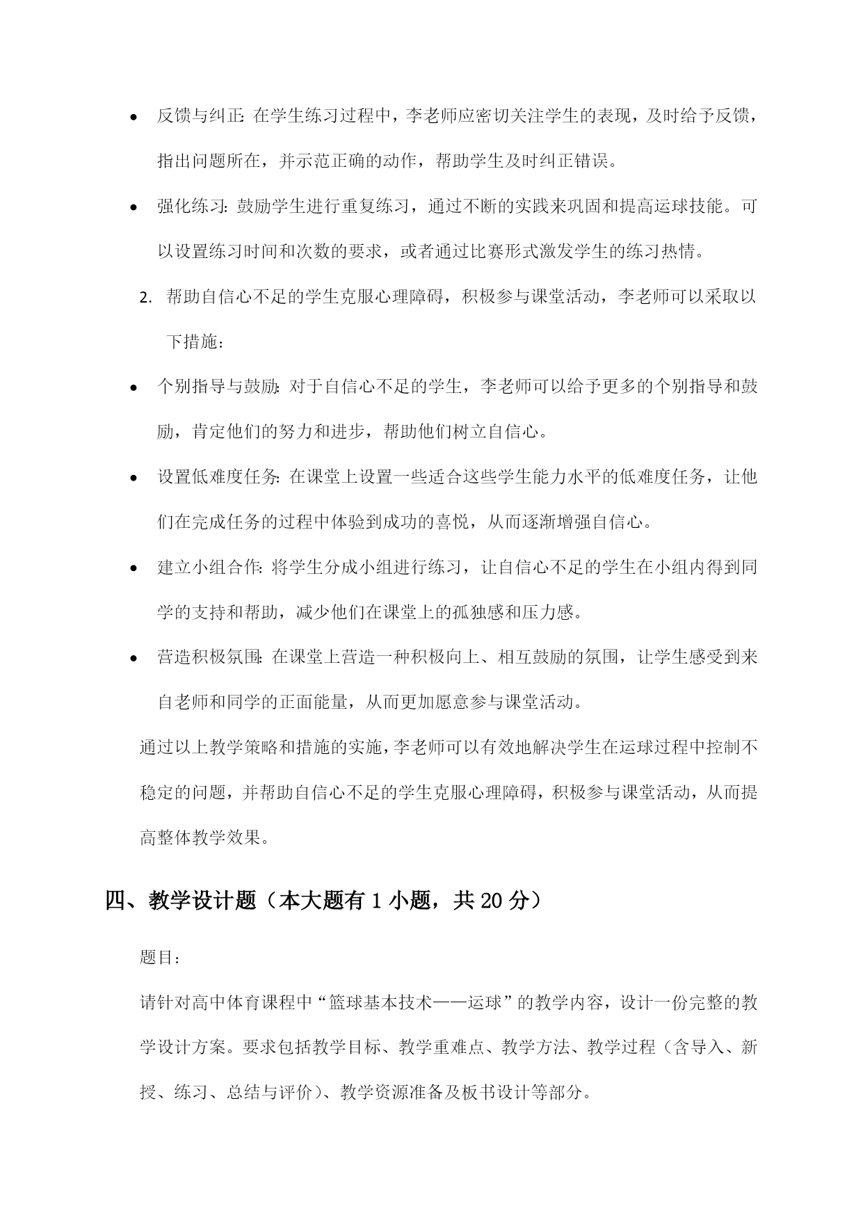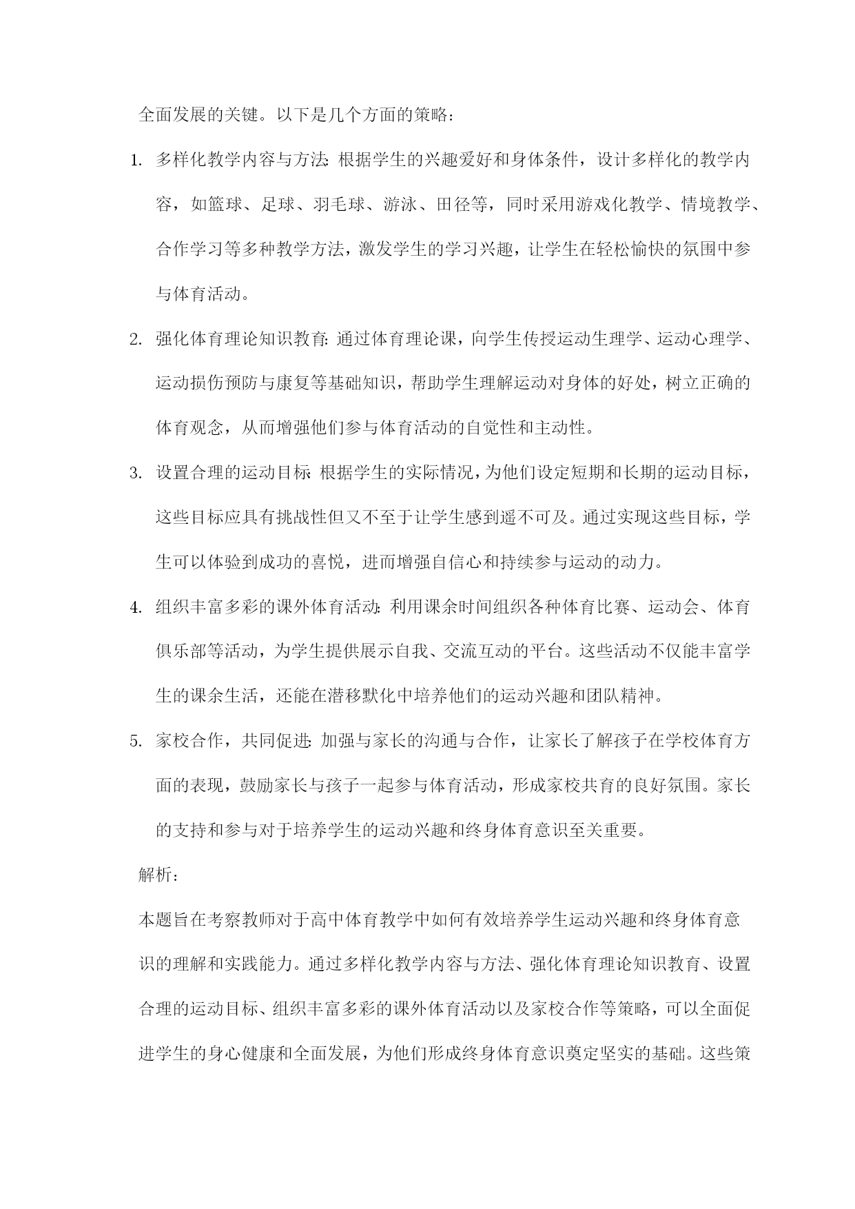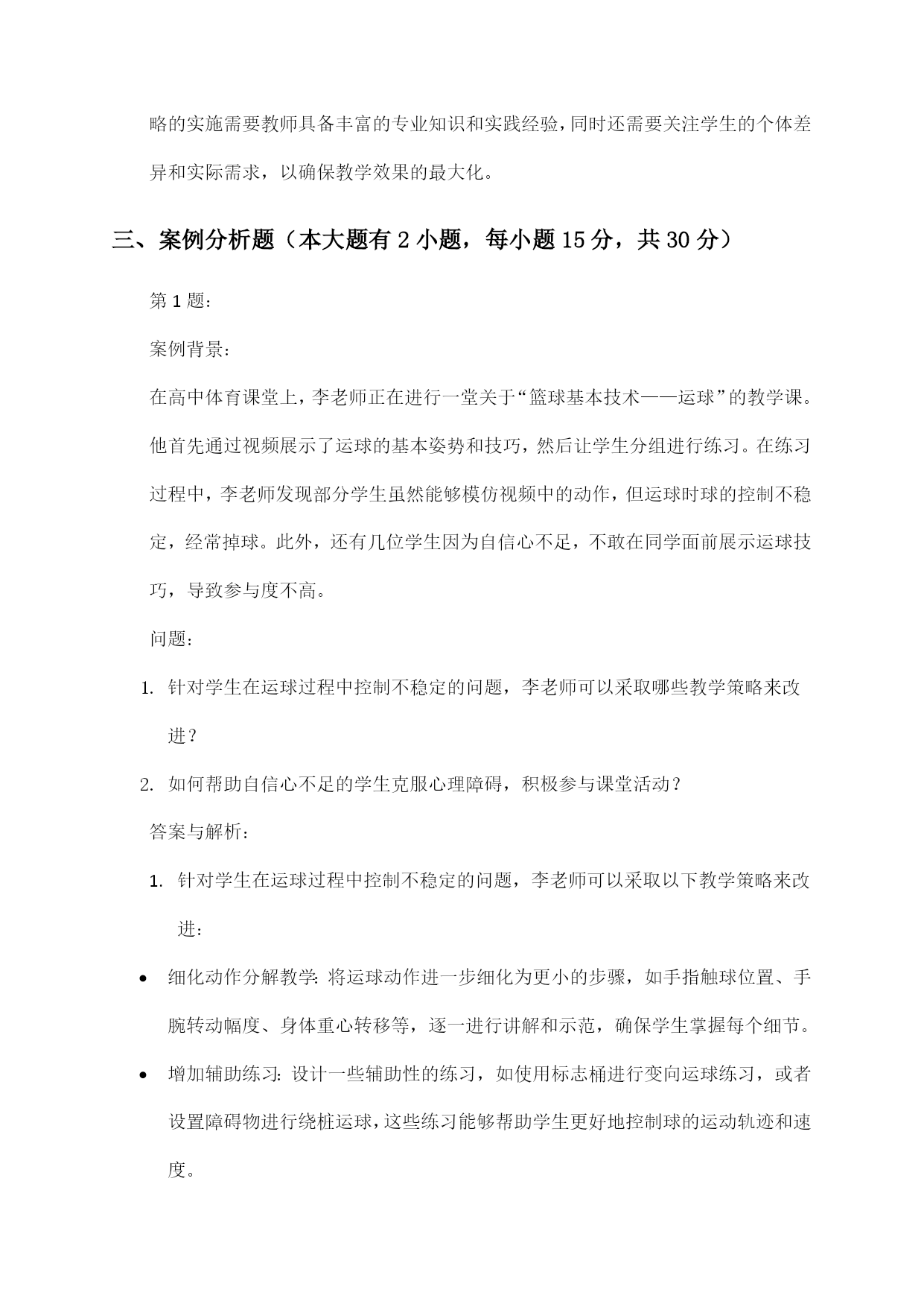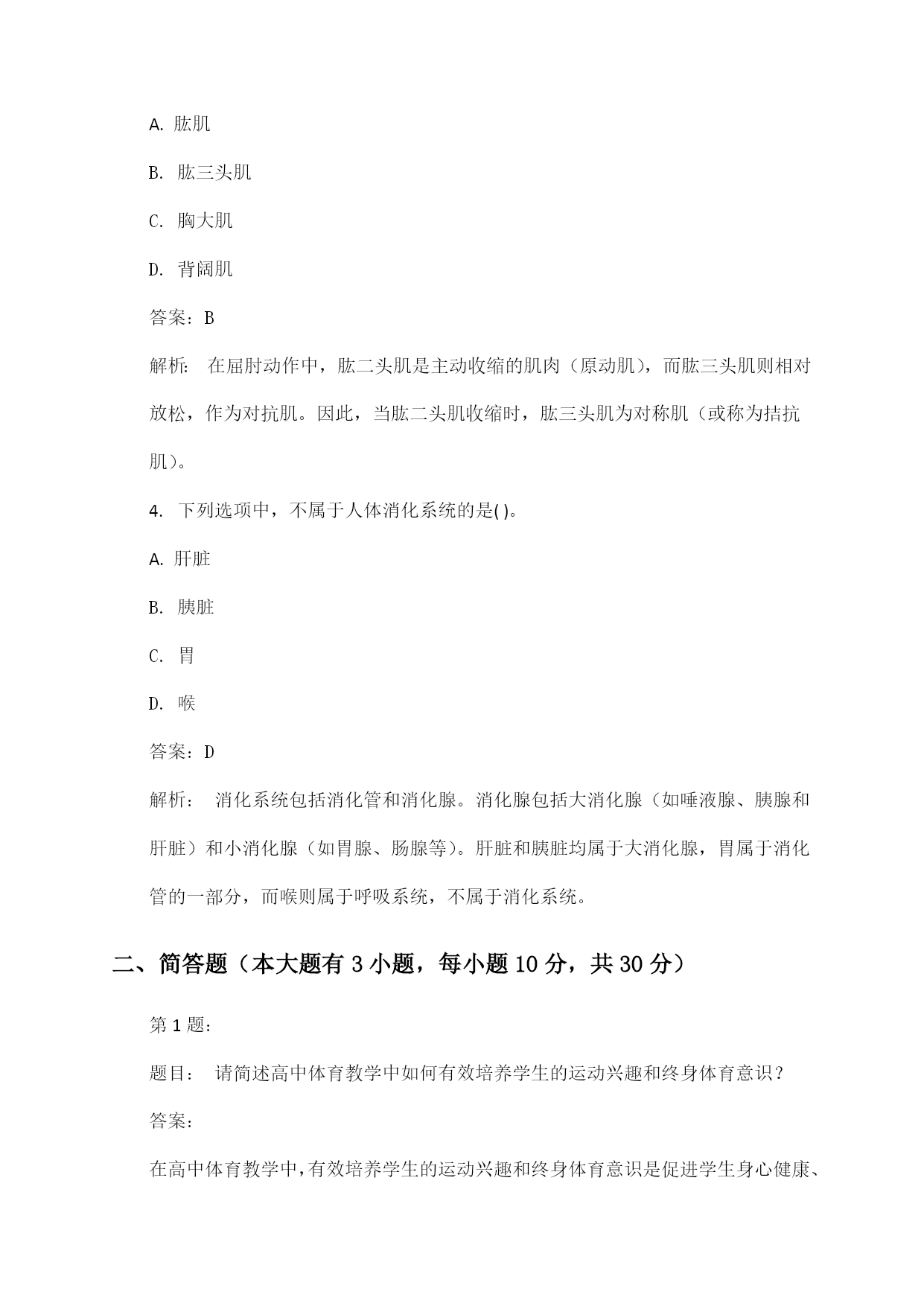 教师资格考试初中体育与健康学科知识与教学能力测试试卷及解答