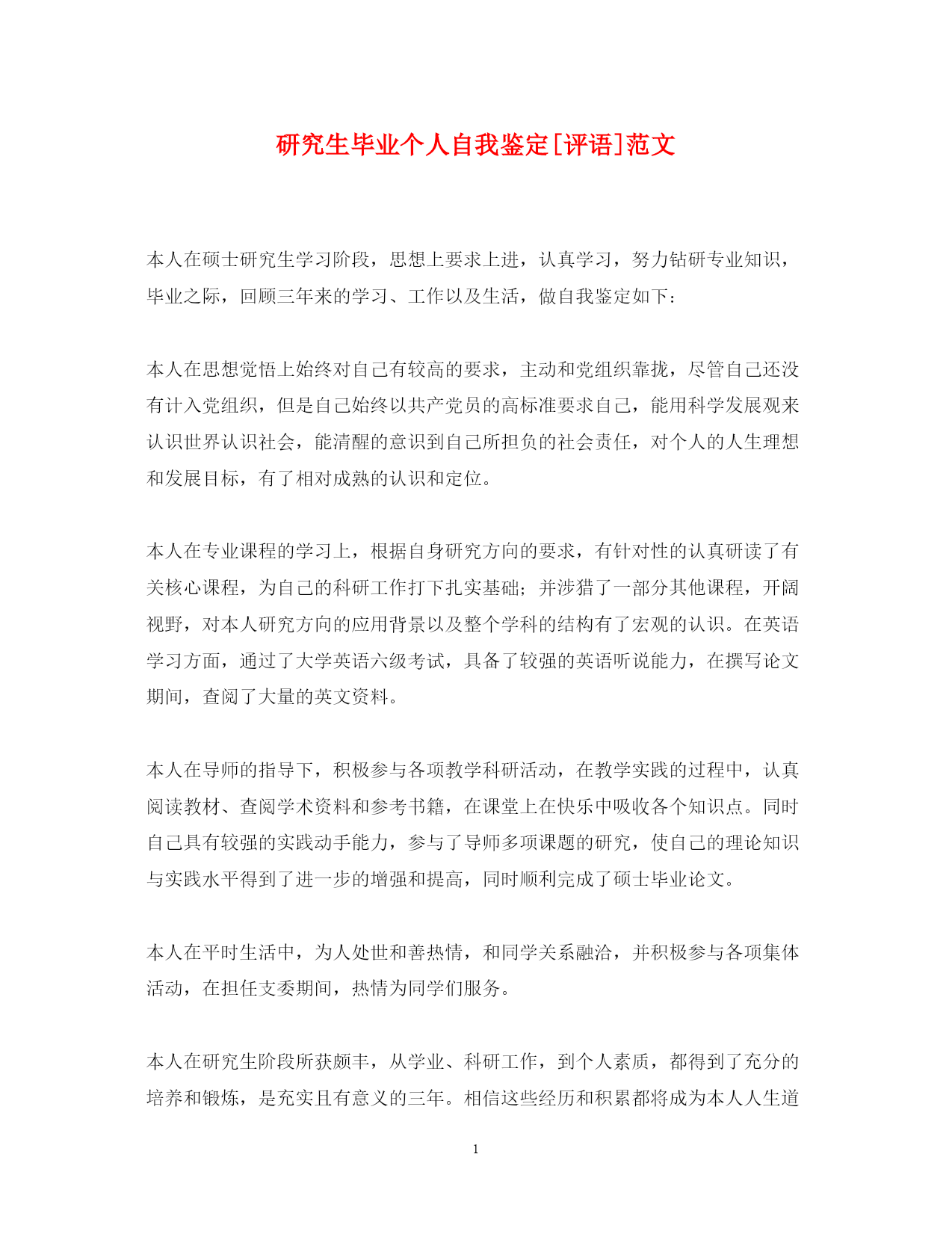 2022研究生毕业个人自我鉴定[评语]范文.docx
