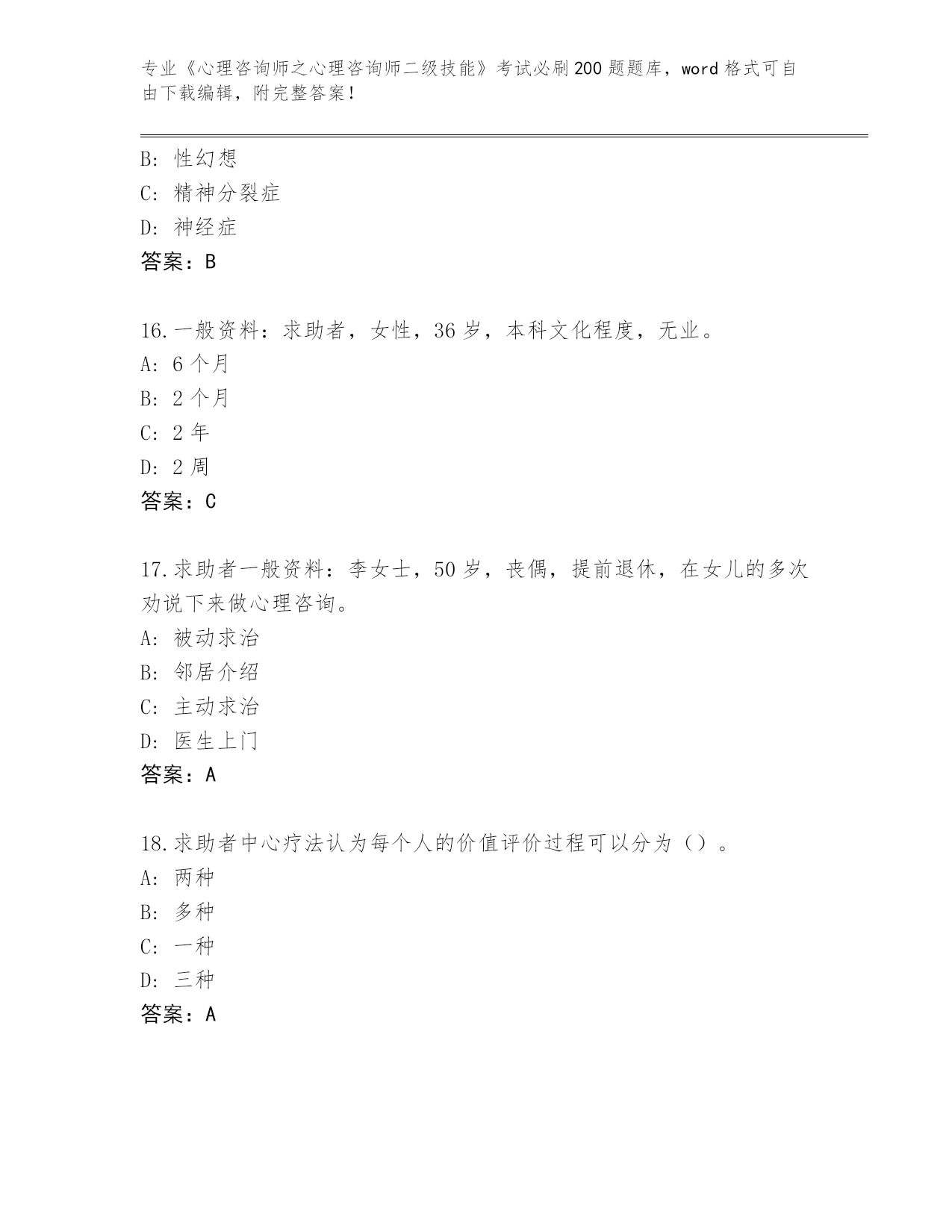 江西省内部使用《心理咨询师之心理咨询师二级技能》资格考试必刷200题题库大全【】