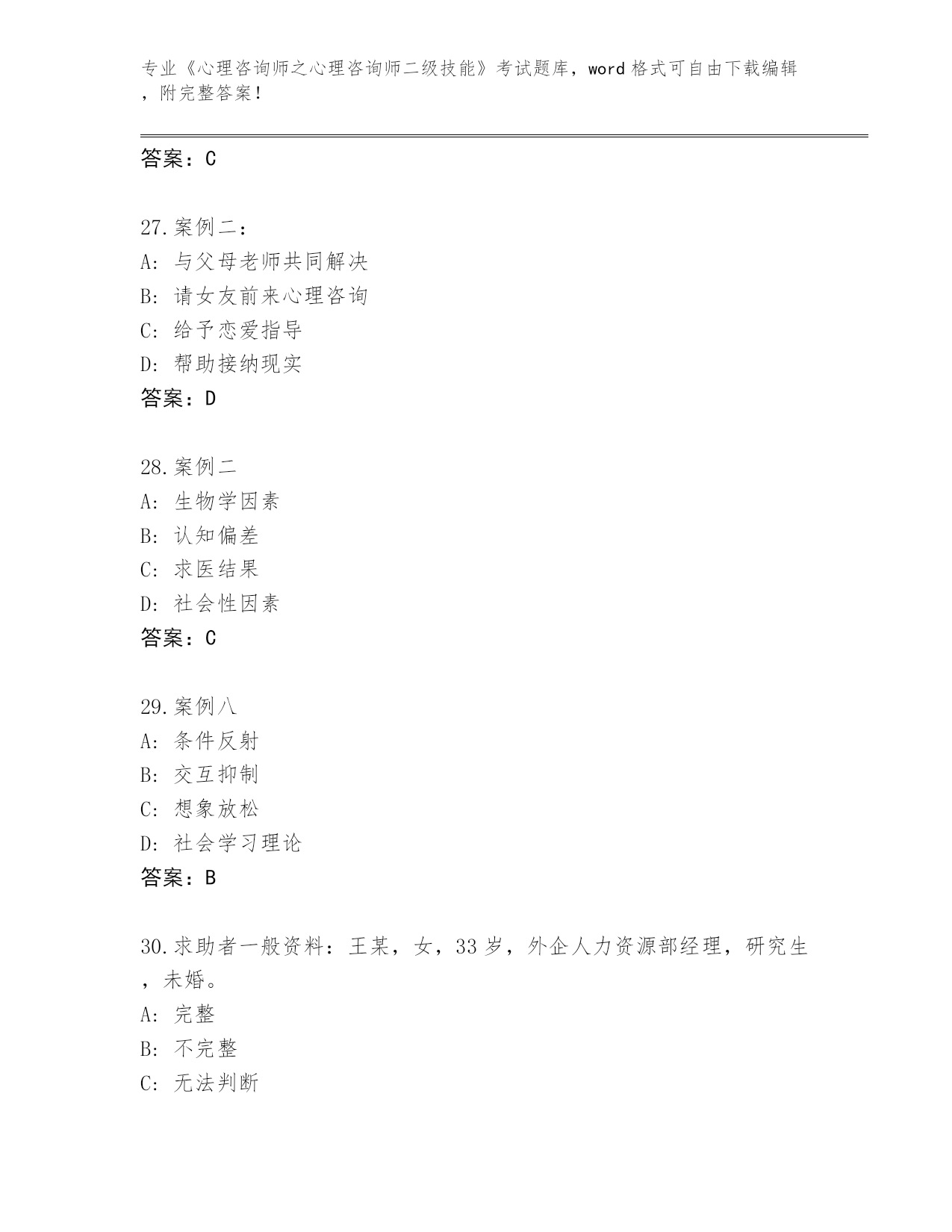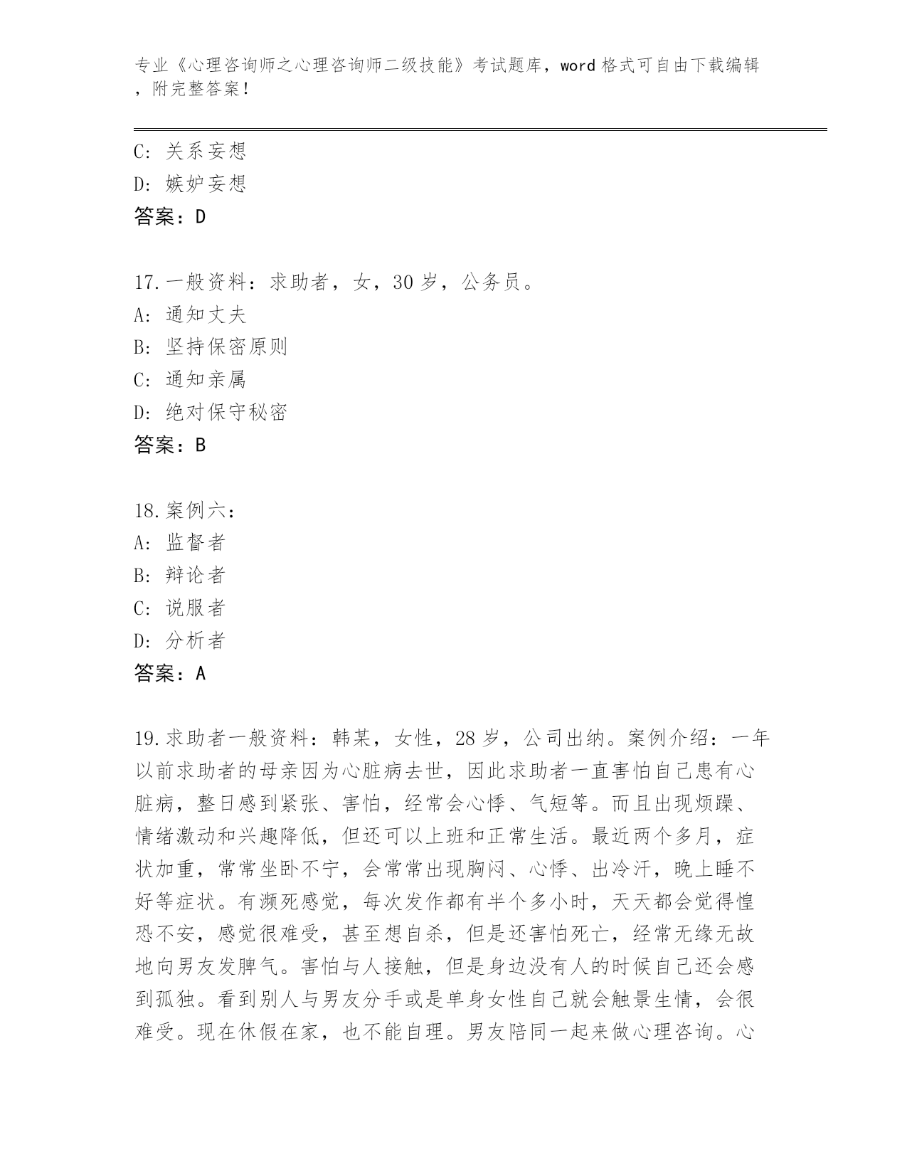 安徽省淮上区2024年《心理咨询师之心理咨询师二级技能》考试通关秘籍题库(名师系列)