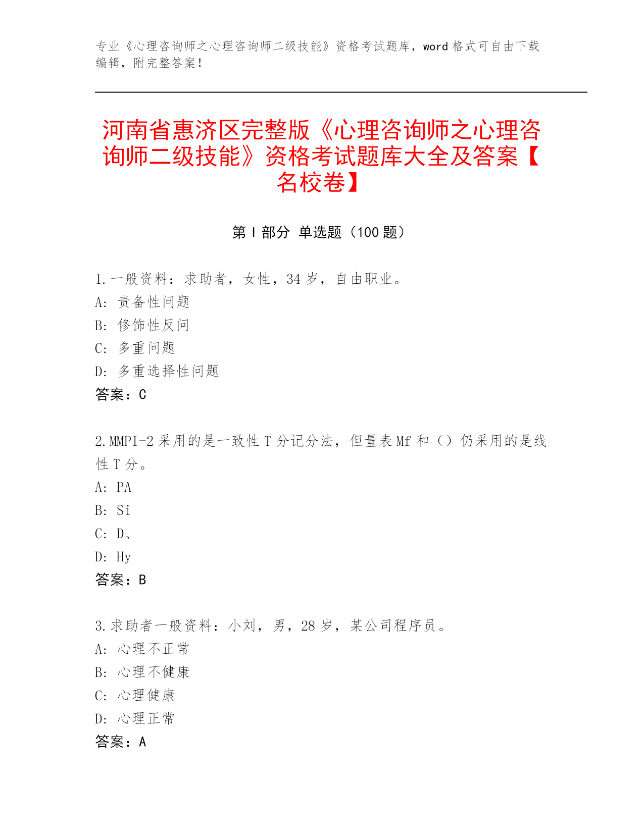 完整版河南省《心理咨询师之心理咨询师二级技能》资格考试【名校卷】