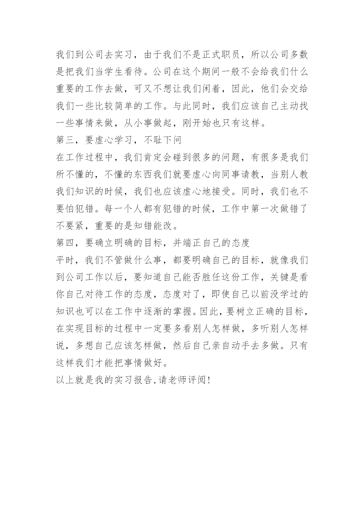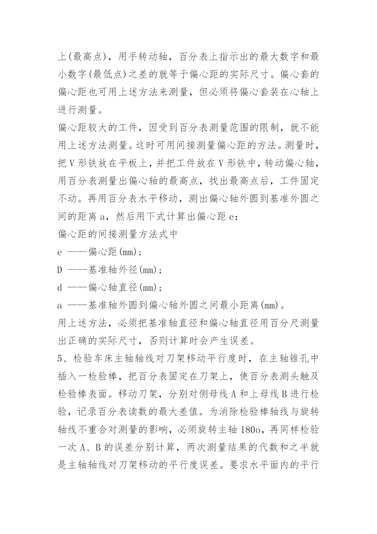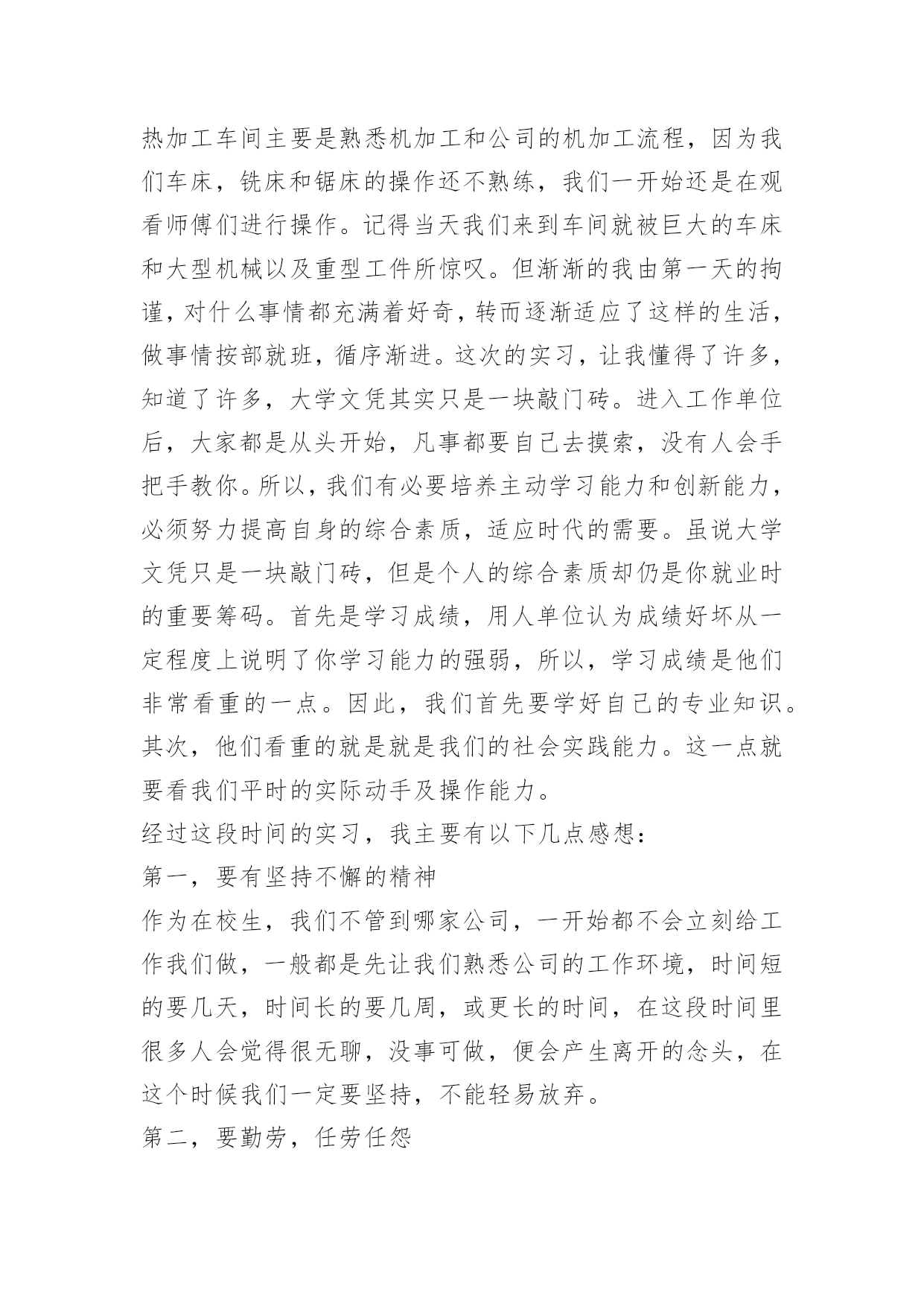 机电一体化认知实习小结机电一体化认知实习小结时间飞快,还有四个月我就要大学毕业了,我的大学生活也就要结束了。回想昨日仿佛就在眼前,但是时间在我们指尖如流水悄悄的流走!而我们也即将踏上社会,走上自己的工作岗位!我们知道机械制造业是一个国家最基础的行业,也决定了一个国家制造业的整体水平,起步早,但发展又最令人担忧,比如现在中国的汽车工业相比机械制造业来说无论是产品质量还是生产效率都要高得多,当然这也是因为机械行业的特性起了决定性的因素。对于我们机电一体化专业的学生们来说,或对于作为将来从事机械,机电制造方面业务的我们来说,去机械制造公司实习对我们来说非常重要。一、实习目的通过在重冶的实习,可以使我们在实践中接触与本专业相关的一些实际工作,培养和锻炼我们综合运用所学的基础理论、基本技能和专业知识,去独立分析和解决实际问题的能力,把理论和实践结合起来,提高我们的实际动手能力,为将来我们毕业后走上工作岗位打下一定的基础。二、实习内容(一)量具当中百分表、千分尺在机加工中的使用1、使用前,应检查测量杆活动的灵活性。即轻轻推动测量杆时,测量杆在套筒内的移动要灵活,没有任何轧卡现象,且每次放松后,指针能回复到原来的刻度位置。2、测量时,不要使测量杆的行程超过它的测量范围;不要使测量头突然撞在零件上;不要使百分表和千分表受到剧烈的振动和撞击,亦不要把零件强迫推入测量头下,免得损坏百分表和千分表的机件而失去精度。因此,用百分表测量表面粗糙或有显著凹凸不平的零件是错误的。3、用百分表校正或测量零件时,应当使测量杆有一定的初始测力。即在测量头与零件表面接触时,测量杆应有0.3~1mm的压缩量(千分表可小一点,有0.1mm即可),使指针转过半圈左右,然后转动表圈,使表盘的零位刻线对准指针。轻轻地拉动手提测量杆的圆头,拉起和放松几次,检查指针所指的零位有无改变。当指针的零位稳定后,再开始测量或校正零件的工作。如果是校正零件,此时开始改变零件的相对位置,读出指针的偏摆值,就是零件安装的偏差数值。4、检查工件平整度或平行度时。将工件放在平台上,使测量头与工件表面接触,调整指针使摆动~转,然后把刻度盘零位对准指针,跟着慢慢地移动表座或工件,当指针顺时针摆动时,说明了工件偏高,反时针摆动,则说明了工件偏低了。当进行轴测的时候,就是以指针摆动最大数字为读数(最高点),测量孔的时候,就是以指针摆动最小数字(最低点)为读数。检验工件的偏心度时,如果偏心距较小,可测量偏心距,把被测轴装在两顶尖之间,使百分表的测量头接触在偏心部位上(最高点),用手转动轴,百分表上指示出的最大数字和最小数字(最低点)之差的就等于偏心距的实际尺寸。偏心套的偏心距也可用上述方法来测量,但必须将偏心套装在心轴上进行测量。偏心距较大的工件,因受到百分表测量范围的限制,就不能用上述方法测量。这时可用间接测量偏心距的方法。测量时,把V形铁放在平板上,并把工件放在V形铁中,转动偏心轴,用百分表测量出偏心轴的最高点,找出最高点后,工件固定不动。再用百分表水平移动,测出偏心轴外圆到基准外圆之间的距离a,然后用下式计算出偏心距e:偏心距的间接测量方法式中e——偏心距(mm);D——基准轴外径(mm);d——偏心轴直径(mm);a——基准轴外圆到偏心轴外圆之间最小距离(mm)。用上述方法,必须把基准轴直径和偏心轴直径用百分尺测量出正确的实际尺寸,否则计算时会产生误差。5、检验车床主轴轴线对刀架移动平行度时,在主轴锥孔中插入一检验棒,把百分表固定在刀架上,使百分表测头触及检验棒表面。移动刀架,分别对侧母线A和上母线B进行检验,记录百分表读数的最大差值。为消除检验棒轴线与旋转轴线不重合对测量的影响,必须旋转主轴180o,再同样检验一次A、B的误差分别计算,两次测量结果的代数和之半就是主轴轴线对刀架移动的平行度误差。要求水平面内的平行度允差只许向前偏,即检验棒前端偏向操作者;垂直平面内的平行度允差只许向上偏。6、检验刀架移动在水平面内直线度时,将百分表固定在刀架上,使其测头顶在主轴和尾座顶尖间的检验棒侧母线上,调整尾座,使百分表在检验棒两端的读数相等。然后移动刀架,在全行程上检验。百分表在全行程上读数的最大代数差值,就是水平面内的直线度误差。7、在使用百分表和千分表的过程中,要严格防止水、油和灰尘渗入表内,测量杆上也不要加油,免得粘有灰尘的油污进入表内,影响表的灵活性。8、百分表和千分表不使用时,应使测量杆处于自由状态,免使表内的弹簧失效。如内径百分表上的百分表,不使用时,应拆下来保存。(二)刀具的种类和注意事项另外自己对机加工也有了一些认识,我们在学校实习用的.车床一般都是小型的车床如:CA6140这样的小车床,但是在公司我们使用的都是大车床,而且切削工件也不是在学校用的塑料制品,而是各种各样的成形钢材如:45