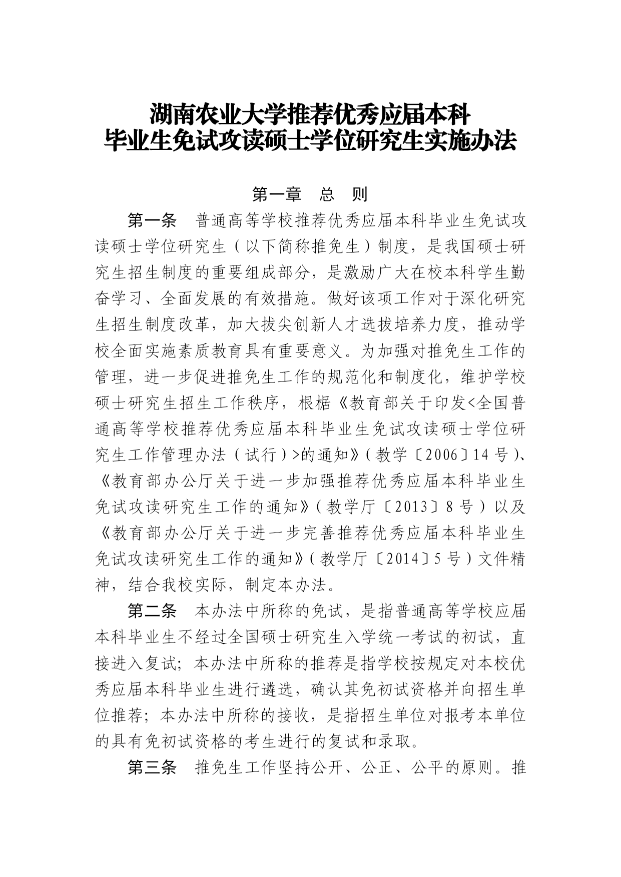 应届本科毕业生免试攻读硕士学位研究生实施办法.doc