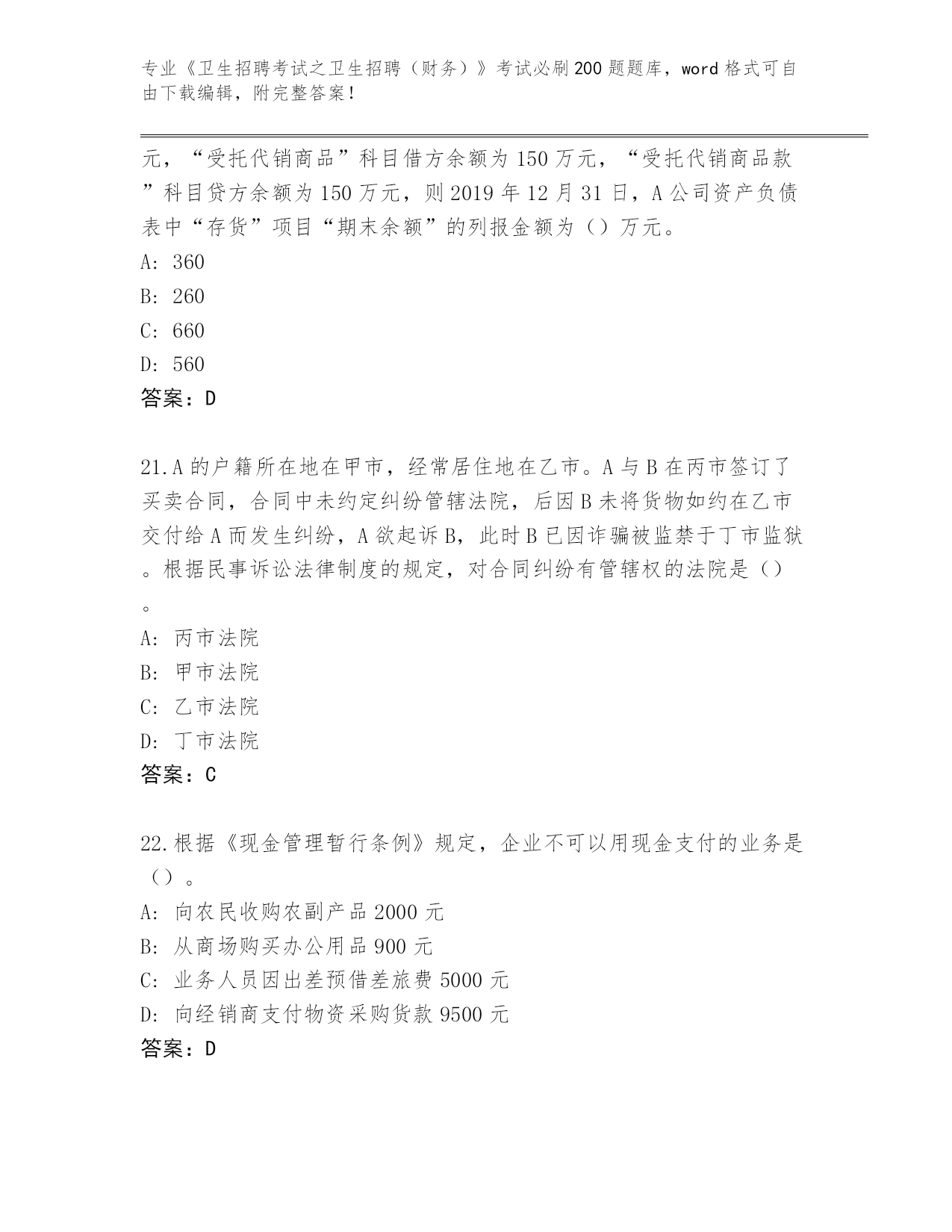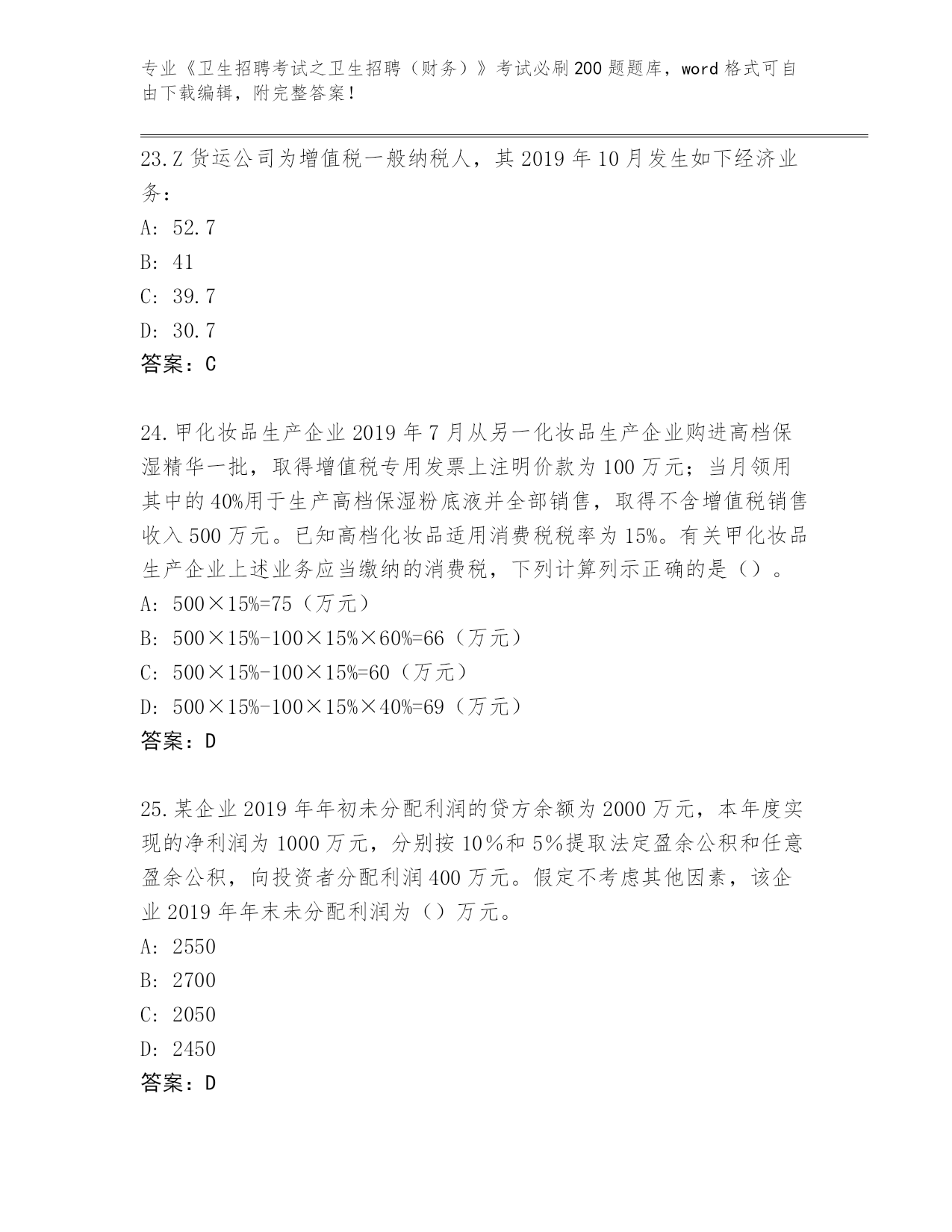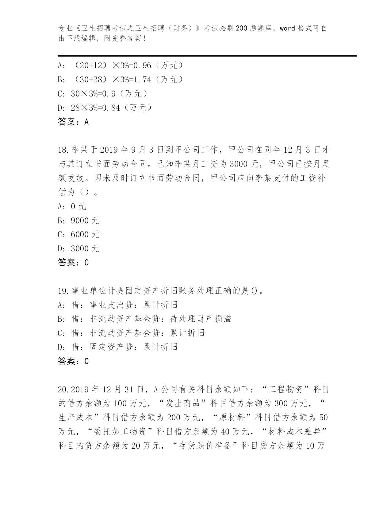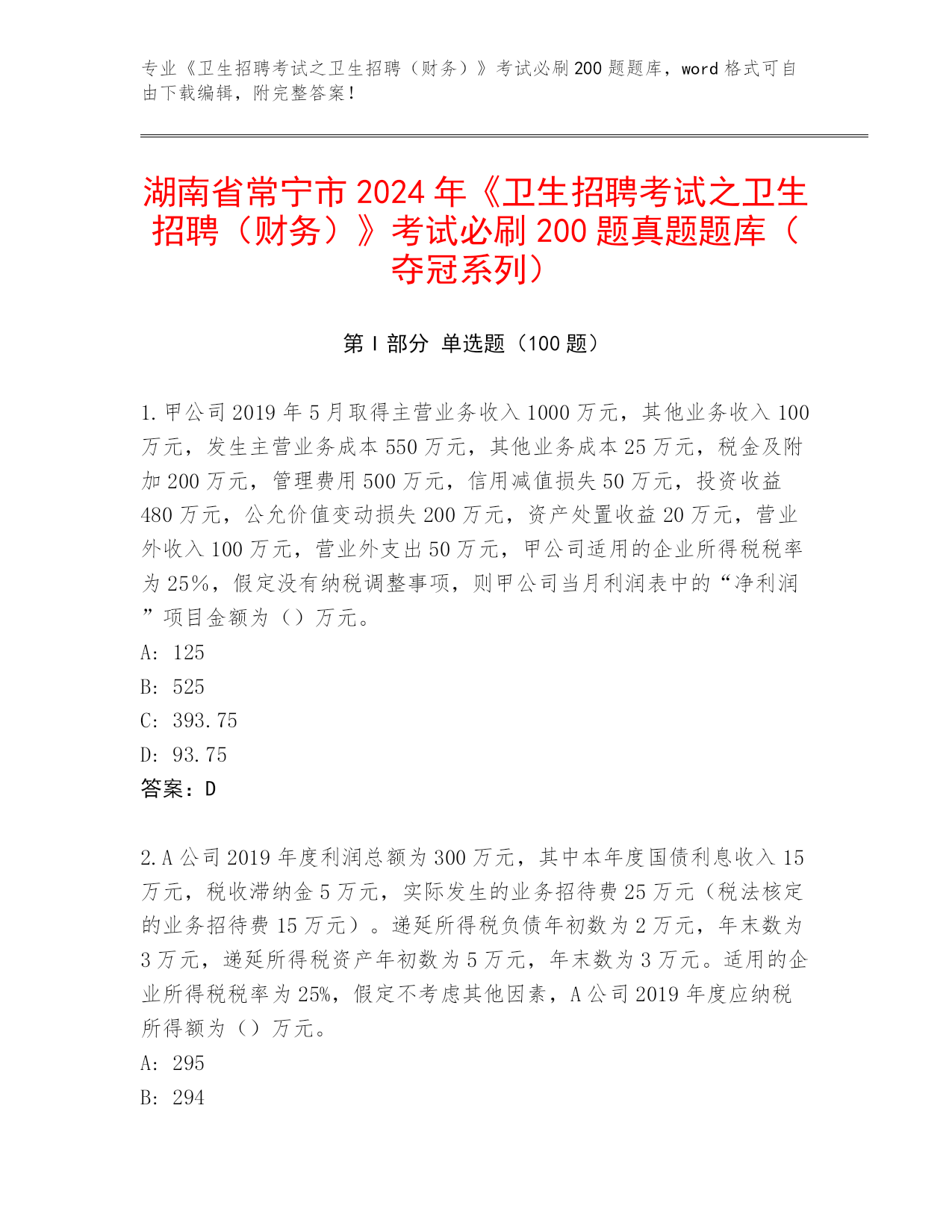 湖南省常宁市2024年《卫生招聘考试之卫生招聘(财务)》考试必刷200题真题题库(夺冠系列)
