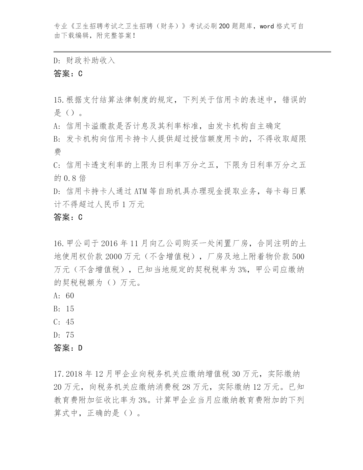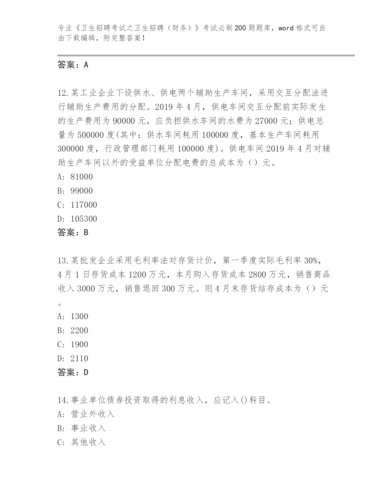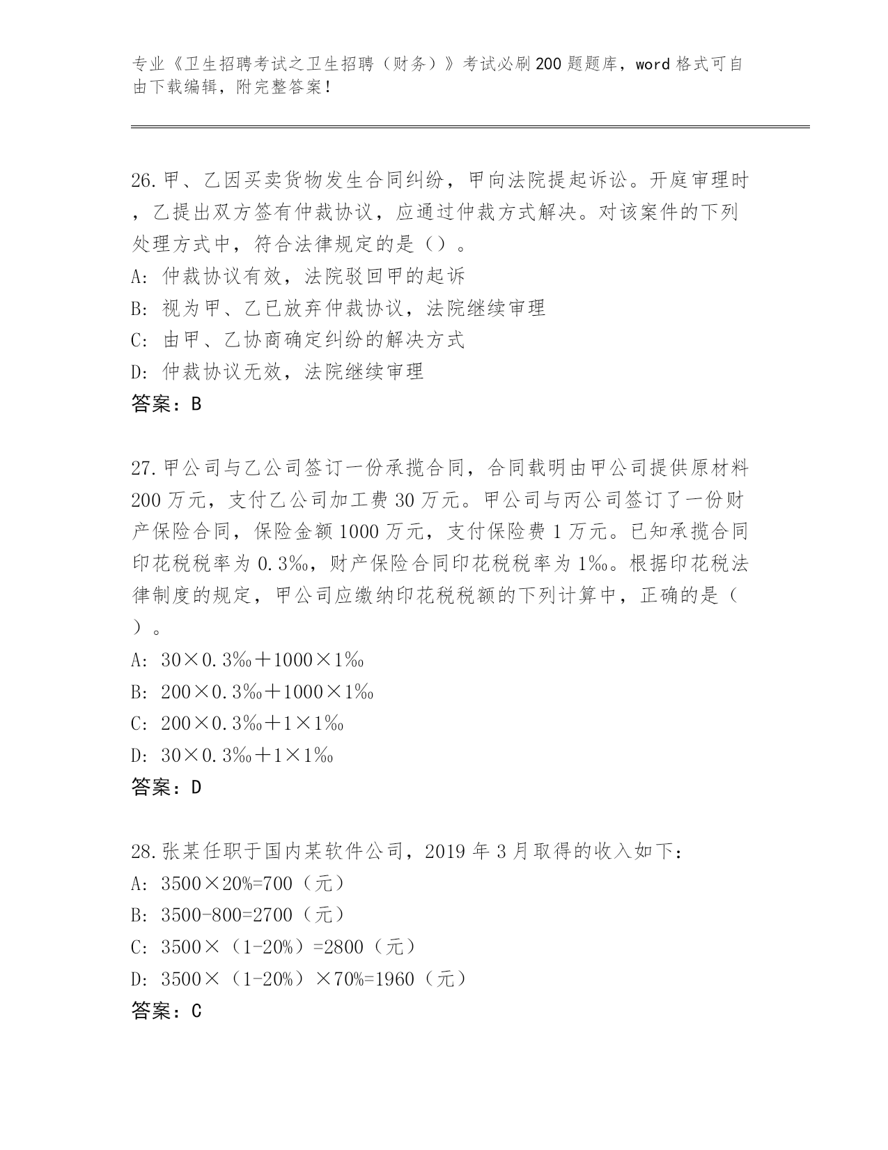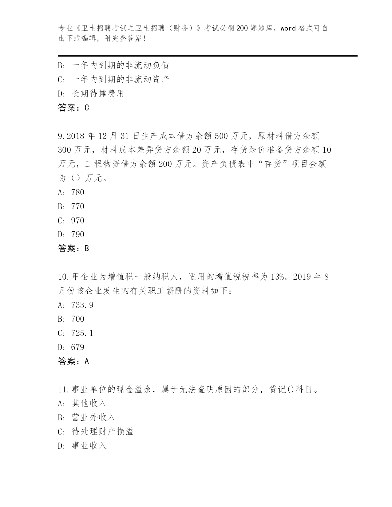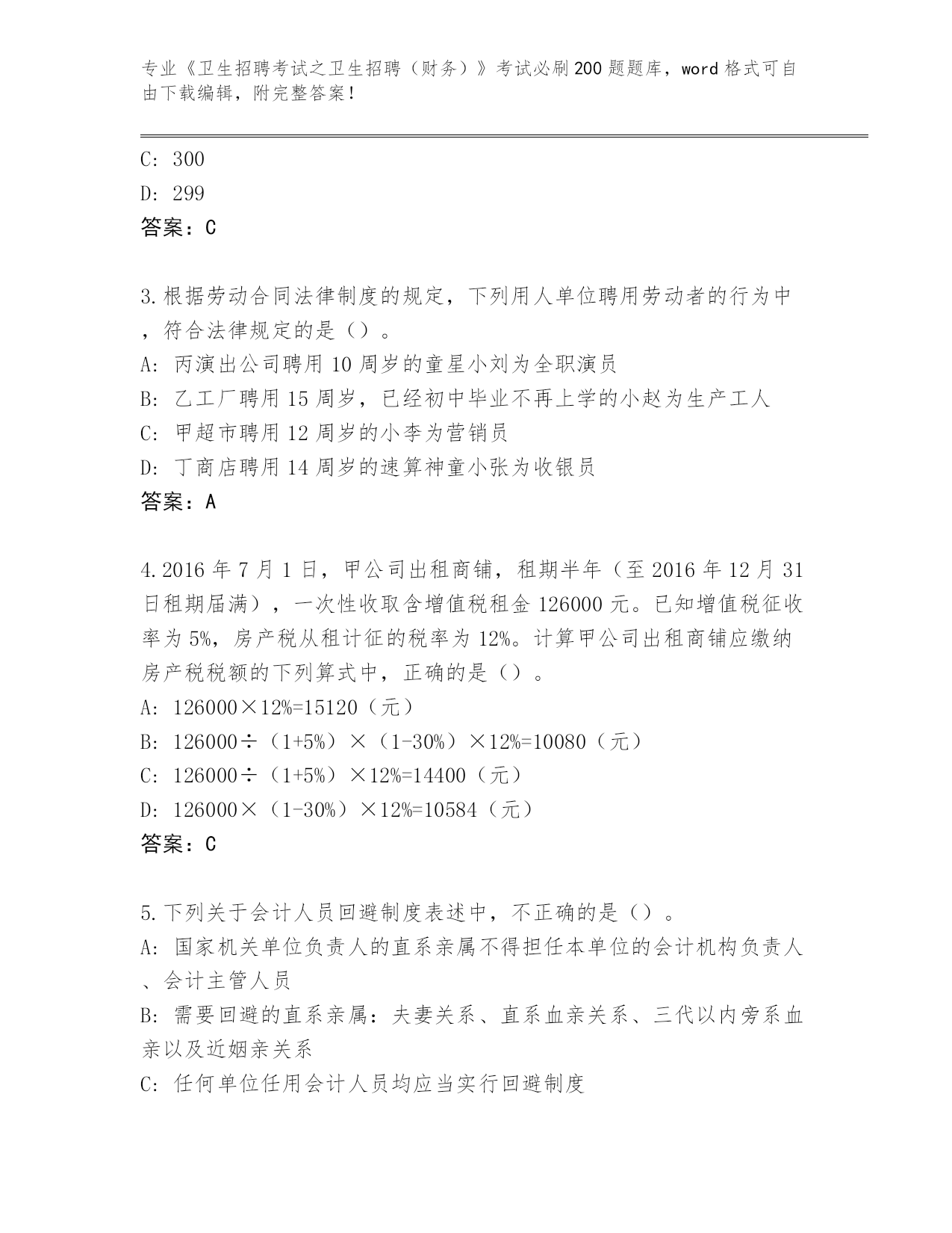 2024年山东省《卫生招聘考试之卫生招聘(财务)》考试必刷200题真题题库及答案(夺冠系列)