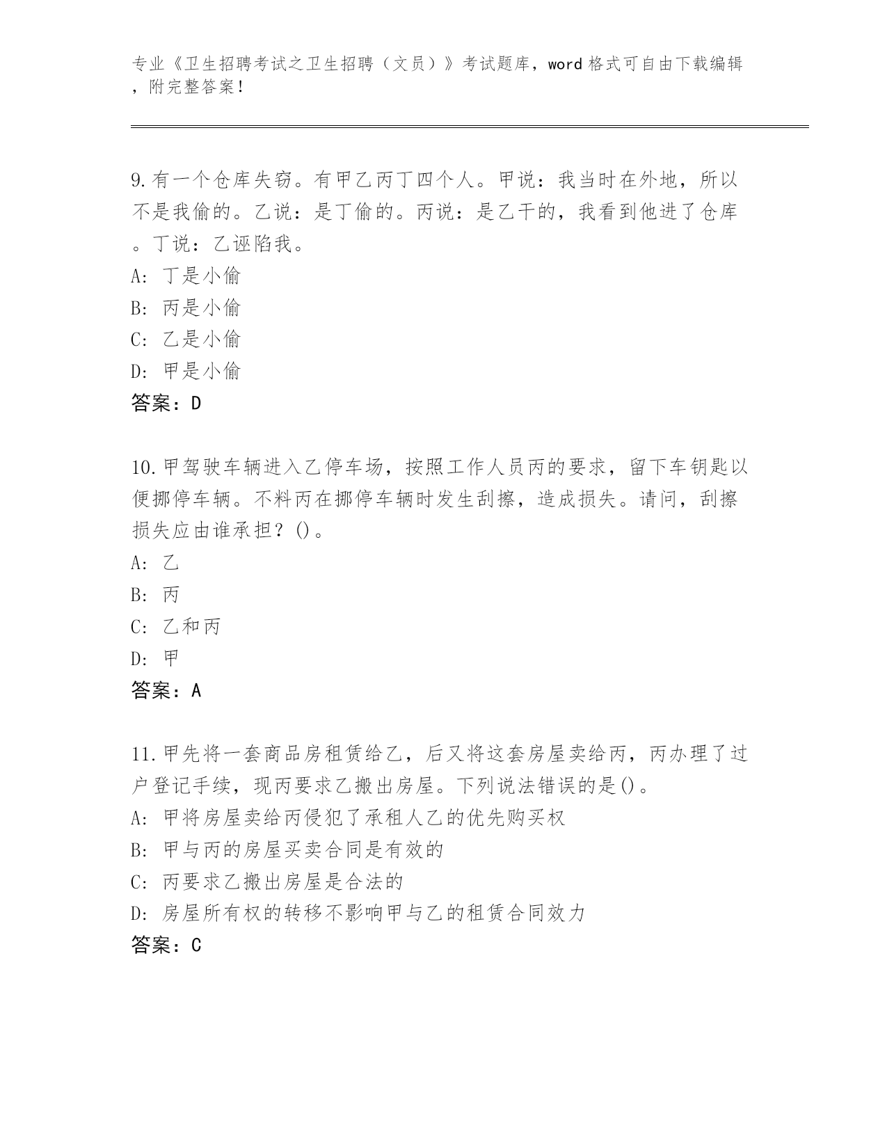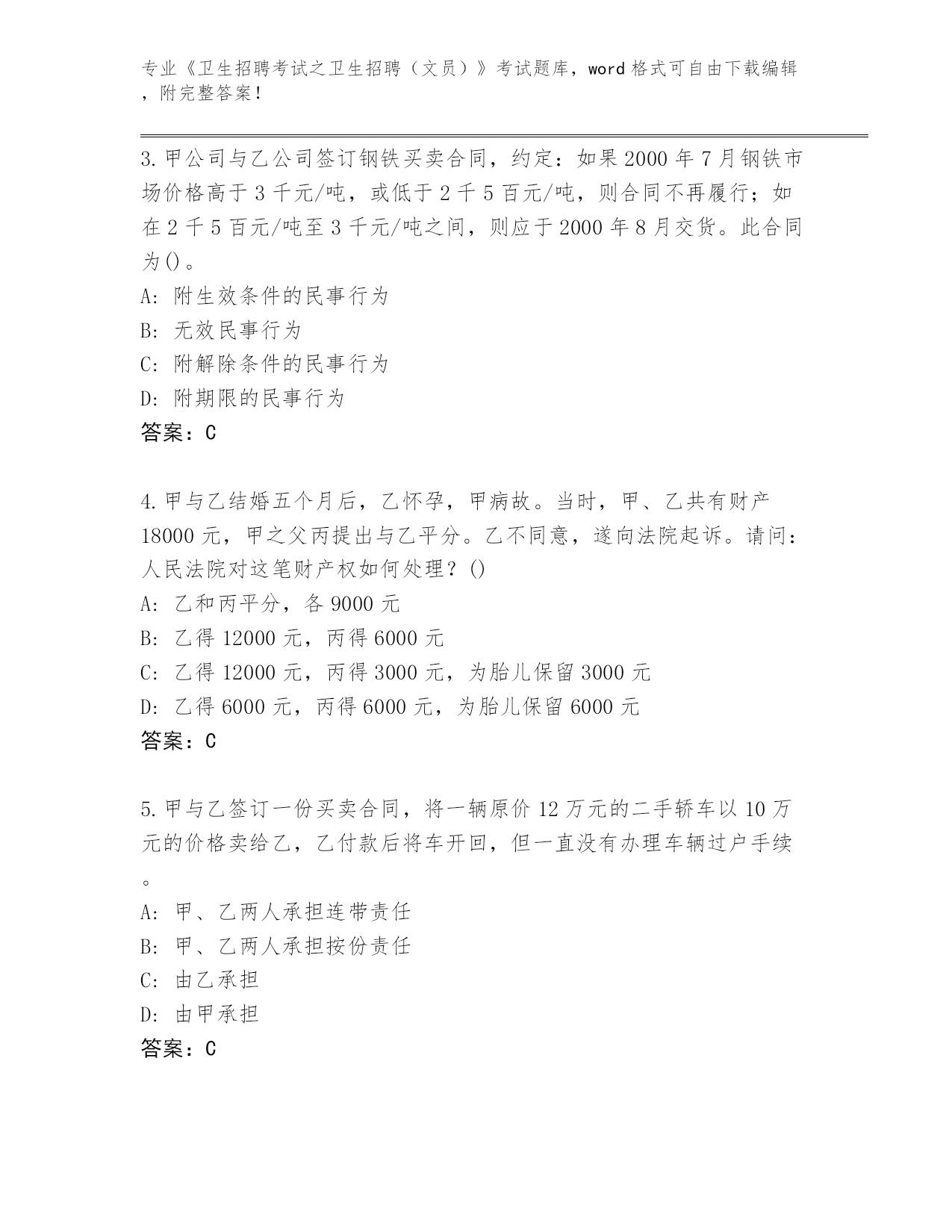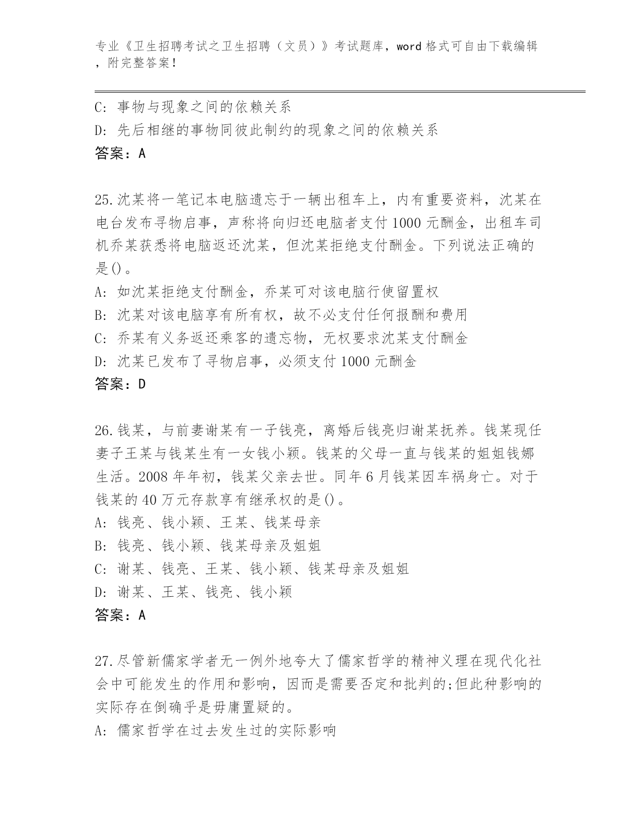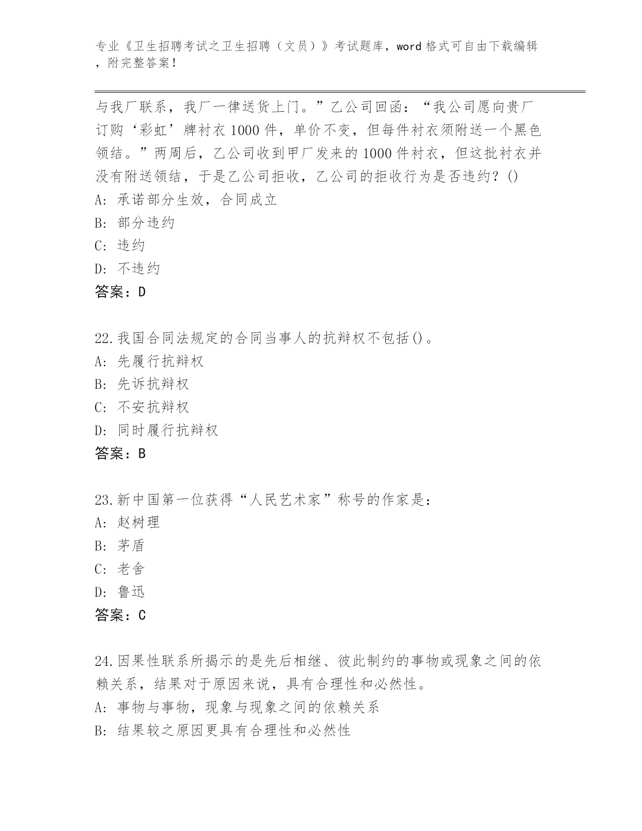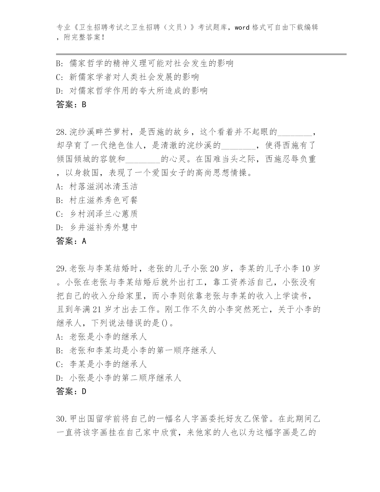 江苏省2024《卫生招聘考试之卫生招聘(文员)》考试必刷200题完整题库(突破训练)