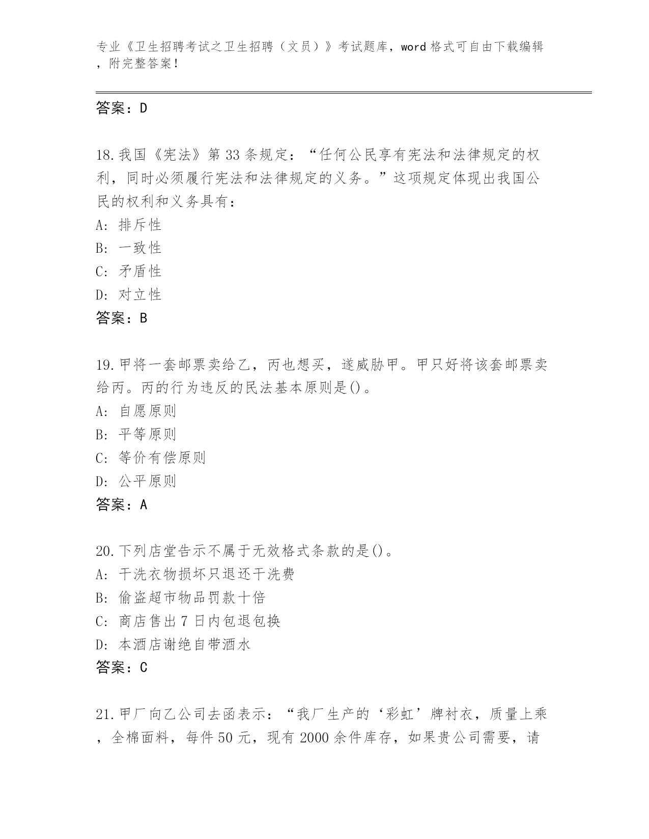 内部使用江苏省海安县《卫生招聘考试之卫生招聘(文员)》考试完整版(突破训练)