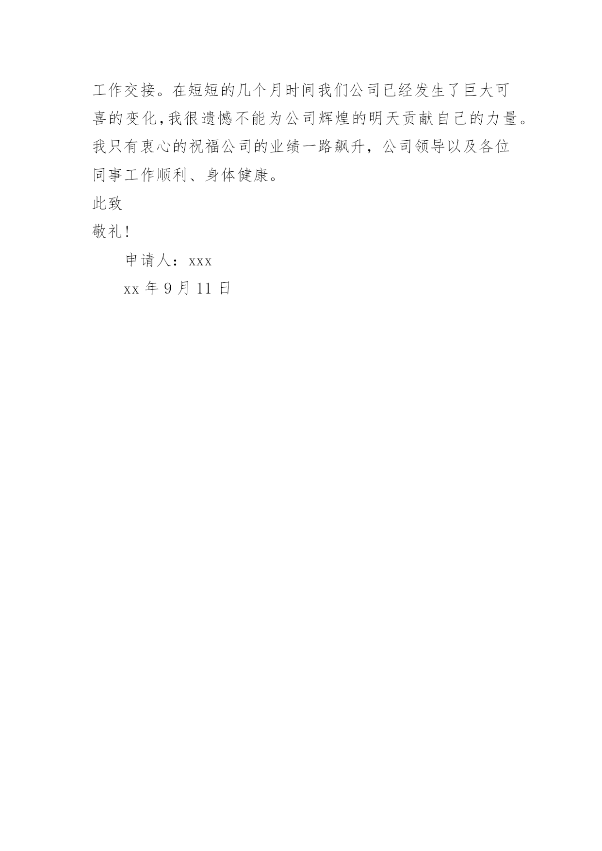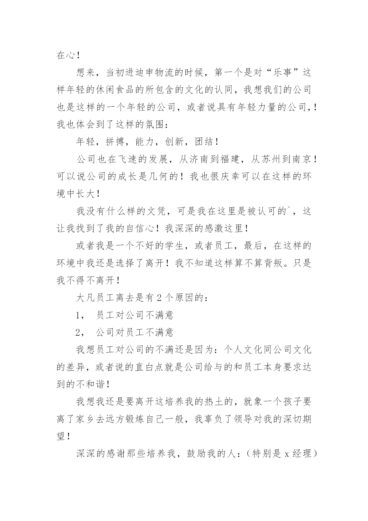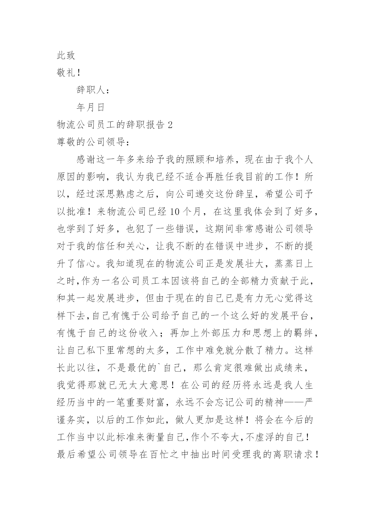 物流公司员工的辞职报告物流公司员工的辞职报告6篇随着个人的文明素养不断提升,报告的用途越来越大,报告具有双向沟通性的特点。其实写报告并没有想象中那么难,以下是小编为大家整理的物流公司员工的辞职报告,希望能够帮助到大家。物流公司员工的辞职报告1尊敬的领导:您好!我因为诸多个人原因,经过深刻冷静的思考后,郑重的向贵厂提出辞职申请。由于部门领导对我的能力的信任,使我得以加入贵公司,并且组织学习来提高个人能力,经过这两年多在贵公司的工作,使我学到了很多知识、积累了一定的经验。对此我深怀感激!感谢部门领导给我提供了一个发展舞台,并且给了我一个能与一群出色员工一起工作的机会,感谢在我们共同工作的这段时间给予我的支持与鼓励!我很满意贵公司的'工作环境,但是由于一些个人原因,我不得不向贵公司提出辞职申请。现提前一个月提交辞职申请报告,希望能在1月份正式离职。并在办完手续后搬离宿舍。对于由此为贵公司造成的不便,我深感抱歉。但同时也希望贵厂能体恤我的个人实际情况,对我的申请予以考虑并批准作顺利、身体健康。此致敬礼!辞职人:年月日物流公司员工的辞职报告2尊敬的公司领导:感谢这一年多来给予我的照顾和培养,现在由于我个人原因的影响,我认为我已经不适合再胜任我目前的工作!所以,经过深思熟虑之后,向公司递交这份辞呈,希望公司予以批准!来物流公司已经10个月,在这里我体会到了好多,也学到了好多,也犯了一些错误,这期间非常感谢公司领导对于我的信任和关心,让我不断的在错误中进步,不断的提升了信心。我知道现在的物流公司正是发展壮大,蒸蒸日上之时,作为一名公司员工本因该将自己的全部精力贡献于此,和其一起发展进步,但由于现在的自己已是有力无心觉得这样下去,自己有愧于公司给予自己的一个这么好的发展平台,有愧于自己的这份收入;再加上外部压力和思想上的羁绊,让自己私下里常想的太多,工作中难免就分散了精力。这样长此以往,不是最优的`自己,那么肯定很难做出成绩来,我觉得那就已无太大意思!在公司的经历将永远是我人生经历当中的一笔重要财富,永远不会忘记公司的精神——严谨务实,以后的工作如此,做人更加是这样!将会在今后的工作当中以此标准来衡量自己,作个不夸大,不虚浮的自己!最后希望公司领导在百忙之中抽出时间受理我的离职请求!此致敬礼!辞职人:年月日物流公司员工的辞职报告3尊敬的领导:您好!首先,非常感谢您这几个月对我的关照和信任。这段时间,我认真回顾了这几个月的工作情况,感谢领导在这几个月的关心和照顾,和同事们对我的帮助与关心。在公司的这段时间内,我学到了很多东西,无论是从专业技能还是做人的个方面都有了很大的提高,感谢公司领导对我的关心和培养,对于我此刻的离开我只能表示深深的歉意。非常感谢公司给予我这样的工作和锻炼机会。但同时,我发觉自己从事物流行业的兴趣也减退了,我不希望自己带着这种情绪工作,对不起您也对不起我自己。所以我决定辞职,请您支持。请您谅解我作出的决定,也原谅我所采取的暂别方式,我会在上交辞职报告后,这个月底离开公司,以便完成工作交接。在短短的几个月时间我们公司已经发生了巨大可喜的变化,我很遗憾不能为公司辉煌的明天贡献自己的力量。我只有衷心的祝福公司的业绩一路飙升,公司领导以及各位同事工作顺利、身体健康。此致敬礼!辞职人:20xx年xx月xx日20xx年物流公司员工辞职报告尊敬的xxx领导:我很遗憾自己在这个时候向公司正式提出辞职。来到xx物流中心已经接近半年了,正是在这里我开始踏上了社会,完成了自己从一个学生到社会人的转变。这里平等的人际关系和开明的工作作风,让我能开心的工作,开心的学习。但是因为离家比较远,父母近期身体都不好,家里没有人照顾,作为一个儿子我有侍奉双亲的责任,这两天我虽然很努力让自己专心工作,但是心却无时无刻不牵挂家里,我现在的状态确实已经无法胜任工作。正是考虑到这些因素,我郑重向公司提出辞职,希望领导能够批准,另外离开前我也会认真做好现有的工作,把未完成的工作做一下整理,以保证工作的顺利的交接。我真心的.感谢公司领导一直以来对我的信任,感谢身边同事对我的关心和帮助,很荣幸自己成为过公司的一员,我确信在公司的这段工作和学习的经历和经验将成为我一生宝贵的财富。祝公司业务蒸蒸日上,取得更大的成功!此致敬礼!辞职人:日期:物流公司员工的辞职报告4x总:您好!不知不觉在公司也呆了快一年了,(去年9月进公司),在卢经理和各位领导的栽培和信任下,我从一个底层跟车的,到现在能够出来共同合作管理福建dc!这样的深情,我铭记在心!想来,当初进迪申物流的时候,第一个是对“乐事”这样年轻的休闲食品的所包含的文化的认同,我想我们的公司也是这样的一个年轻的公司,或者说具有年轻力量的公司,!我也体会到了这样的氛围:年轻,拼搏,能力,创新,团结!公司也在飞速的发展,从济南到福建,