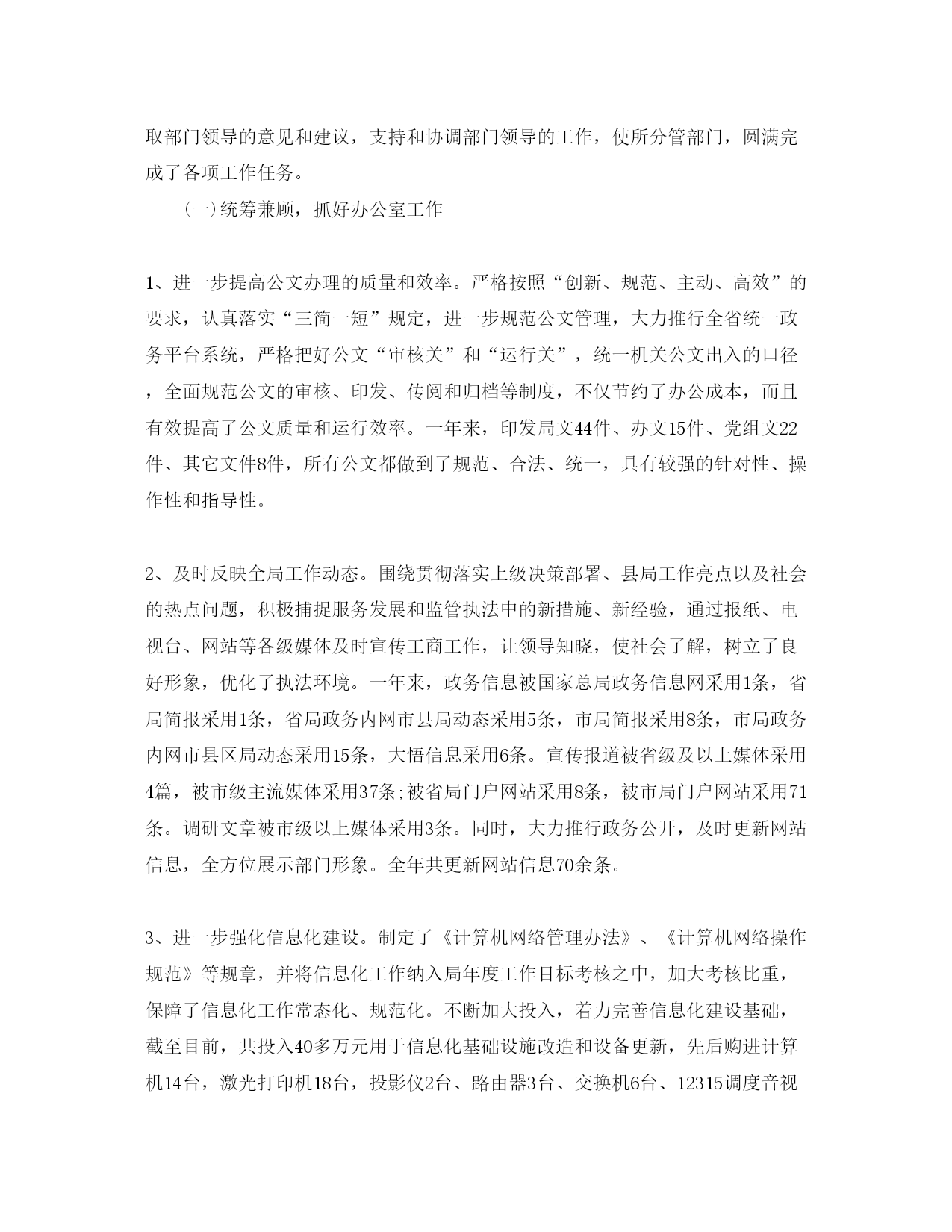 此资料由网络收集而来,如有侵权请告知上传者立即删除。资料共分享,我们负责传递知识。公务员的考核表个人总结考核表个人总结是很难写的,那公务员考核表个人总结怎么写呢?下面小编就和大家分享公务员考核表个人总结,来欣赏一下吧。公务员考核表个人总结(一)一、勤学善思、不断提高综合素质作为一名副职,我深知要想协助好“一把手”的工作,自身必须具备较高的政治素质和业务能力,才能完成上级下达的各项任务。一年来,我始终把提高思想政治素质和党性修养,当作一种责任,当作提高自己工作能力、领导水平的需求。除了按时参加单位组织的集体学习外,利用业余时间系统地学习中国特色社会主义理论、xx届四中五中全会精神、各项廉政规定等,深刻理解其精神实质,努力提高自身的政策理论水平,并结合思想工作实际,加强党性锻炼,不断提升思想境界,增强了政治鉴别力和政治敏锐性,做到在政治上思想上行动上与党中央和县局党组保持高度一致。特别是在“三严三实”活动中,我通过认真学习各级领导讲话精神,深刻查摆自身在思想观念和工作作风方面存在的问题,进一步解放了思想、更新了观念,转变了作风,为做好各项分管工作奠定了良好的思想基础。在业务学习我一直常抓不懈,做到不断更新知识,不断提高技能,努力在工作实践中思考、总结、提高,以适应税收科学化、精细化、信息化管理的需要。总之,通过努力学习,使自身的政治理论水平和业务技能有了提高,做到了学以致用,提高了运用理论指导实际工作的水平。二、尽心履职、协助“一把手”做好分管工作按照局党组分工,我分管局机关、办公室(信息中心、后勤中心、县局档案室)、市场(合同)规范管理股。挂宣化工商所、吕王工商所。在工作中,我从实际出发,针对各部门工作任务,认真负责地做好分管部门的工作,注重在具体工作中听取部门领导的意见和建议,支持和协调部门领导的工作,使所分管部门,圆满完成了各项工作任务。(一)统筹兼顾,抓好办公室工作1、进一步提高公文办理的质量和效率。严格按照“创新、规范、主动、高效”的要求,认真落实“三简一短”规定,进一步规范公文管理,大力推行全省统一政务平台系统,严格把好公文“审核关”和“运行关”,统一机关公文出入的口径,全面规范公文的审核、印发、传阅和归档等制度,不仅节约了办公成本,而且有效提高了公文质量和运行效率。一年来,印发局文44件、办文15件、党组文22件、其它文件8件,所有公文都做到了规范、合法、统一,具有较强的针对性、操作性和指导性。2、及时反映全局工作动态。围绕贯彻落实上级决策部署、县局工作亮点以及社会的热点问题,积极捕捉服务发展和监管执法中的新措施、新经验,通过报纸、电视台、网站等各级媒体及时宣传工商工作,让领导知晓,使社会了解,树立了良好形象,优化了执法环境。一年来,政务信息被国家总局政务信息网采用1条,省局简报采用1条,省局政务内网市县局动态采用5条,市局简报采用8条,市局政务内网市县区局动态采用15条,大悟信息采用6条。宣传报道被省级及以上媒体采用4篇,被市级主流媒体采用37条;被省局门户网站采用8条,被市局门户网站采用71条。调研文章被市级以上媒体采用3条。同时,大力推行政务公开,及时更新网站信息,全方位展示部门形象。全年共更新网站信息70余条。3、进一步强化信息化建设。制定了《计算机网络管理办法》、《计算机网络操作规范》等规章,并将信息化工作纳入局年度工作目标考核之中,加大考核比重,保障了信息化工作常态化、规范化。不断加大投入,着力完善信息化建设基础,截至目前,共投入40多万元用于信息化基础设施改造和设备更新,先后购进计算机14台,激光打印机18台,投影仪2台、路由器3台、交换机6台、12315调度音视频系统12套,改造3个工商所网络线路,为各项工作的顺利开展提供了基础设备保障。结合系统工作实际,不断强化信息化人才培养和队伍建设,切实提高信息中心工作人员的专业技术水平。同时,积极应用业务系统,扎实推进登记注册全程电子化,全面推广应用省工商局企业登记材料智能自助系统,为市场主体信用信息公示提供技术支撑,大力推进行政执法案件公示工作,切实加强网站建设,搞好系统维护,确保业务系统运行正常。4、切实做好车辆管理和后勤保障工作。进一步完善公务用车及驾驶员管理办法,落实公务车辆事故高额保险和公务用车派车制度,推行公务车辆加油集中管理制度,不断加强驾驶人员和车辆管理,确保公务用车和行车安全,降低了公务用车费用,维护了系统安全稳定。全年系统内没有发生交通安全事故。同时,切实加强食堂、水电和机关大楼环境卫生等管理工作,确保机关食堂、水电正常运转,严格落实一季一评机制,不断提高服务质量,努力营造一个安全、卫生、舒适的生活和工作环境。5、努力做好“平安系统”创建工作。加强机关内部的安全管理,不断加强人防、物防和技防建设,对系统治安情况实行