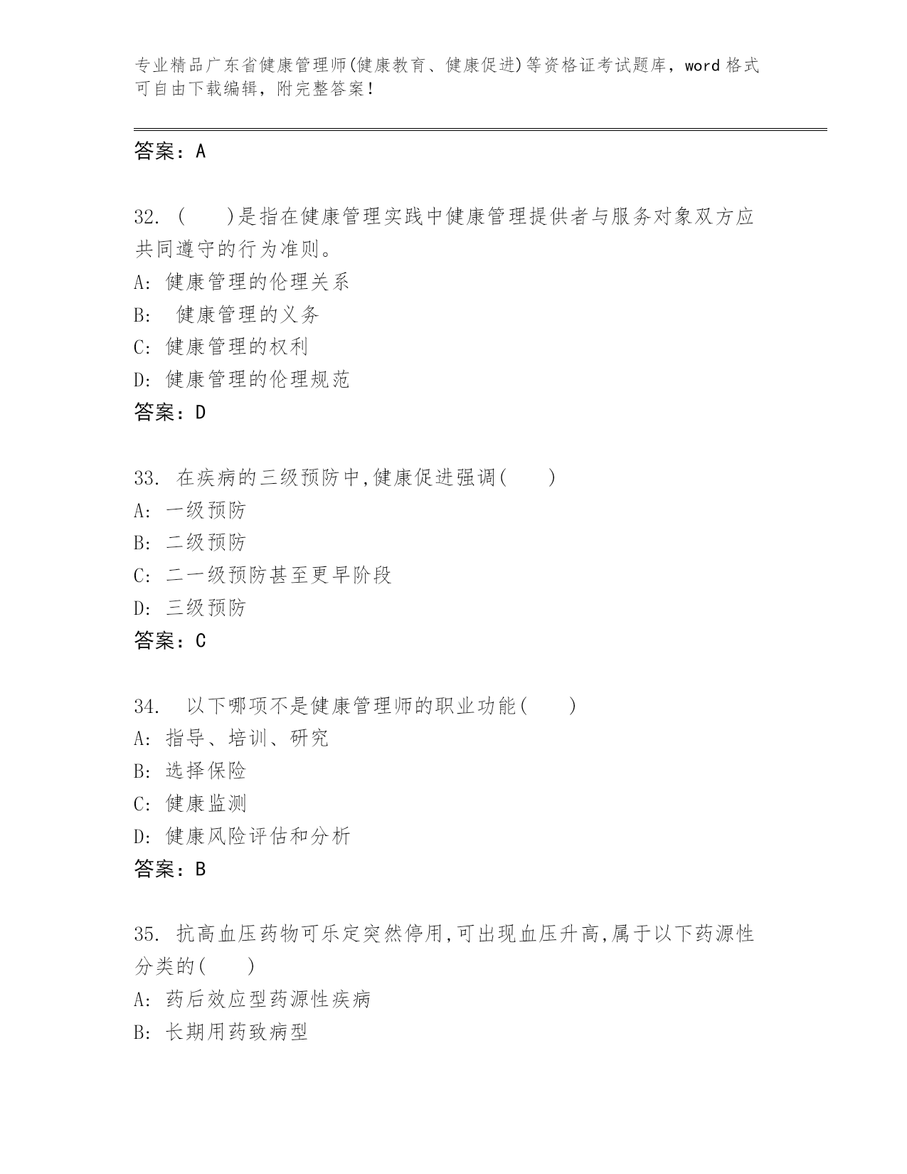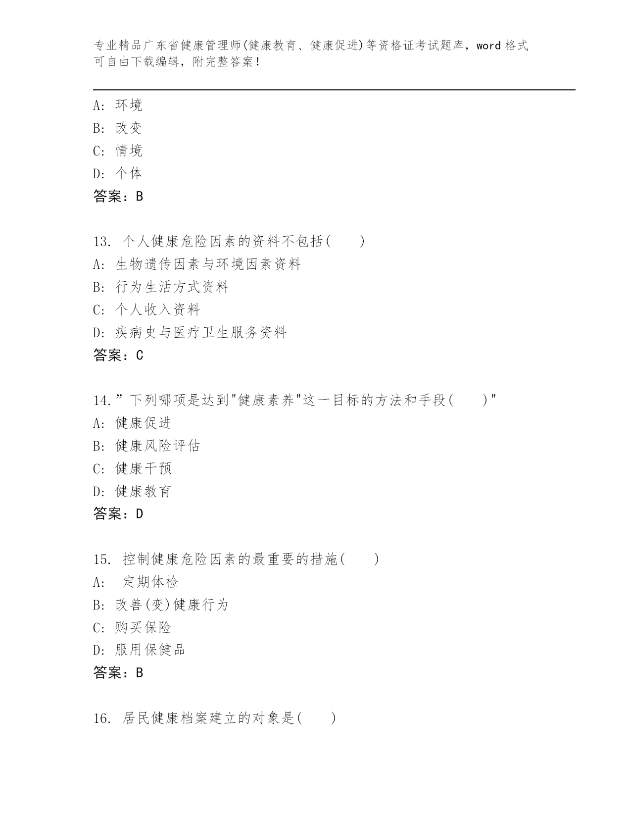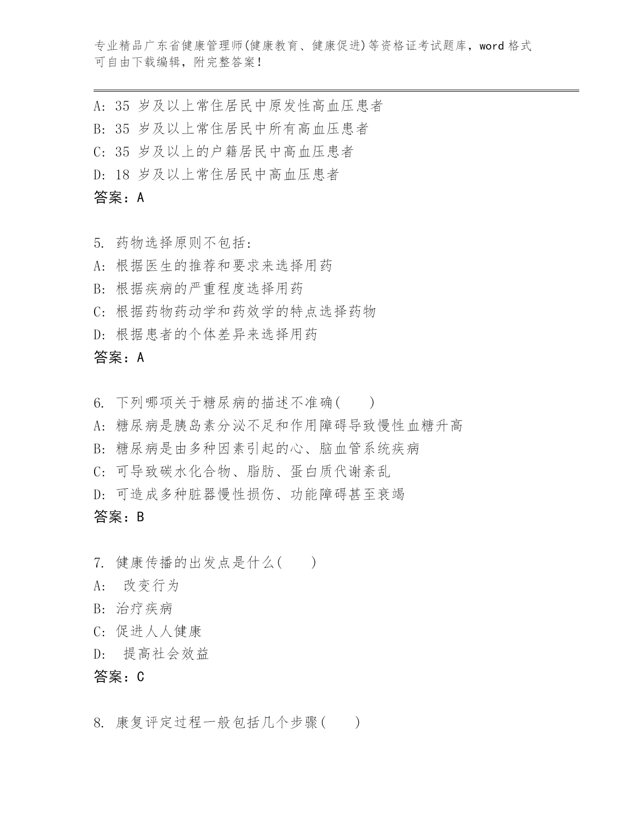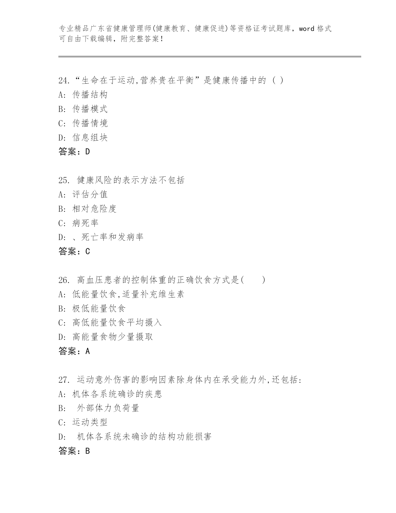 最新广东省健康管理师(健康教育、健康促进)等资格证考试优选题库含答案(综合卷).docx