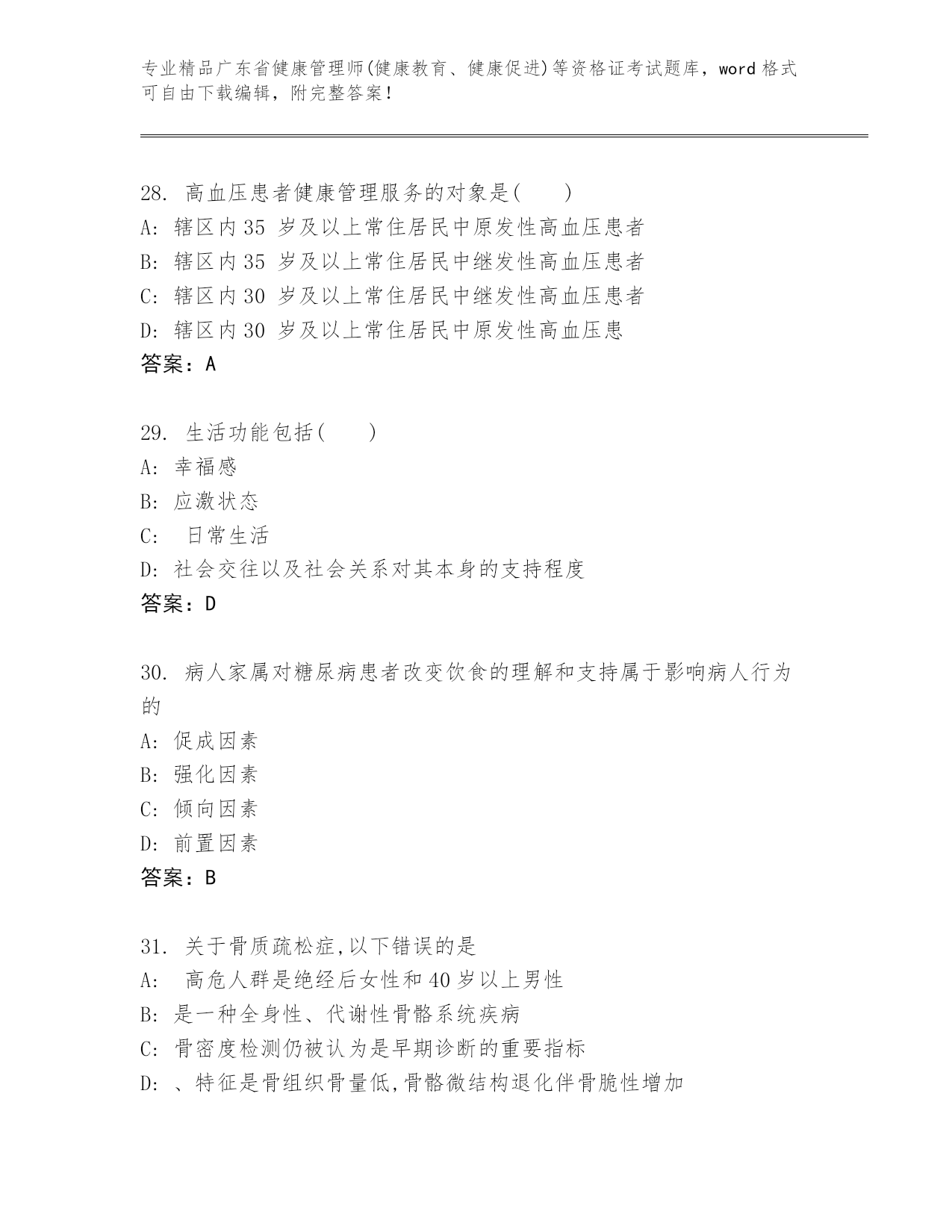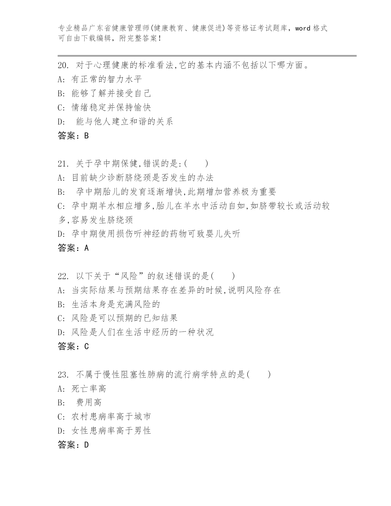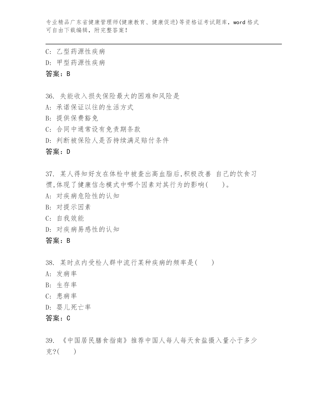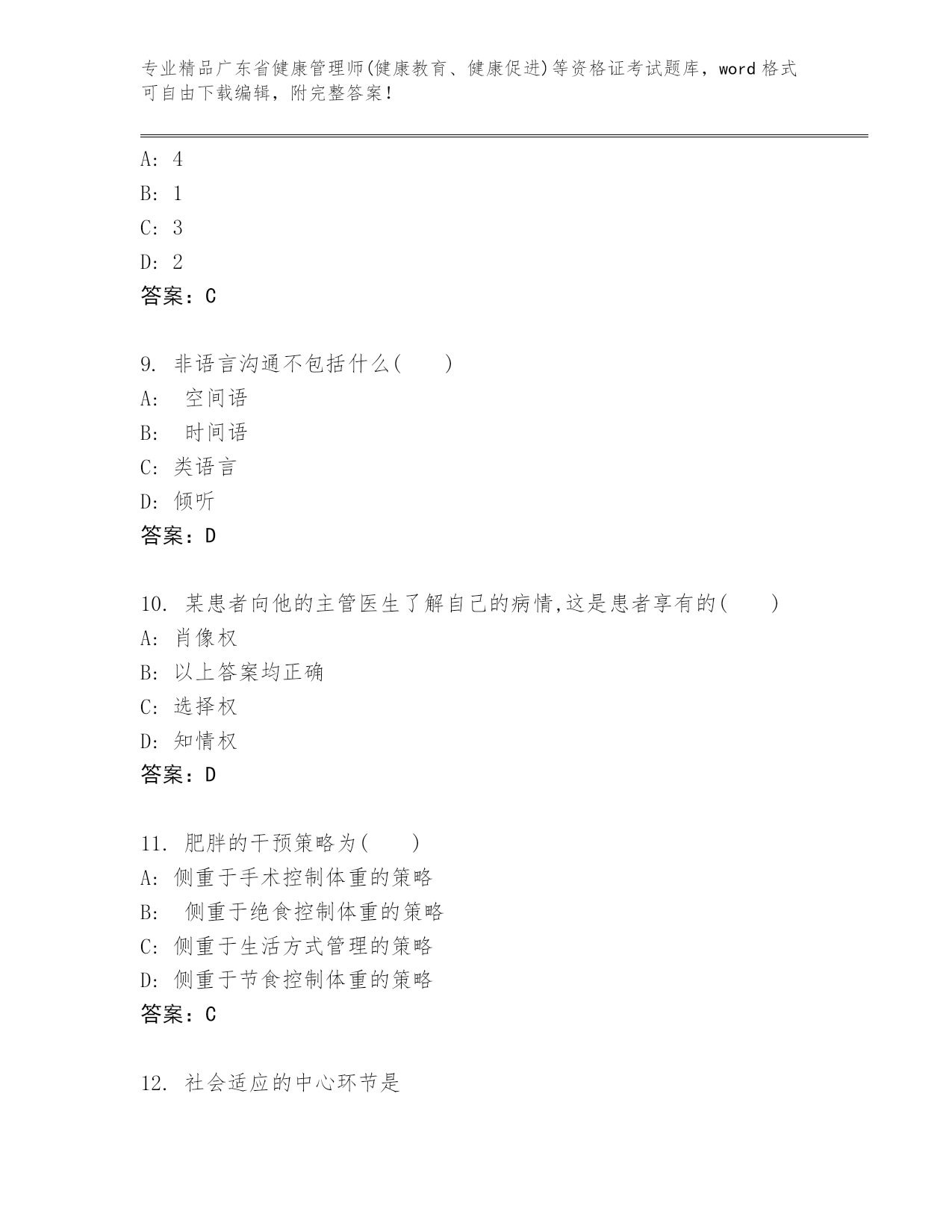 最新广东省健康管理师(健康教育、健康促进)等资格证考试优选题库含答案(综合卷).docx