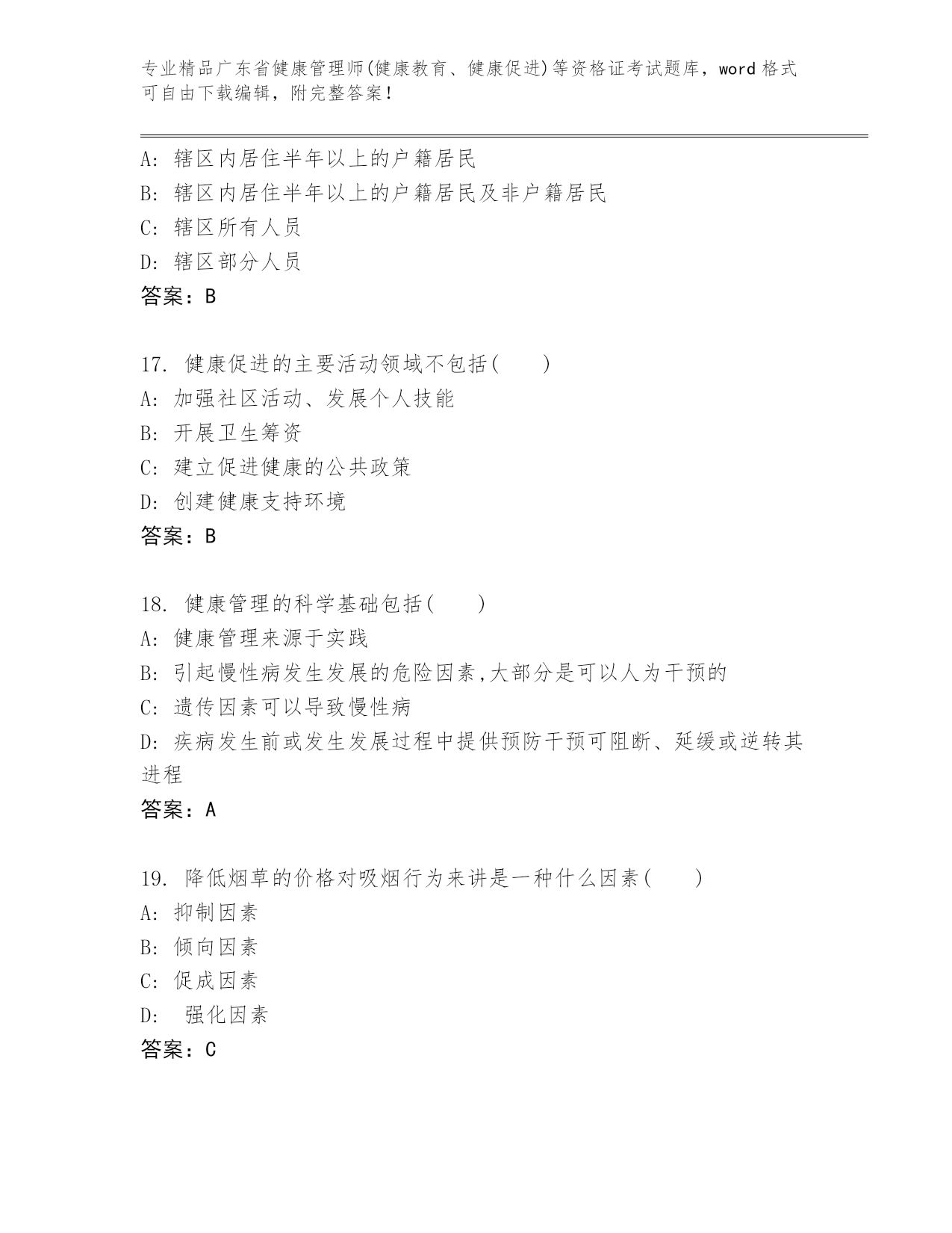 最新广东省健康管理师(健康教育、健康促进)等资格证考试优选题库含答案(综合卷)