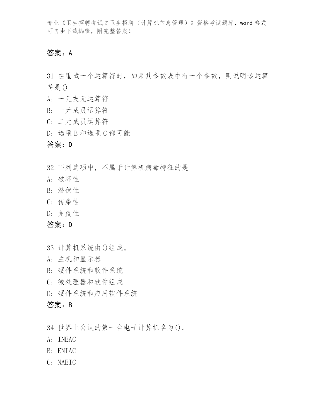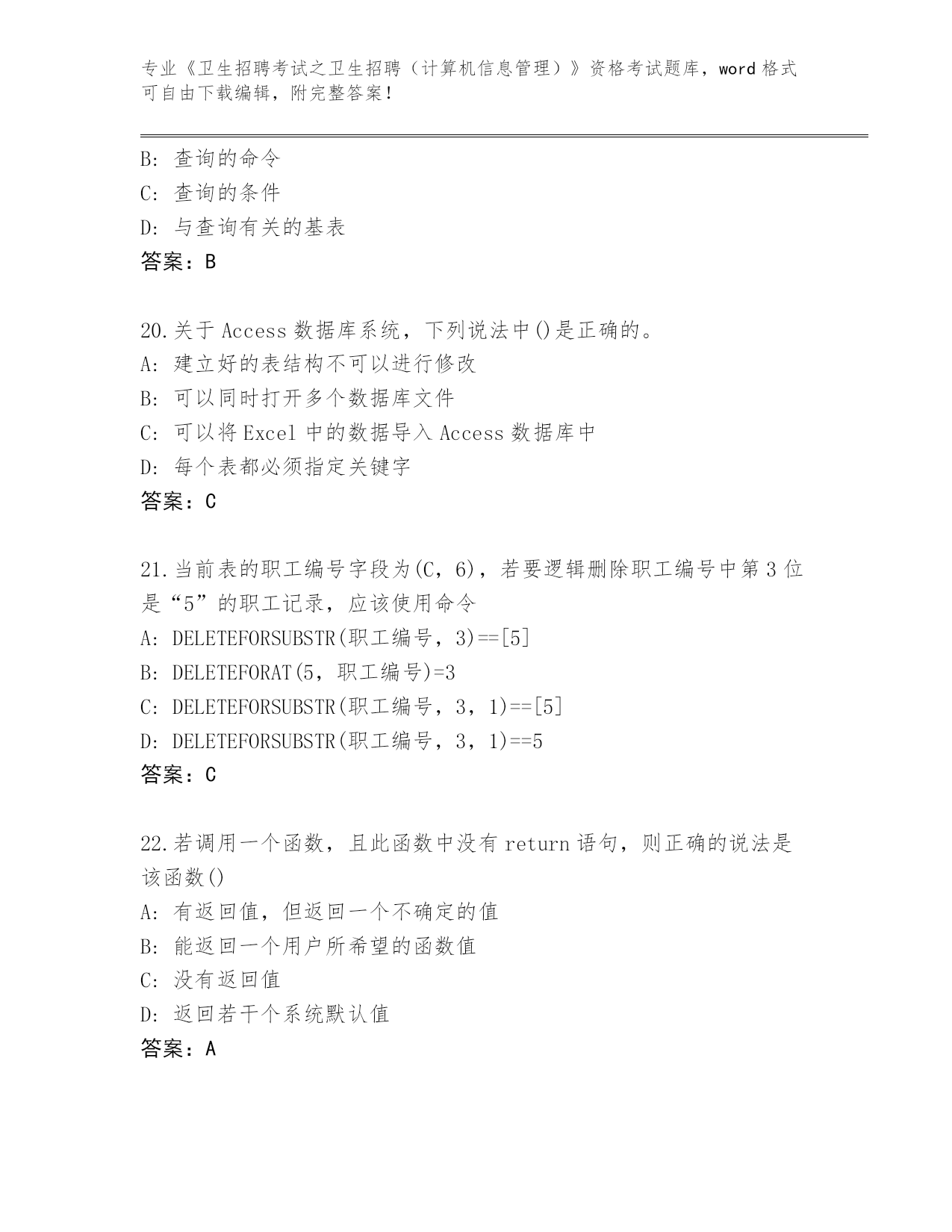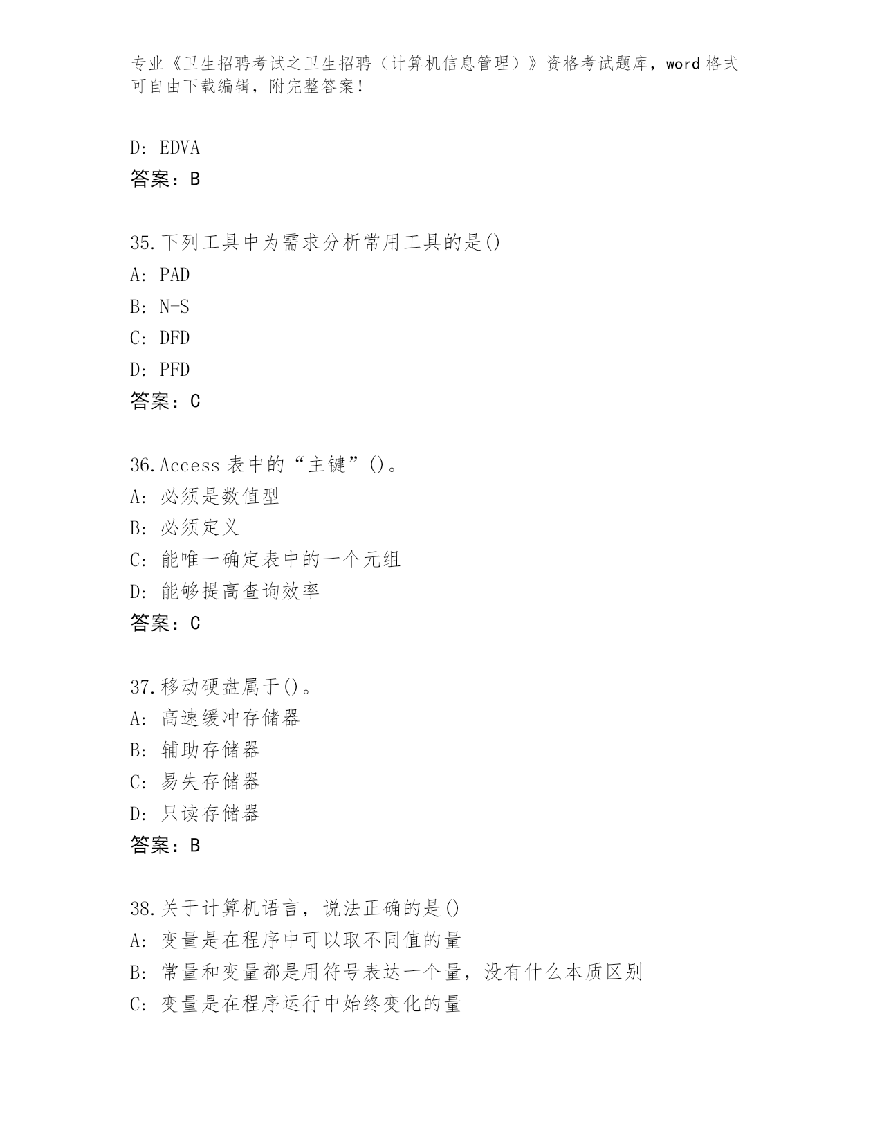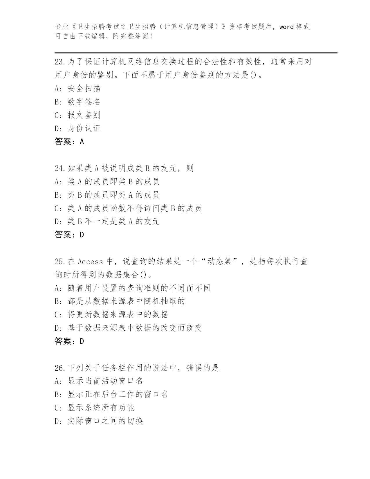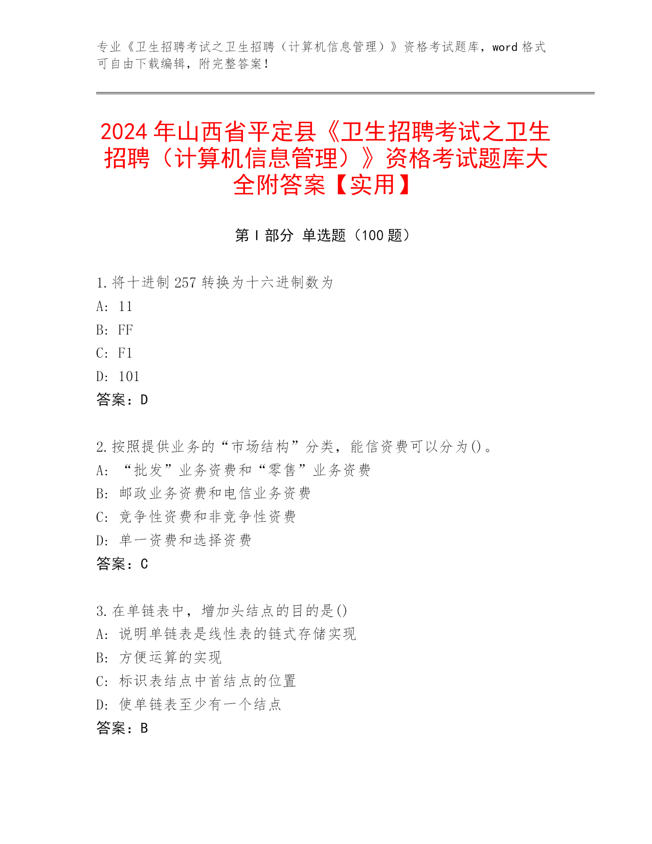 山西省平定县内部使用《卫生招聘考试之卫生招聘(计算机信息管理)》资格考试完整题库附答案(实用)