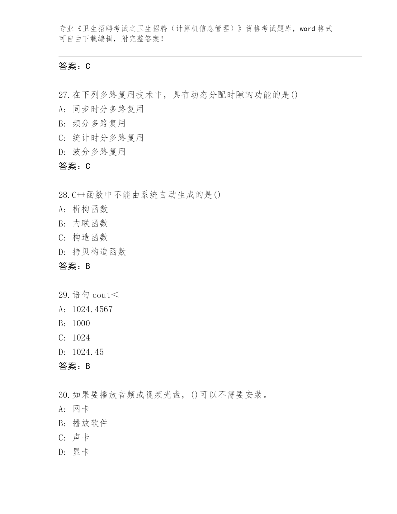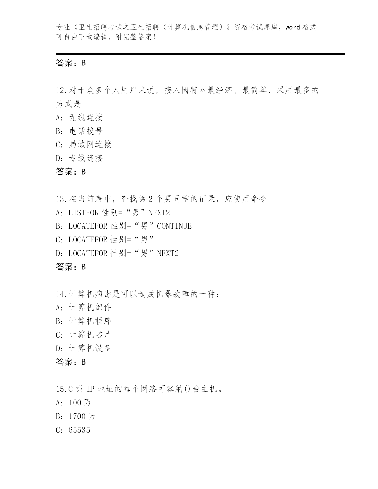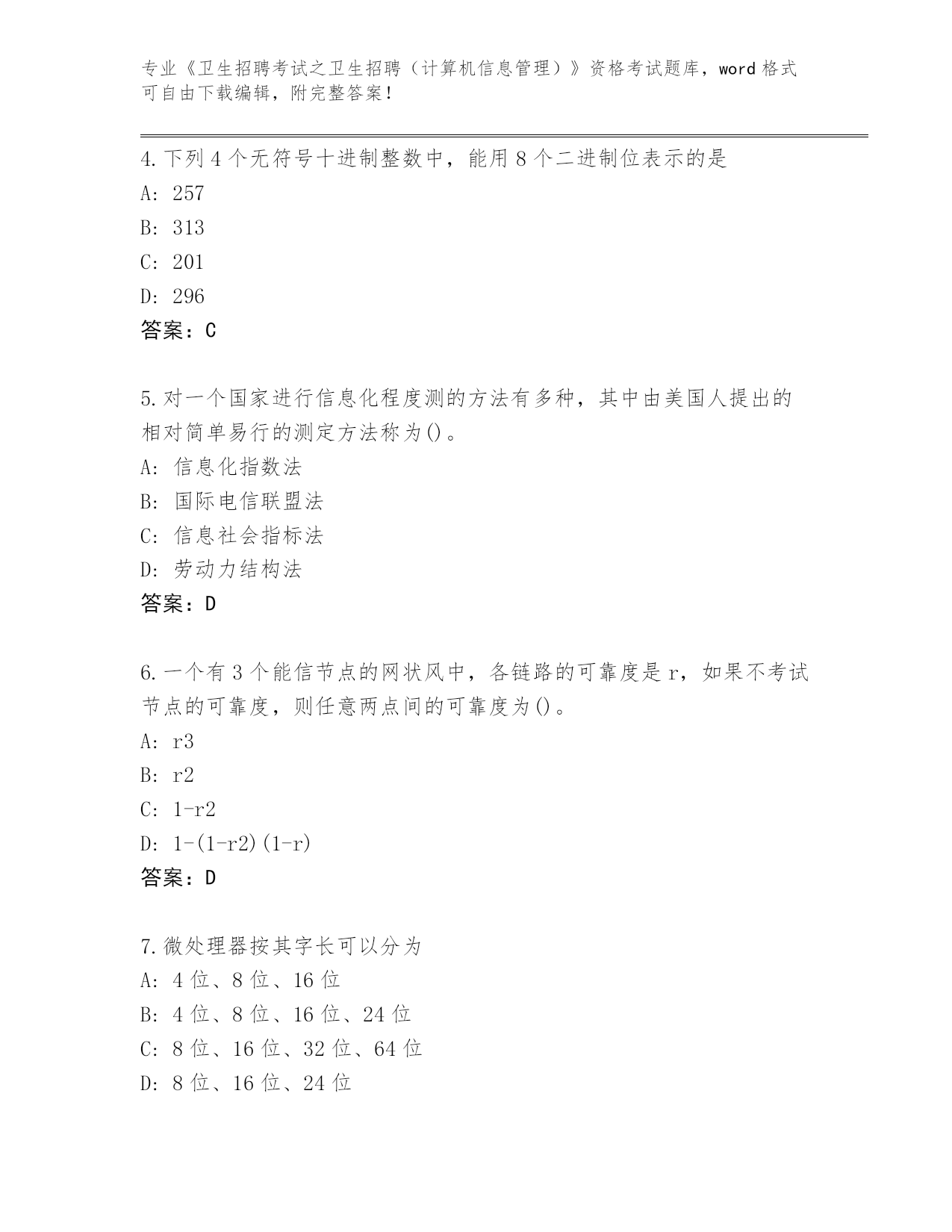 山西省平定县内部使用《卫生招聘考试之卫生招聘(计算机信息管理)》考试大全加答案下载