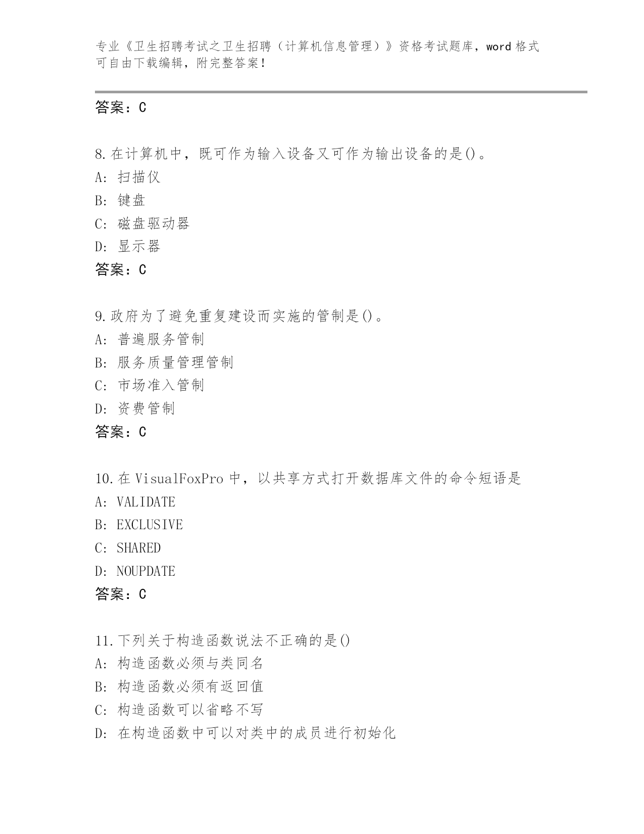 山西省2024年《卫生招聘考试之卫生招聘(计算机信息管理)》资格考试大全带答案