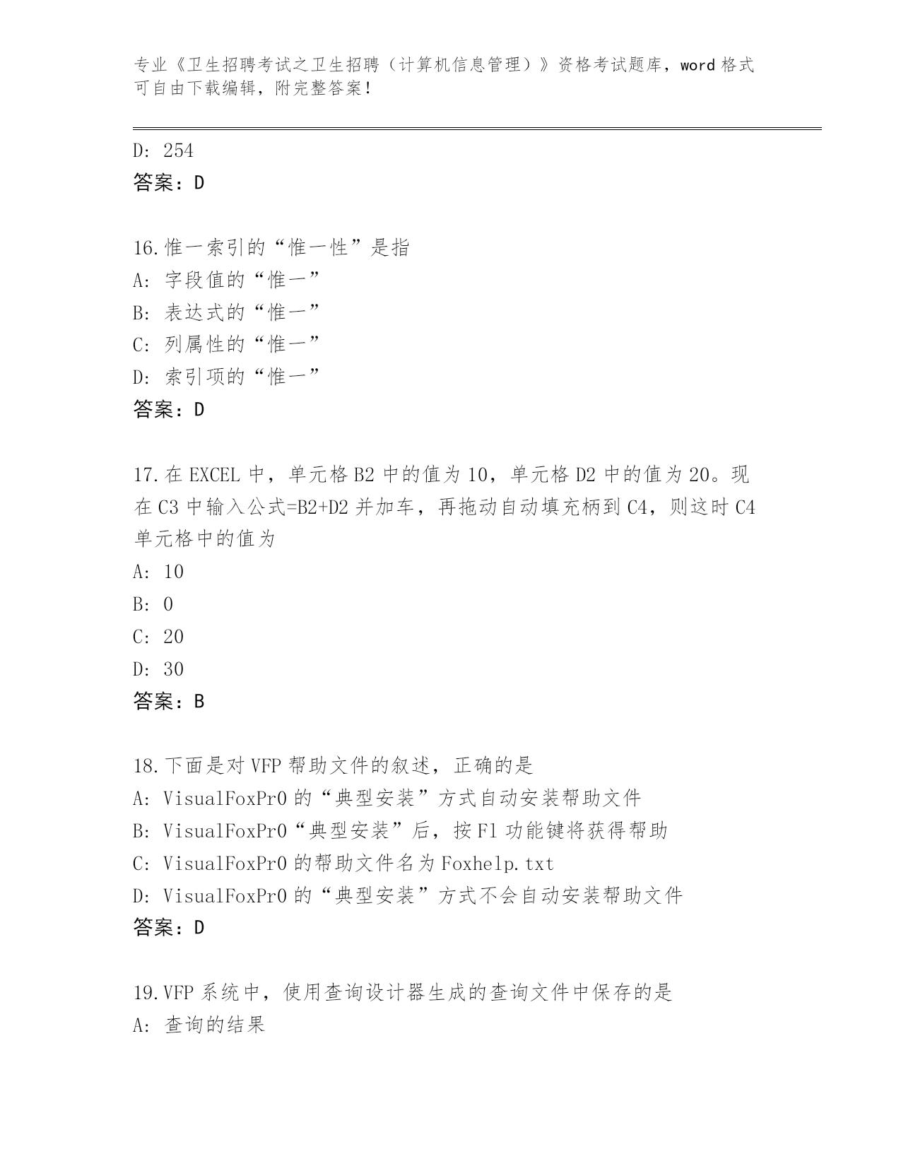 河北省阜城县《卫生招聘考试之卫生招聘(计算机信息管理)》资格考试大全附答案【实用】