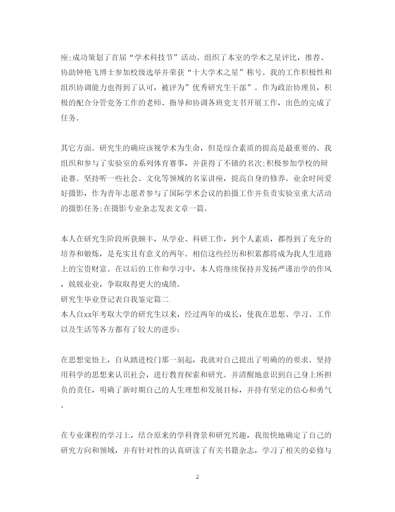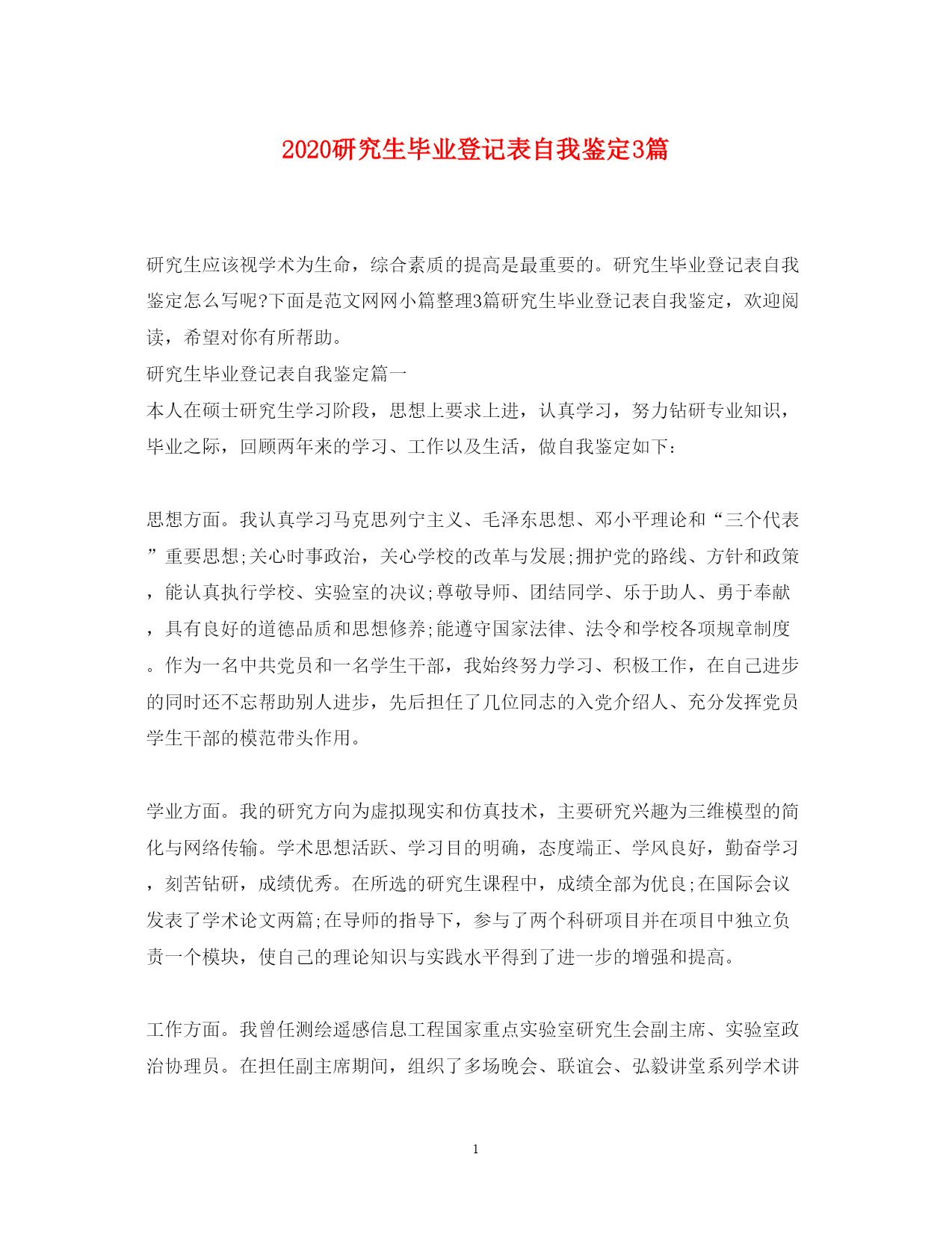 此资料由网络收集而来,如有侵权请告知上传者立即删除。资料共分享,我们负责传递知识。PAGEPAGE42020研究生毕业登记表自我鉴定3篇研究生应该视学术为生命,综合素质的提高是最重要的。研究生毕业登记表自我鉴定怎么写呢?下面是范文网网小篇整理3篇研究生毕业登记表自我鉴定,欢迎阅读,希望对你有所帮助。研究生毕业登记表自我鉴定篇一本人在硕士研究生学习阶段,思想上要求上进,认真学习,努力钻研专业知识,毕业之际,回顾两年来的学习、工作以及生活,做自我鉴定如下:思想方面。我认真学习马克思列宁主义、毛泽东思想、邓小平理论和“三个代表”重要思想;关心时事政治,关心学校的改革与发展;拥护党的路线、方针和政策,能认真执行学校、实验室的决议;尊敬导师、团结同学、乐于助人、勇于奉献,具有良好的道德品质和思想修养;能遵守国家法律、法令和学校各项规章制度。作为一名中共党员和一名学生干部,我始终努力学习、积极工作,在自己进步的同时还不忘帮助别人进步,先后担任了几位同志的入党介绍人、充分发挥党员学生干部的模范带头作用。学业方面。我的研究方向为虚拟现实和仿真技术,主要研究兴趣为三维模型的简化与网络传输。学术思想活跃、学习目的明确,态度端正、学风良好,勤奋学习,刻苦钻研,成绩优秀。在所选的研究生课程中,成绩全部为优良;在国际会议发表了学术论文两篇;在导师的指导下,参与了两个科研项目并在项目中独立负责一个模块,使自己的理论知识与实践水平得到了进一步的增强和提高。工作方面。我曾任测绘遥感信息工程国家重点实验室研究生会副主席、实验室政治协理员。在担任副主席期间,组织了多场晚会、联谊会、弘毅讲堂系列学术讲座;成功策划了首届“学术科技节”活动、组织了本室的学术之星评比,推荐、协助钟艳飞博士参加校级选举并荣获“十大学术之星”称号。我的工作积极性和组织协调能力也得到了认可,被评为”优秀研究生干部”。作为政治协理员,积极的配合分管党务工作的老师、指导和协调各班党支书开展工作,出色的完成了任务。其它方面。研究生的确应该视学术为生命,但是综合素质的提高是最重要的。我组织和参与了实验室的系列体育赛事,并获得了不错的名次;积极参加学校的辩论赛。坚持听一些社会、文化等领域的名家讲座,提高自身的修养。业余时间爱好摄影,作为青年志愿者参与了国际学术会议的拍摄工作并负责实验室重大活动的摄影任务;在摄影专业杂志发表文章一篇。本人在研究生阶段所获颇丰,从学业、科研工作,到个人素质,都得到了充分的培养和锻炼,是充实且有意义的两年。相信这些经历和积累都将成为我人生道路上的宝贵财富。在以后的工作和学习中,本人将继续保持并发扬严谨治学的作风,兢兢业业,争取取得更大的成绩。研究生毕业登记表自我鉴定篇二本人自xx年考取大学的研究生以来,经过两年的成长,使我在思想、学习、工作以及生活等各方都有了较大的进步:在思想觉悟上,自从踏进校门那一刻起,我就对自己提出了明确的的要求。坚持用科学的思想来认识社会,进行教育探索和研究。并清醒地意识到自己身上所担负的责任,明确了新时期自己的人生理想和发展目标,并持有坚定的信心和勇气。在专业课程的学习上,结合原来的学科背景和研究兴趣,我很快地确定了自己的研究方向和领域,并有针对性的认真研读了有关书籍杂志,学习了相关的必修与选修课程。为自己的科研工作打下扎实基础,在此期间,各门课程都取得了优异的成绩。在期末综合成绩排名中名列前茅。与此同时,我还利用课余时间参阅了其他人文学科的书籍,开阔了研究的视野,弥补了自己知识上的不足。在科研能力上,尽管涉入教育领域的时间很短,但凭着一颗积极向上心和严谨求实的态度。在导师的指导下,通过自身不断的努力,以及与师长同学间的探讨交流,我还是取得了一些比较满意的成果。提高了查阅文献资料的能力和科研方法的能力。锤炼了书面表达的能力和独立思考判断能力,在一些省级刊物公开发表了3篇学术论文。这对我今后的学习和科研树立了信心。在日常生活中,为人处世诚恳踏实,待人接物和善热情,生活朴实节俭,与同学之间关系融洽。在工作方面,抱着认真负责的态度和为同学服务的心态,不仅为同学带来方便也提高了自身组织管理能力和表达能力。在课余时间积极发展自己的业余爱好和兴趣,参加了不少社会活动,为个人综合素质的全面发展打下基础。研究生毕业登记表自我鉴定篇三从工作岗位回到校园,转眼三年已经过去。回首在学校攻读通信工程硕士期间的学习和生活,我没有因为大学宽松自由的学习环境而虚掷光阴,始终勤勤恳恳、兢兢业业地努力提高自己的专业素质和能力。在课业上,我认真学习培养计划上的课程,均都取得了很好的成绩,获得了当年的优秀研究生二等奖学金。之后在导师的指引下独立完成了开题工作,然后深入地研究了滤波器和电流模式,将理论知识和工作经验联系起来,形成了更加完整