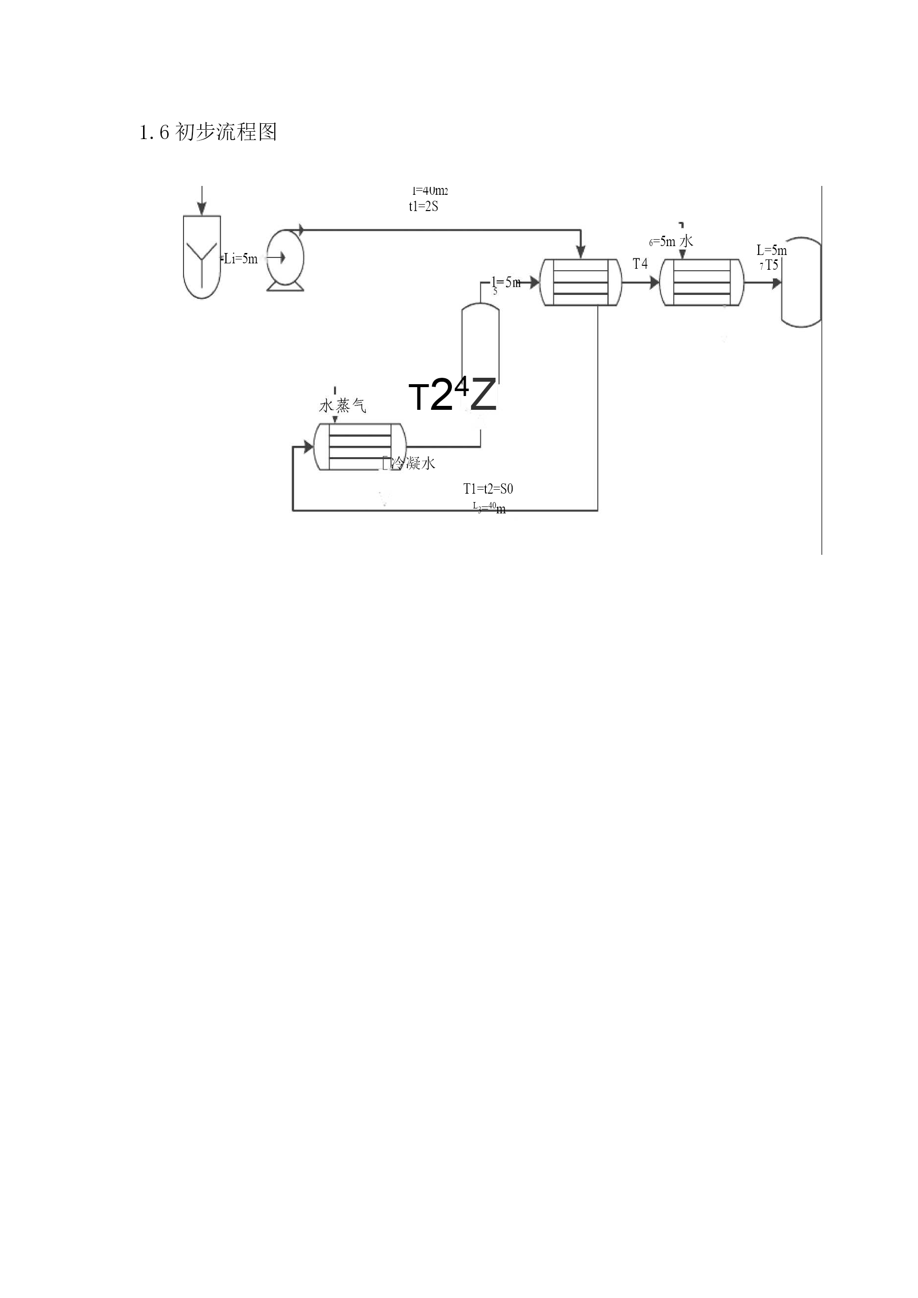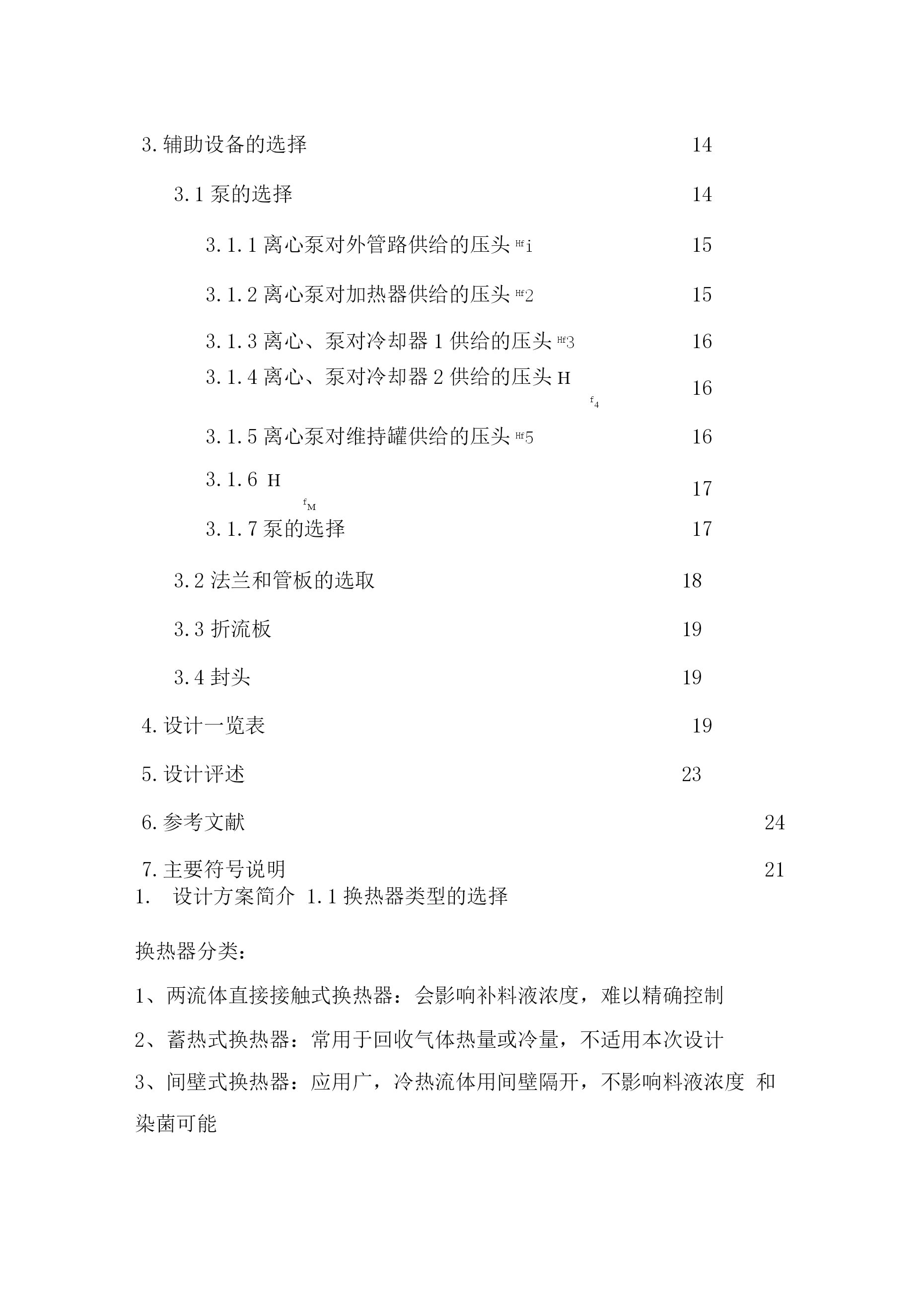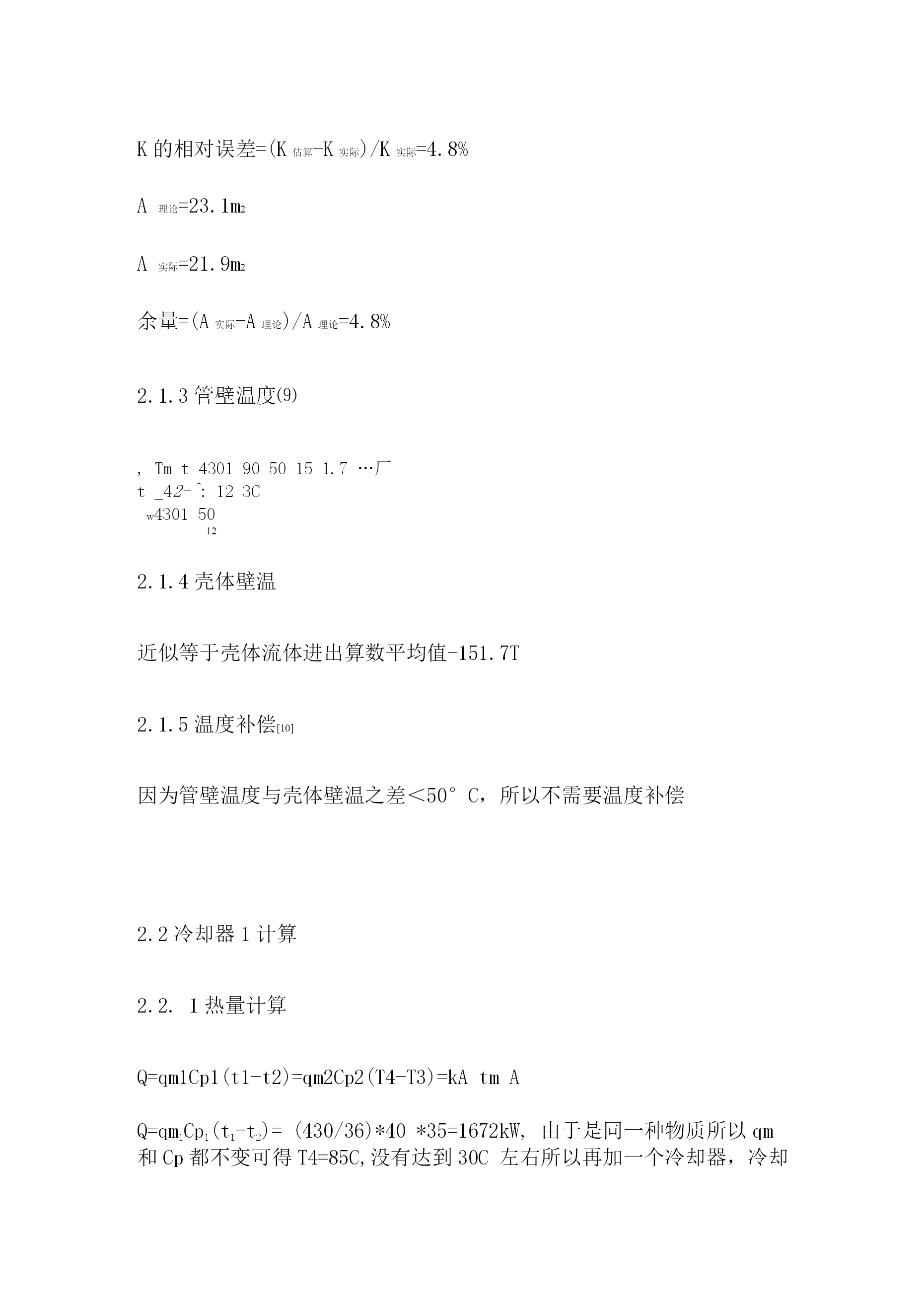 过程工程原理课程设计题目发酵补料液(430Kg/h)连续灭菌系统设计姓名完成日期TOC\o"1-5"\h\z设计方案简介41.1换热器类型的选择41.2加热剂、冷却剂的选择41.3流体流动空间的选择51.4流体进出温度的选择51.5换热器材质的选择51.6初步流程图6工艺计算72.1换热器(加热器)计算72.1.1热量计算72.1.2K值A值计算72.1.3管壁温度92.1.4壳体壁温92.1.5温度补偿92.2冷却器1计算92.2.1热量计算92.2.2面积A与K值计算102.2.3管壁温度112.2.4壳体壁温112.2.5温度补偿112.3冷却器2112.3.1热量计算112.3.2K值A值计算122.3.3管壁温度132.3.4壳体壁温132.3.5温度补偿133.辅助设备的选择143.1泵的选择143.1.1离心泵对外管路供给的压头Hfi153.1.2离心泵对加热器供给的压头Hf2153.1.3离心、泵对冷却器1供给的压头Hf3163.1.4离心、泵对冷却器2供给的压头hf4163.1.5离心泵对维持罐供给的压头Hf5163.1.6hfM173.1.7泵的选择173.2法兰和管板的选取183.3折流板193.4封头194.设计一览表195.设计评述236.参考文献247.主要符号说明21设计方案简介1.1换热器类型的选择换热器分类:1、两流体直接接触式换热器:会影响补料液浓度,难以精确控制2、蓄热式换热器:常用于回收气体热量或冷量,不适用本次设计3、间壁式换热器:应用广,冷热流体用间壁隔开,不影响料液浓度和染菌可能考虑本次工艺要求,选择间壁式换热器列管式换热器⑴列管式换热器又称为管壳式换热器,是最典型的间壁式换热器历史悠久,占据主导作用。优点:单位体积设备所能提供的传热面积大,传热效果好,结构坚固,可选用的结构材料范围宽广,操作弹性大,大型装置中普遍采用。为提高壳程流体流速,往往在壳体内安装一定数目与管束相互垂直的折流挡板折流挡板不仅可防止流体短路、增加流体流速还迫使流体按规定路径多次错流通过管束,使湍动程度大为增加。根据以上特点,列管式换热器中我们选择了固定管板式换热器1.2加热剂、冷却剂的选择加热剂:水蒸气进温度:151.7°C(绝压5kPa),冷凝水出温度:151.7°C冷却剂:冷物料,水1.3流体流动空间的选择在加热中,管内流热补料液,壳内水蒸气;第一个冷却器中管内走热补料液,壳内走冷补料液,第二个冷却器管内走热物料,壳内走水1.4流体进出温度的选择加热器:冷料液进温度65C,出温度:120C冷却器:灭菌后料液进温度:120C,第二个冷却器出温度:30C左右第一个冷却器冷料液进温度:25C,出温度:60C1.5换热器材质的选择不锈钢1.6初步流程图l=40m2t1=2S-Li=5m6=5m水L=5m7T5t24Z[冷凝水T1=t2=S0L3=40m2.工艺计算2.1换热器(加热器)计算2.1.1热量计算由葡萄糖Cp经验公式Cp=4.186+2.681x10-5T-0.02509x+7.357x10-5Tx-1.564x10-7TT-4.136x10-7xx[kJ/(kg・K)]⑵已知T平均=(60+120)/2=90°C将硫酸镁当葡萄糖计算x=(280+15)/10=29.5%Cp1=3.161[kJ/(kg・K)]查表得45C时水的比热容为4.5[kJ/(kg・K)][3]w1=29.5%,w2=70.5%1/Cp=w1/cp1+w2/cp2=29.5%/3.161+70.5%/4.5得Cp=4.0[kJ/(kg-K)]Q=qm1*Cp(T1-T2)=(430/36)*40*60=2867kw已知50下水蒸气温度为t=151.7C[4]△tm=(At1-At2)/ln(At1/At2)=56.5C2.1.2K值A值计算假设K=20W/(m2*k)可得A1=nndl=Q/(KAtm),推出nd=Q/(KlnAtm)...(1)查表得p葡萄糖=1.566g/mlp硫酸镁=2.66g/ml[5]p=10/(280/1.566+15/2.66+705/0.99)=1.115g/ml=1115kg/mA-3因为qm=qv*p得qv=38.5mA3/h由qv=A2u=(nnd2)u/4,nd2=4qv/(un)(2)取u=1m/sl=9m(1)(2)式联立得d=16mmn=48(管子规格选中25x2.5mm)⑹d1=20mmd2=25mm代入qv=A2u=(nnd2)u/4得n=34,查表得选取规格为①25x2.5mm,n=