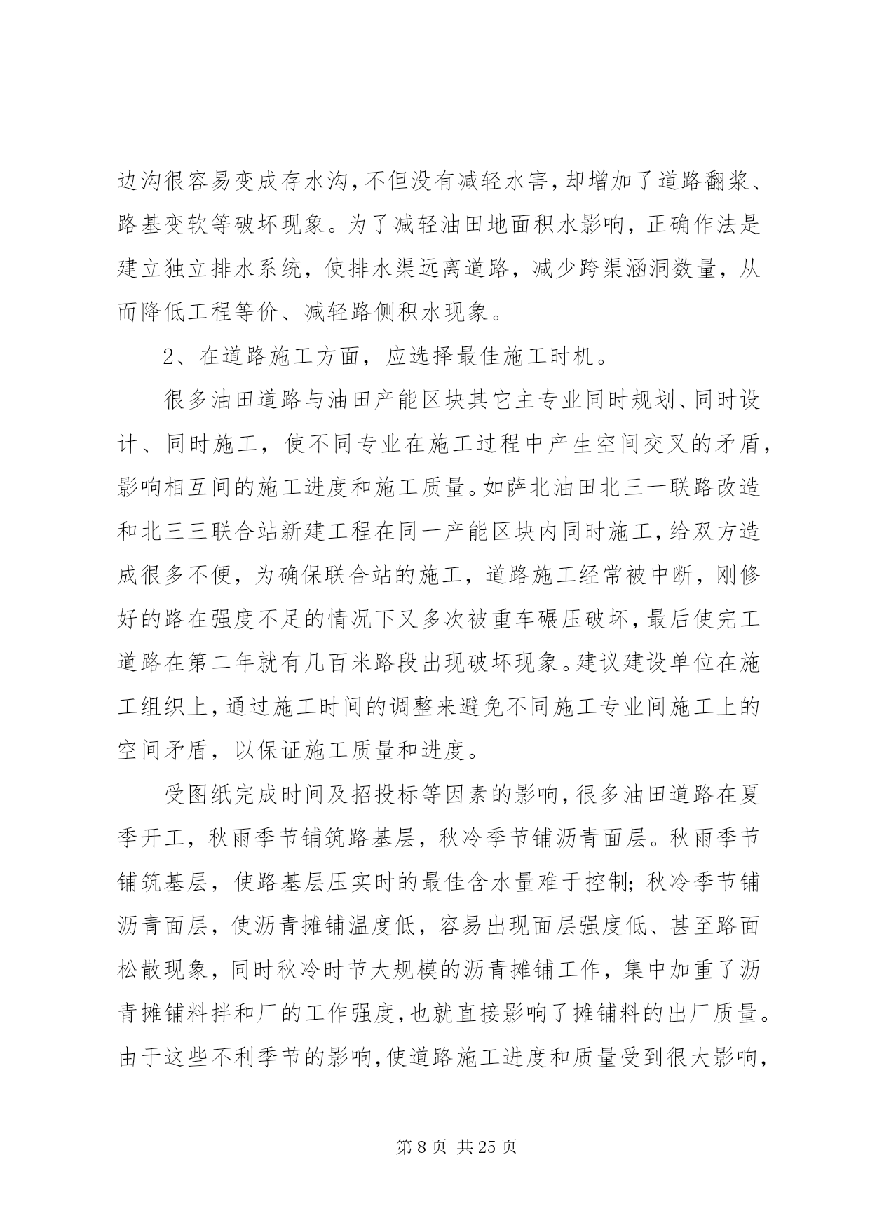 第PAGE\*Arabic\*MERGEFORMAT25页共NUMPAGES\*MERGEFORMAT25页农村道路交通存在的问题及建议近年来,随着“村村通公路”工程的大力实施,农村道路建设取得了一定的成绩,大量的农业机械进入了农民家庭,给道路交通带来了很大的压力;而且农民交通意识淡薄,农村驾驶员违法违规操作,超速、超载、违法载人等现象时有发生,农村道路交通安全存在很大的隐患,严重威胁着农民的生命财产安全,影响着农村经济发展和新农村建设步伐,因此,提高农村道路安全性迫在眉睫。一、农村道路交通存在的问题(一)乱堆乱放现象突出。大多数农村公路受资金所限,设计、建设标准较低,宽度多为3.5-4米,本来供车辆通行已显得不宽余,但沿线许多村民已经形成一种不良习惯,随意在公路两侧路肩或路面上堆放建筑材料、柴草、垃圾等杂物,或任意在公路上打粮晒粮,从而严重阻碍车辆的正常行驶,形成交通安全隐患。(二)违规搭建现象凸显。一些企业或群众在公路两侧红线控制范围内建设住宅、饭店、修理店、等违法建筑的情况较为普遍,甚至将使公路“街道化”,不仅形成交通安全隐患,也为今后公路拓宽改造、提升技术标准埋下增加拆迁成本的隐患。(三)超运超限屡禁不止。近年来由于农村经济高速发展,大量商家在农村公路沿线投资建厂、开矿而导致大量货物在农村公路运输,大吨位车辆严重超限运输,出现路面沉陷、坍塌、破损,直接缩短公路路面的使用寿命,威胁农村公路桥梁的安全。(四)疲劳开车多。一些农村个体司机盲目追求经济效益,却忽视了交通安全。为了多赚钱,司机日夜奔波,多拉快跑,疲劳驾驶,臵乘客生命安全于不顾。乡村公路陡而险,弯而窄,由于路况不熟,疲劳开车,车速过快,其后果是可想而知。(五)酒后驾车严重。农村民间节气较多,乡镇之间、村与村之间群众来往增多、密集,有相当多的驾驶员在酒足饭饱后驾驶车辆,由于酒后驾驶反映迟钝、判断错误、措施不当导致事故的发生。(六)违法停车现象普遍。由于相当部分驾驶员对违法停车的事故隐患认识不足,警惕性不高,常常是车辆在何处发生故障就停放于何处,既不靠边停放,又不设明显标志,在天气环境变化、驾驶能见度受阻的情况下,常常发生碰撞事故。(七)车况不良。目前,城乡经济还存在较大差距,农民的经济收入和生活水平还很低。随着乡村和边远山区公路的开通,虽然改变了以往步行的历史,但由于农民资金短缺,大多农民个体户买不起车况好的车辆,但又致富心切,便把眼光放在购买老残车辆。这些老残车辆又多数为已达或接近报废年限的车辆,车况不良是这些车辆的共同特性。这此车辆廉价到手后,经简单修理,便上起路来搞起了运输,车辆长期带病行驶,正是引发交通事故的最大祸根。(八)无牌无证上路行驶。由于乡村和边远山区公路相对偏僻,公安交通管理部门因警力不足呈半失管失控状态,使乡村和边远山区公路成为交通管理盲区和死角,不少人认为山高皇帝远,存在侥幸心理,而且购买无牌、报废、拼装车辆相对低廉,本小好运作,还存在着很大的市场环境和经营空间,于是未经系统交通法规学习、驾驶技术培训以及对车辆保养维修就驾驶起机动车,或是购车不入户上牌,或驾驶报废车进行营运,从而埋下了事故隐患,其后果是不堪设想的。(九)农村非客运车辆营运载客违法行为较为普遍低速载货汽车、报废车、柴三机违法搭客问题在边远乡镇比较严重,也容易引发群死群伤的重特大交通事故,形成重大事故隐患。(十)道路交通标志标线问题由于公路、交通、市政等部门对道路交通安全工作重视不够,存在道路交通安全工作是交警部门的认识误区,对缺损的交通标志标线、基础设施、危险路段都不能及时完善或认真整改。在一些重大活动中,上级部门也总是将道路交通标志设臵和标线施划等交通设施的完善作为硬性规定交由交警部门完成。有关法律法规中已有明确规定,道路交通标志标线的设臵、施划和交通设施的完善应属交通、城建部门规划,道路承建部门配套落实。但由于道路承建部门对完善道路交通标志标线工作不够重视,主管部门也忽略了道路交通标志标线的配套检查,因此未考虑道路交通标志标线的因素便给予道路验收合格,建成通车。二、解决农村道路存在问题的建议交通是一项由人、车、路和环境等要素组成的社会系统工程,涉及面广,道路交通安全问题单靠公安交通管理部门一家行为是很难取得根本性进展的。也不是一个部门,一项措施,一个阶段整治就能奏效的。道路交通安全需要全社会的参与,各部门的积极支持和广大群众的配合。只有政府、市政、规划、工商、交通、交警、农机以及相关部门协同作战,综合研究和找出相应对策,然后重点突破,逐项解决,实现道路交通安全社会化管理工作,人民群众的生命财产才能真正得到保障。(一)充分发挥各级道路交通安全联席会议机制作用逐步形成“政府统一领导,相关部门各司其职,社会各方面联动”的预防交通事故新机制作用,加快道路交通