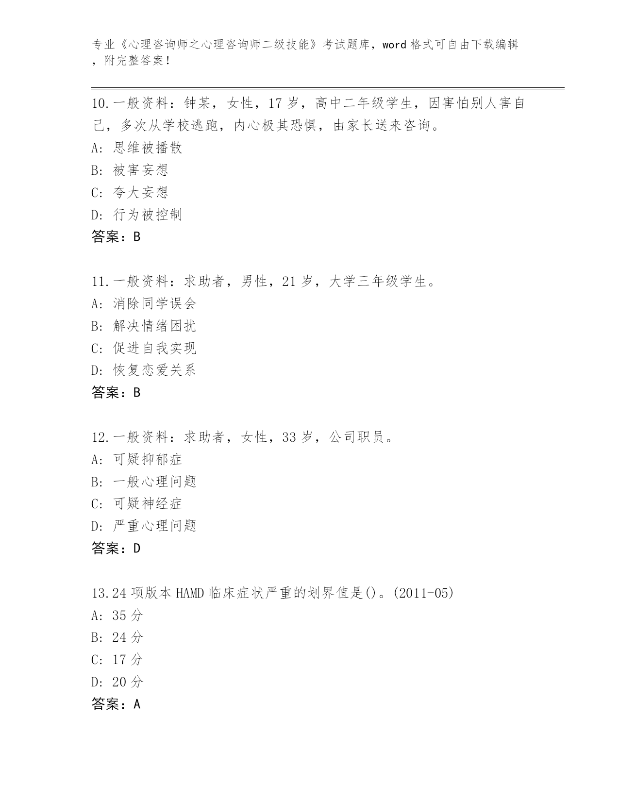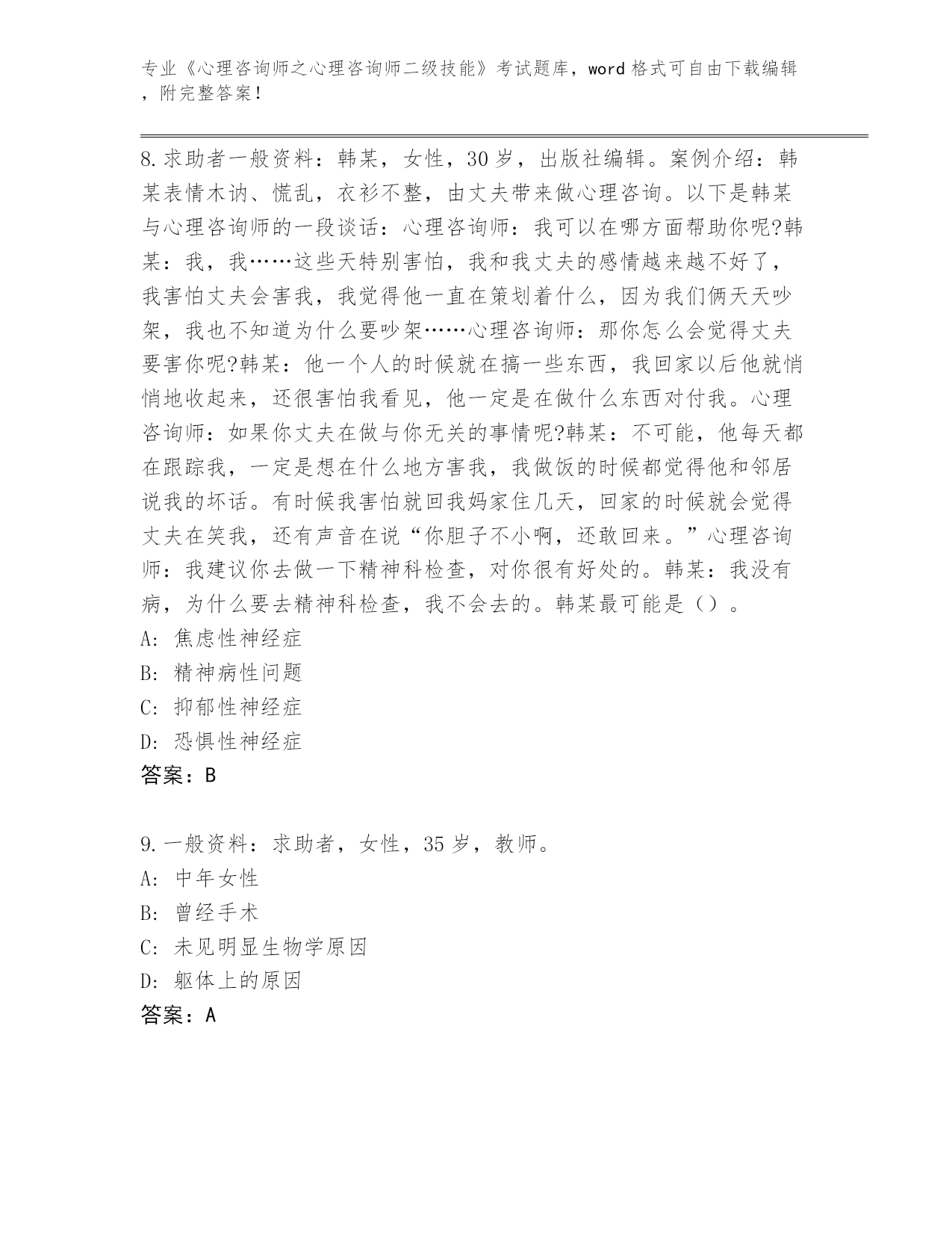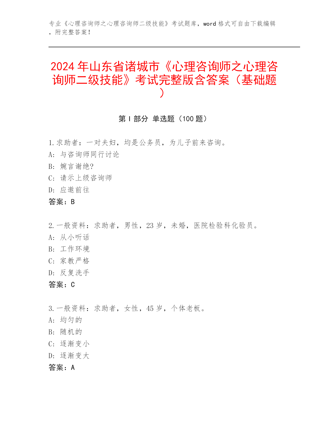 2024年山东省诸城市《心理咨询师之心理咨询师二级技能》考试完整版含答案(基础题)