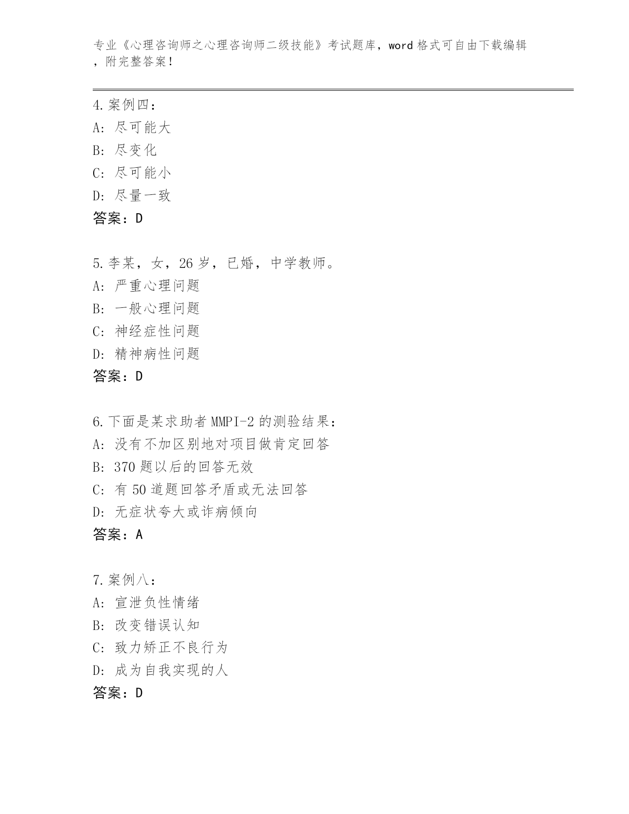 山东省博兴县完整版《心理咨询师之心理咨询师二级技能》考试必刷200题【基础题】