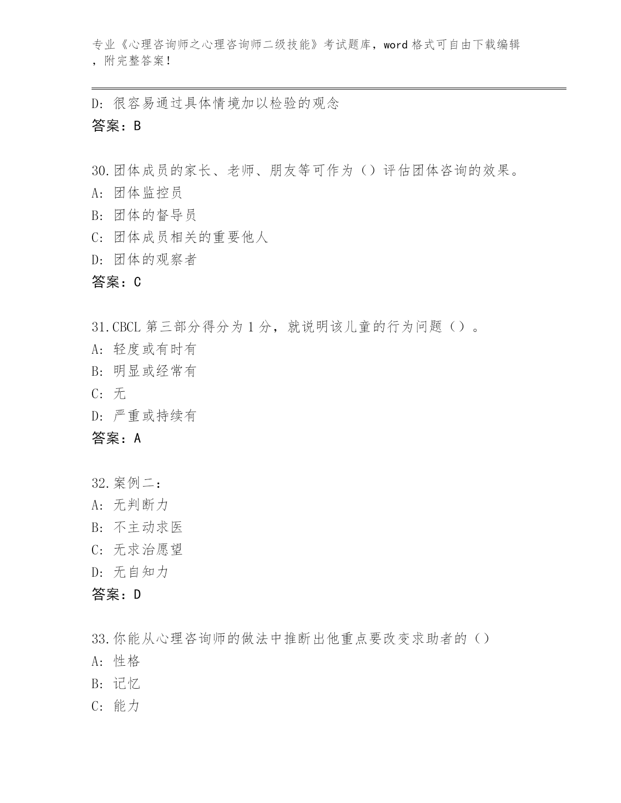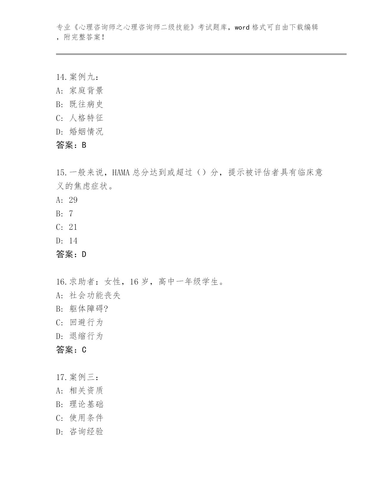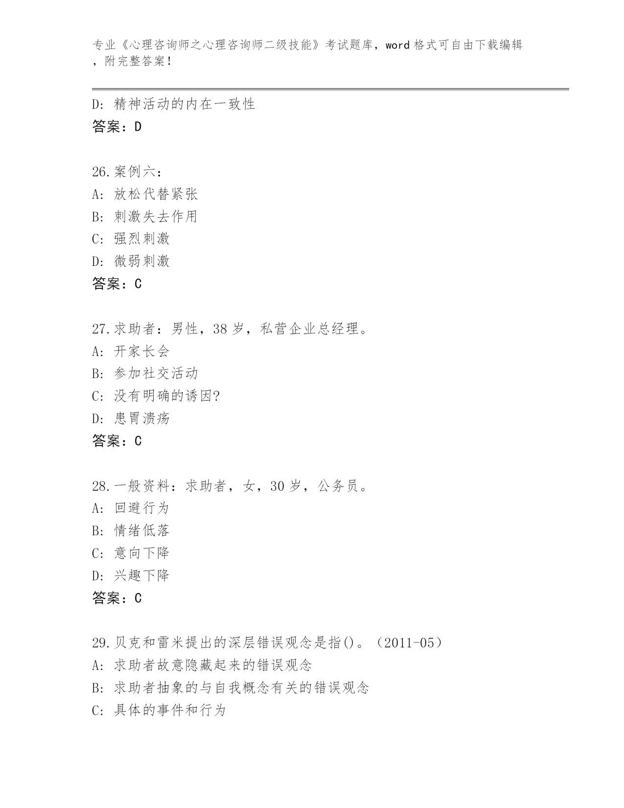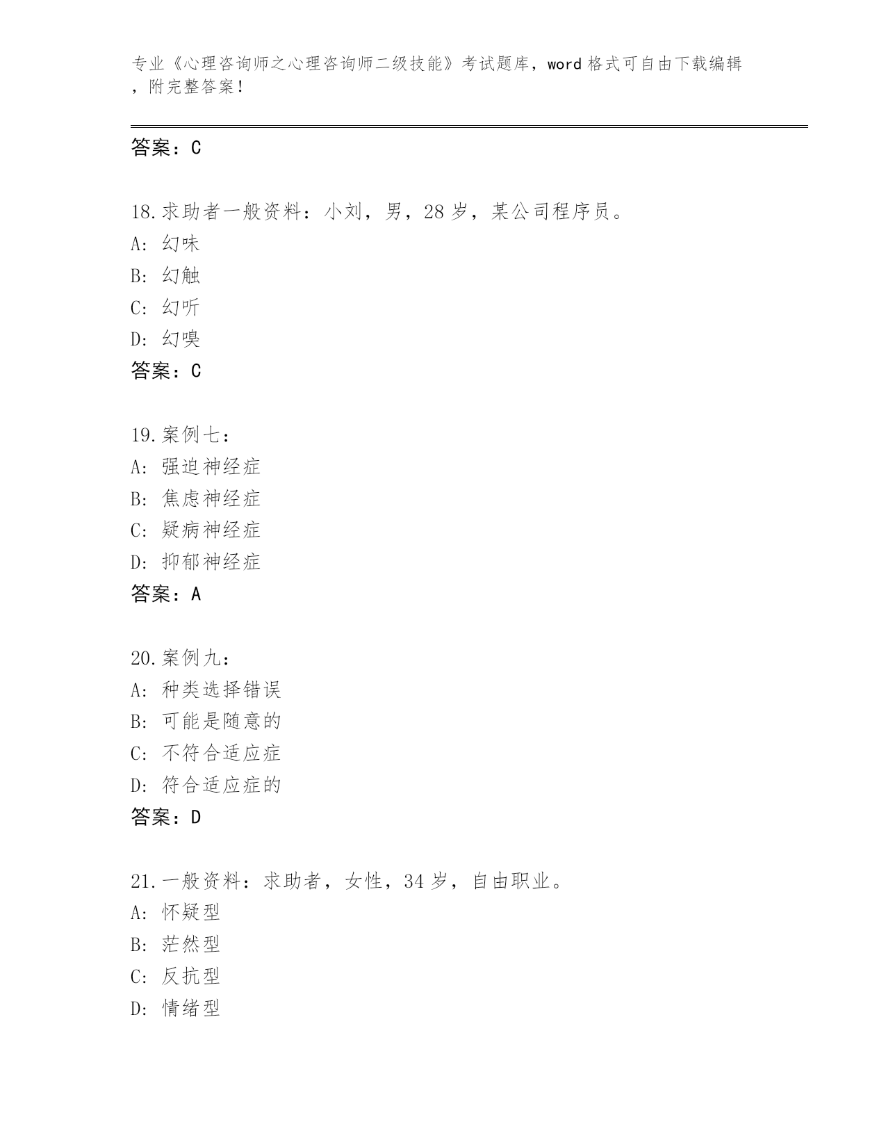 山东省诸城市《心理咨询师之心理咨询师二级技能》资格考试精编答案