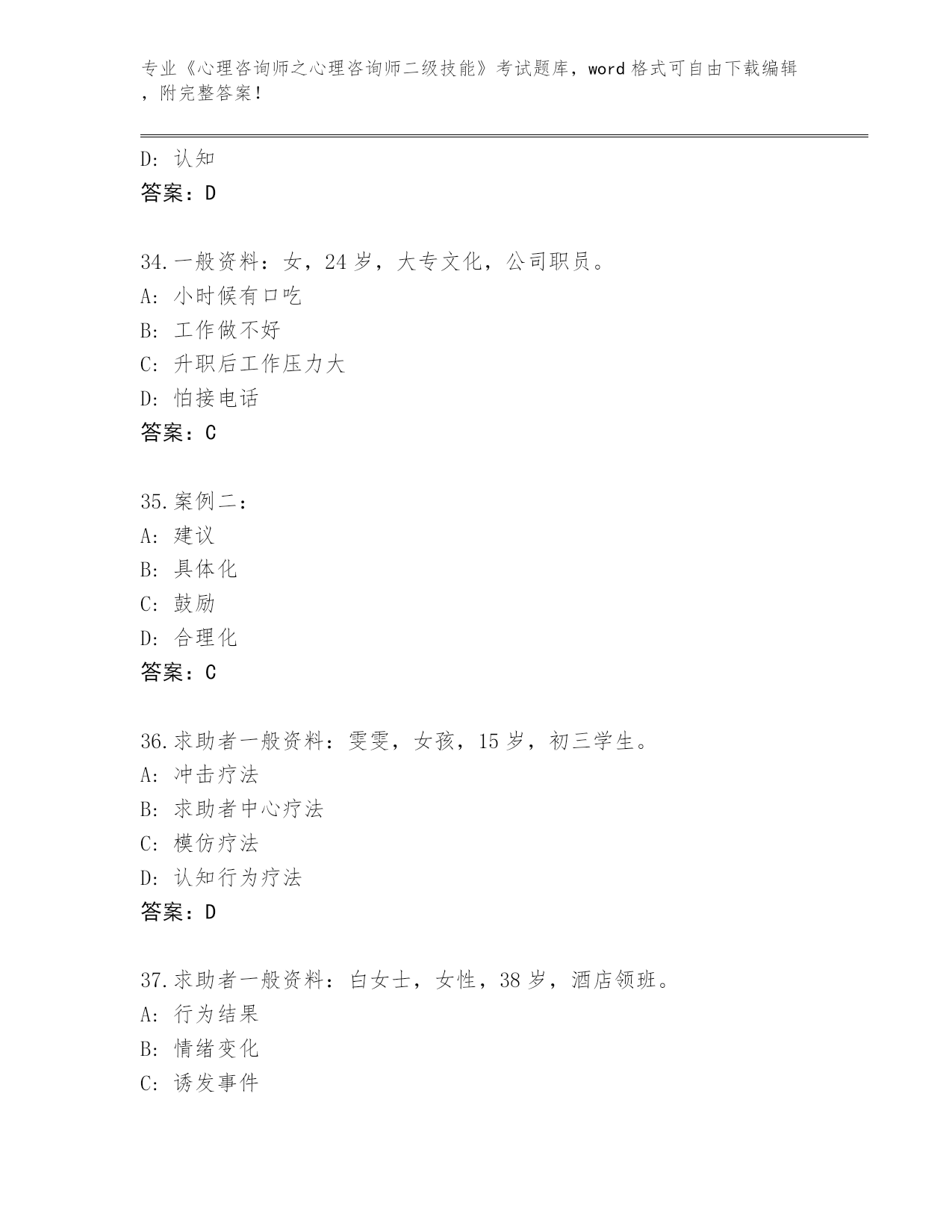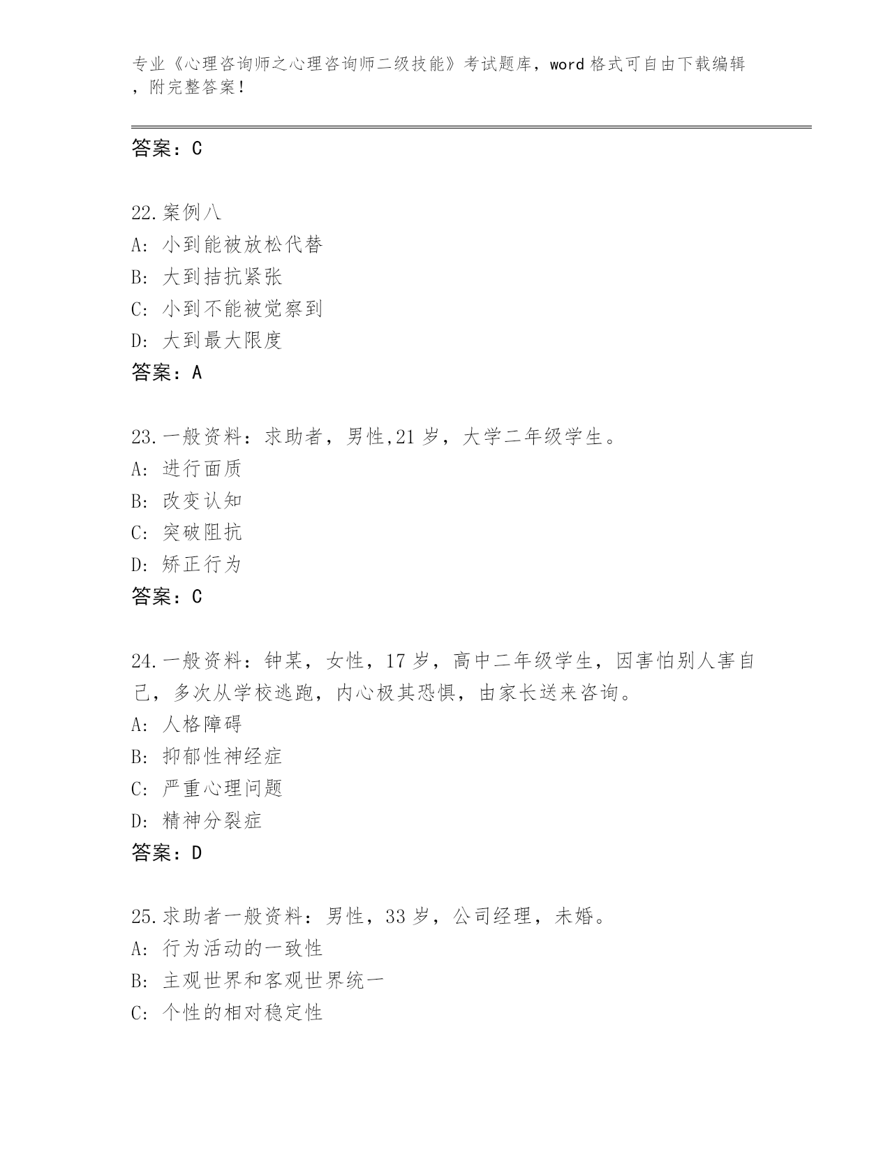 山东省薛城区2024《心理咨询师之心理咨询师二级技能》资格考试大全含答案(基础题)