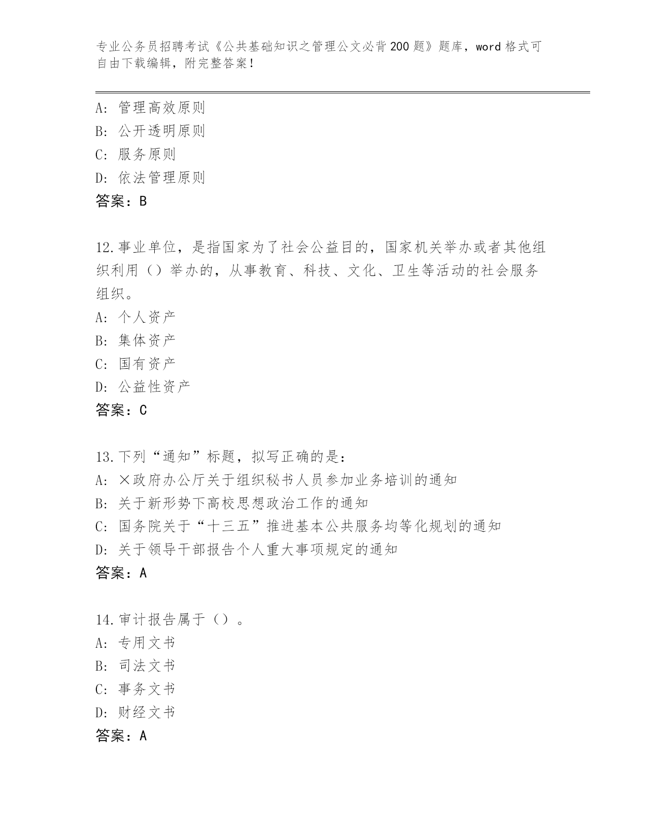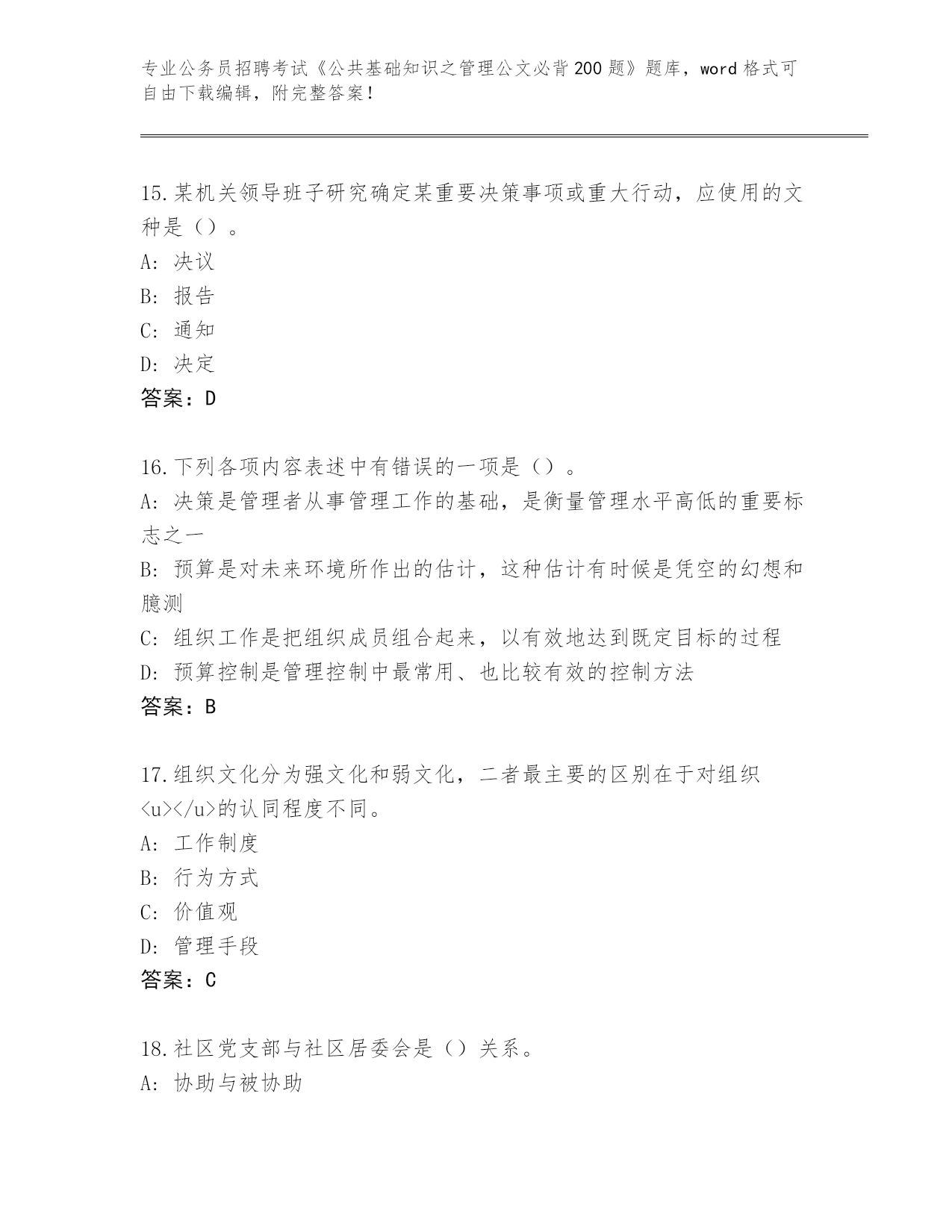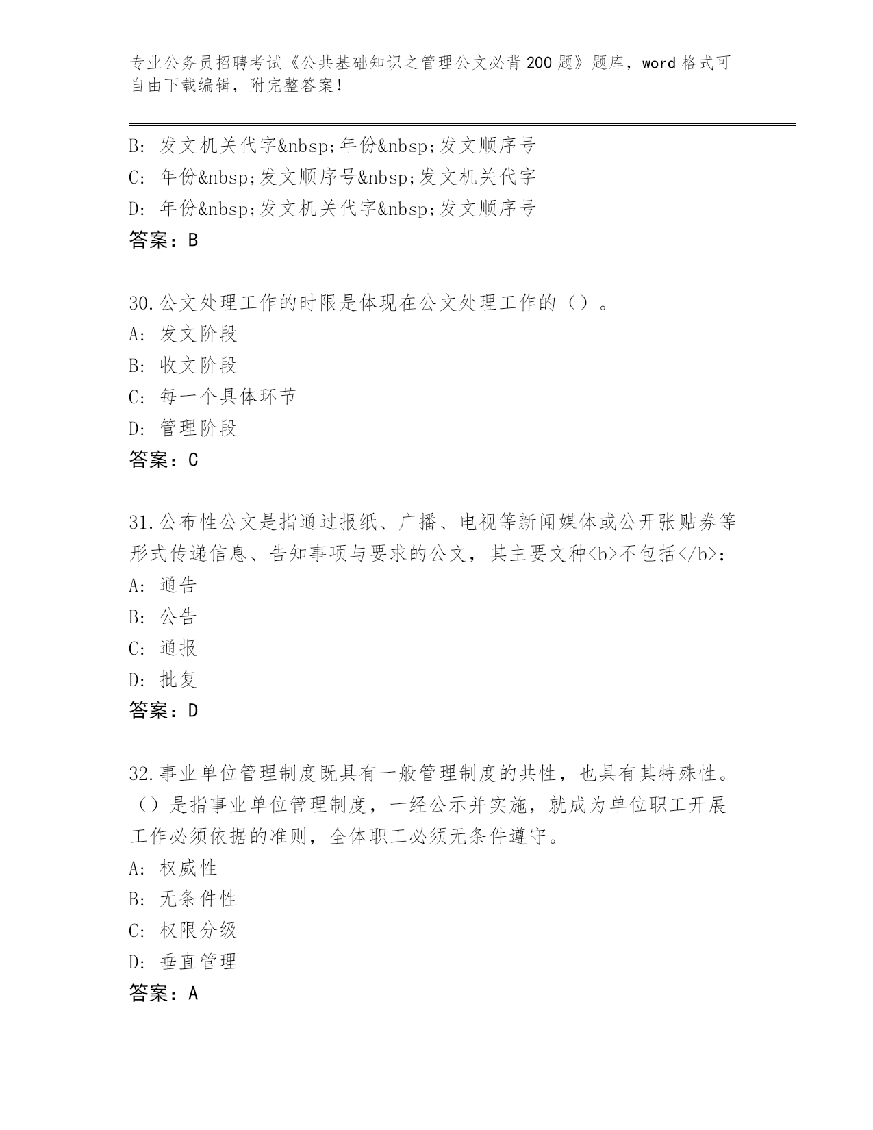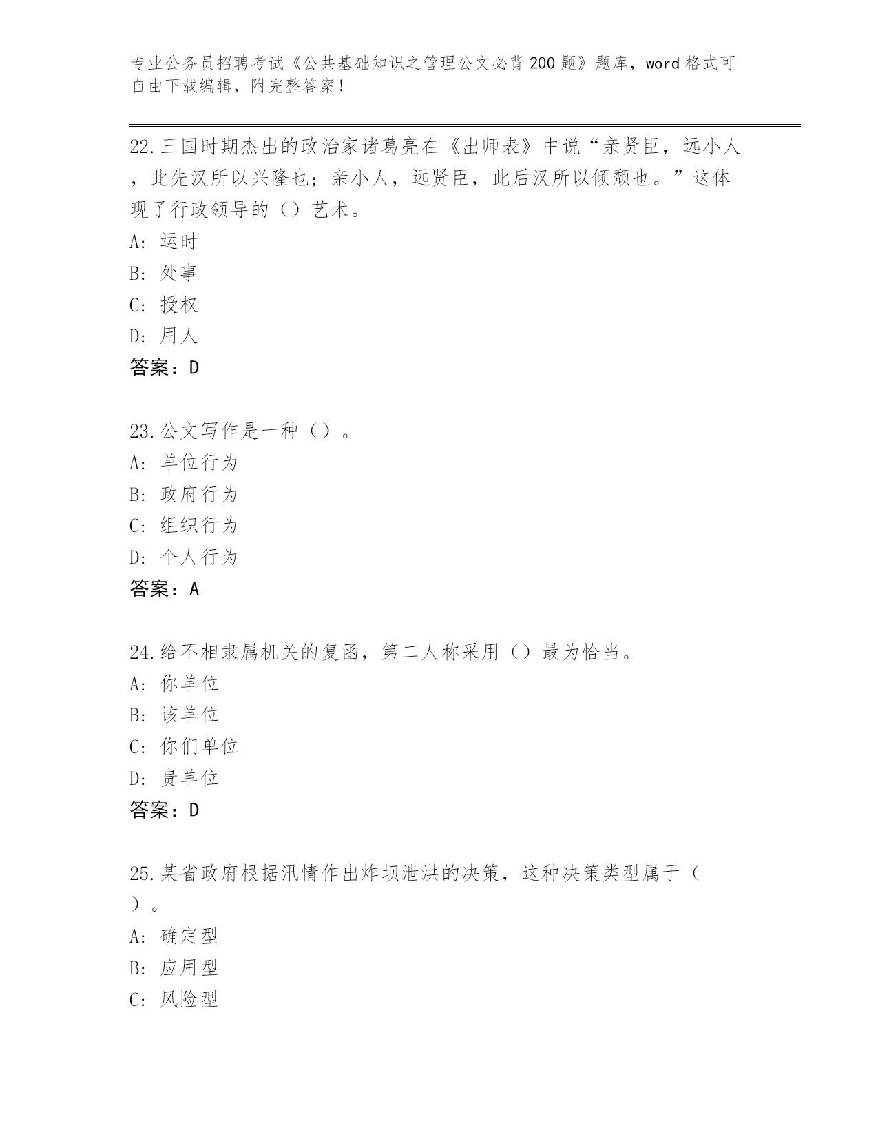 广东省公务员招聘考试《公共基础知识之管理公文必背200题》真题题库附答案【黄金题型】.docx