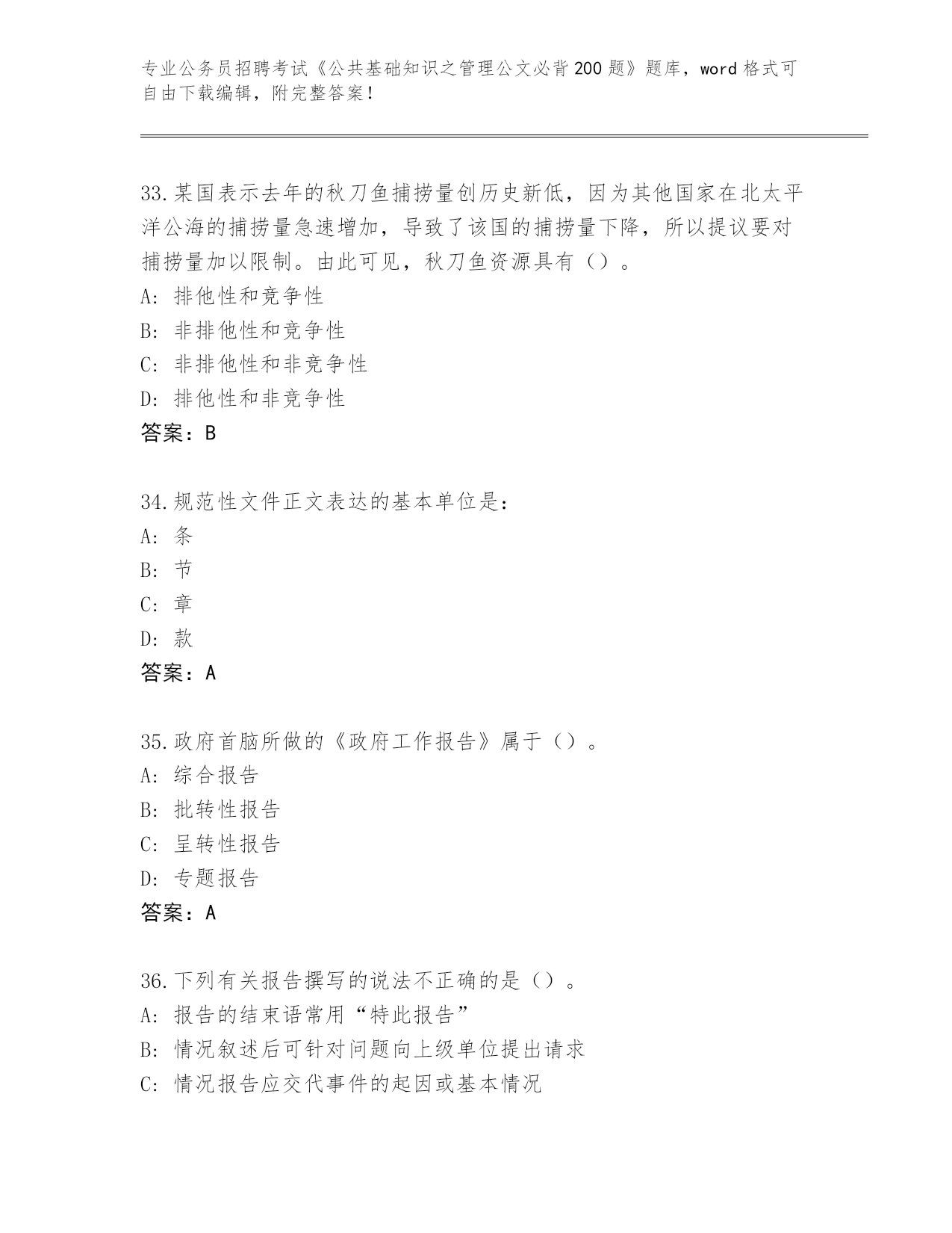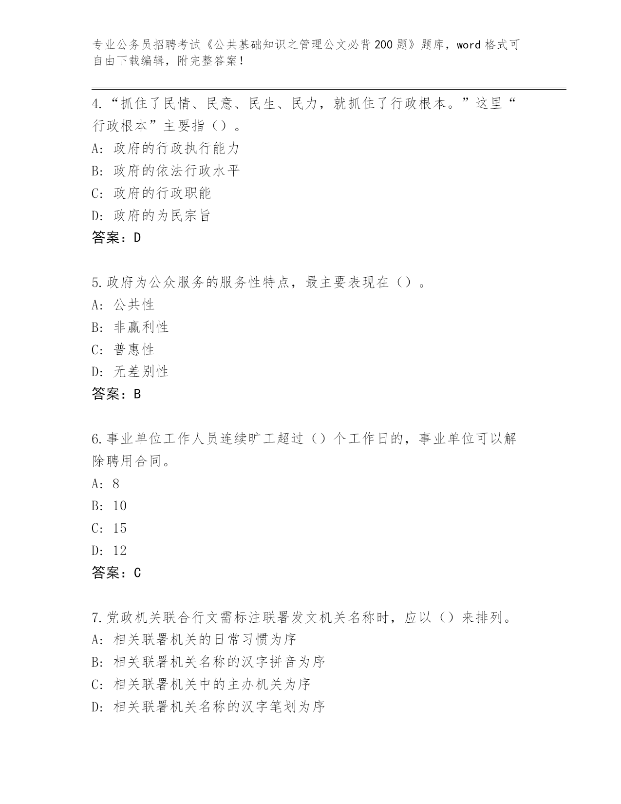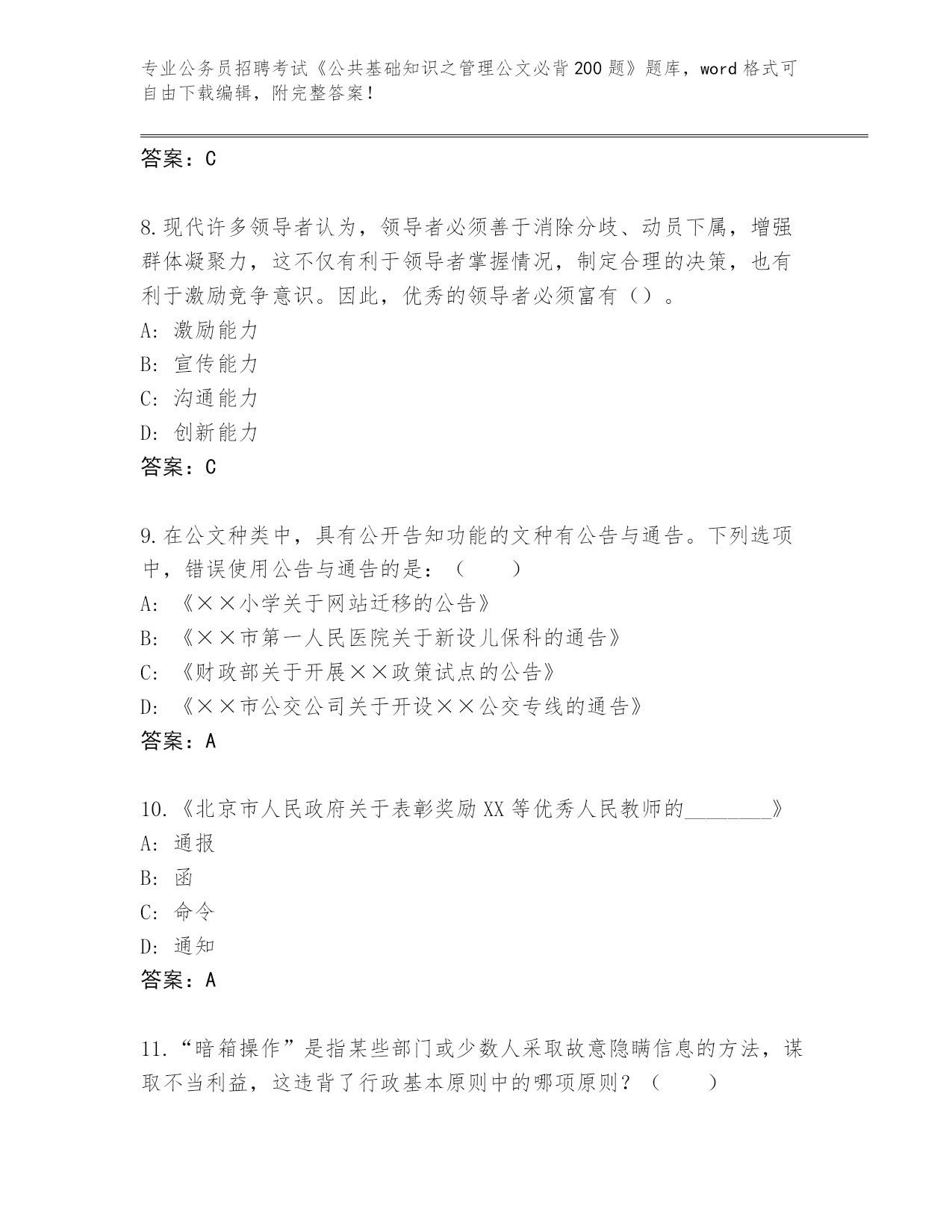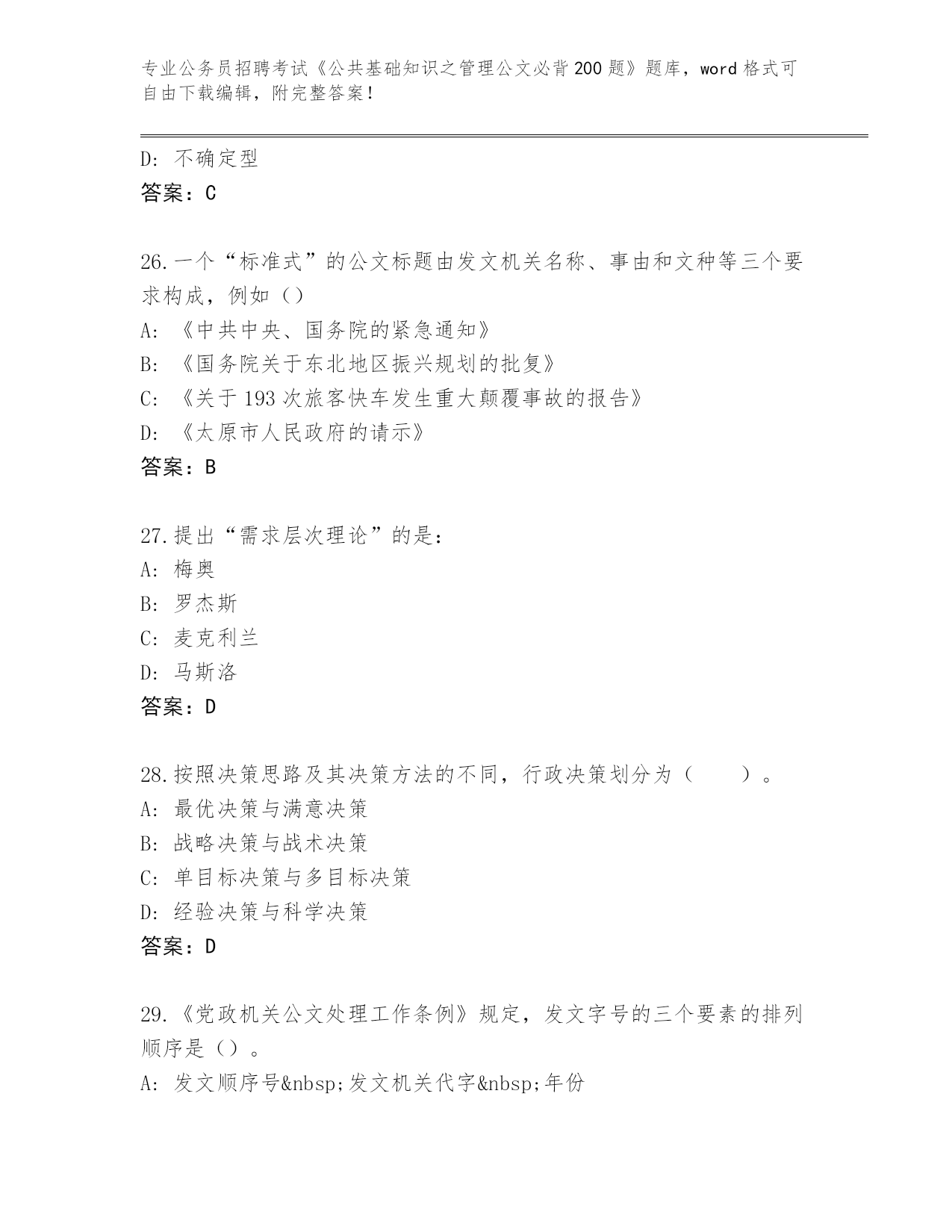 广东省公务员招聘考试《公共基础知识之管理公文必背200题》真题题库附答案【黄金题型】.docx